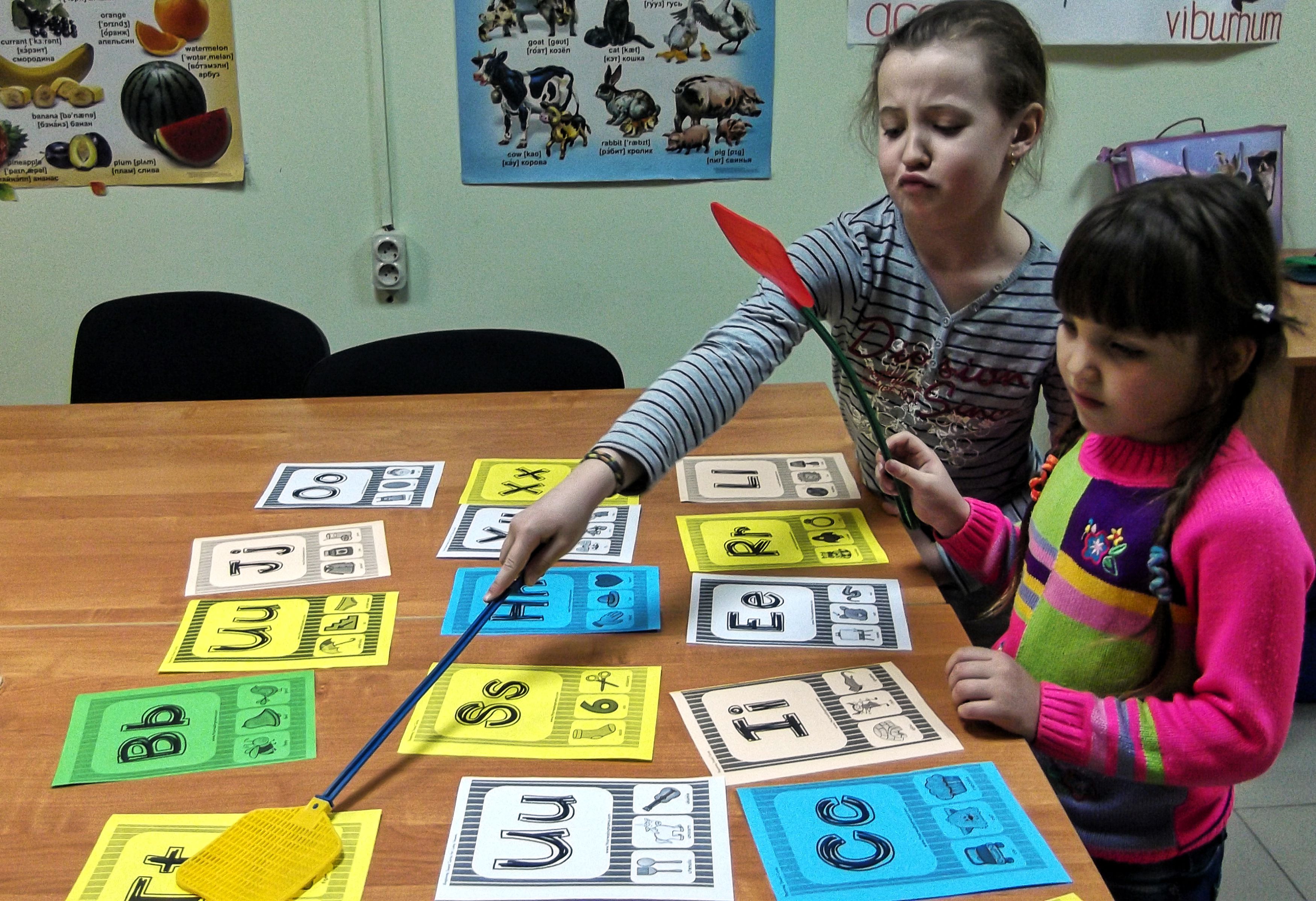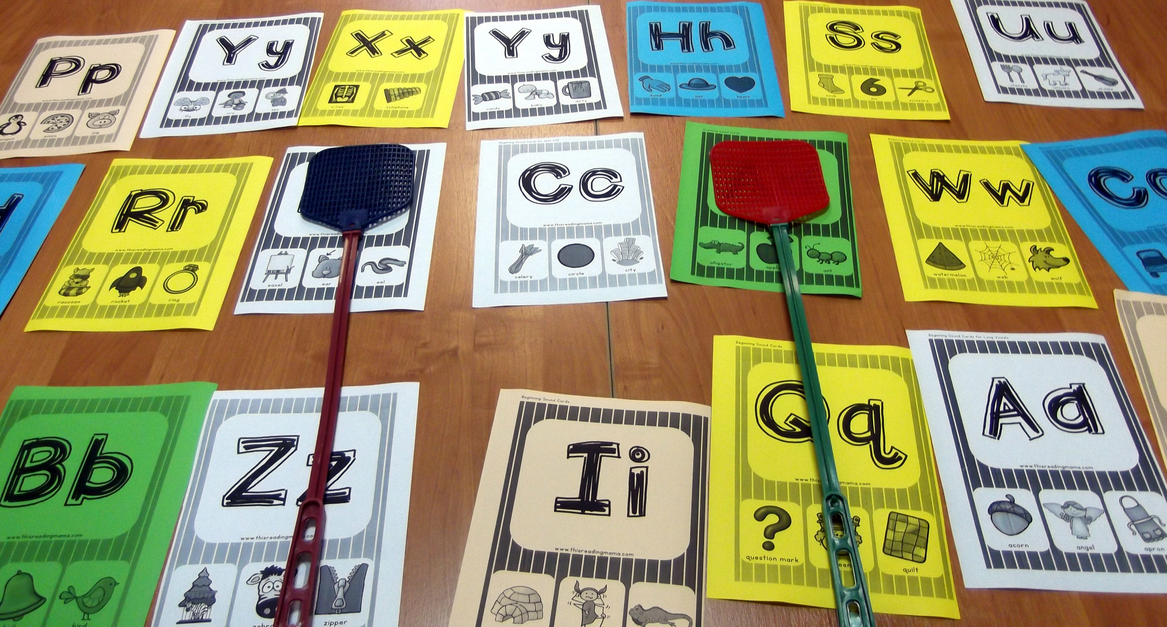 А чтобы разнообразить изучение новых букв и слов, можно использовать обычные мухобойки. Учитель называет букву или слово, а дети должны хлопнуть по нему мухобойкой. Тот кто хлопает первым, получает балл. Получается шумно, но забавно.