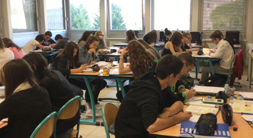 La classe est organisée par ilots pour favoriser les échanges et les interactions.