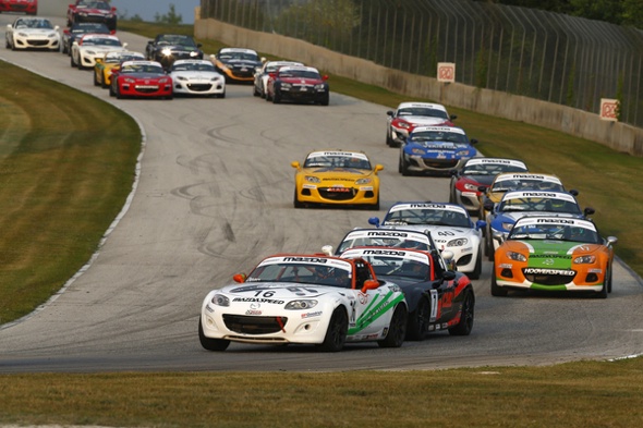 Racing on the track showcases an average of 32 cars and drivers. Two 45-minute races are featured during each weekend event, with plenty of side-by-side and bumper to bumper action. Many endorse the racing in the Mazda MX-5 Cup Series as the most competitive and exciting in all of North American road racing.