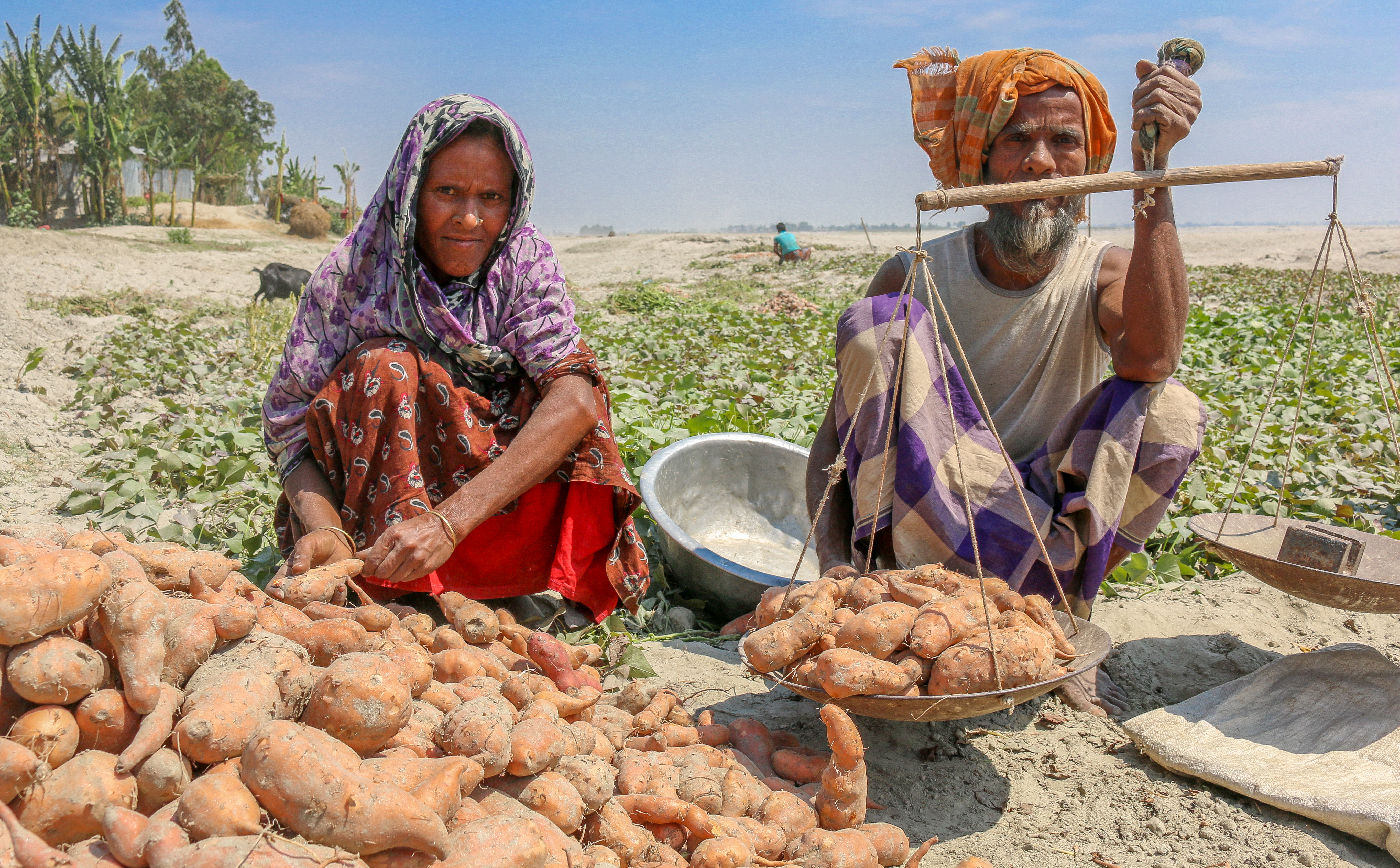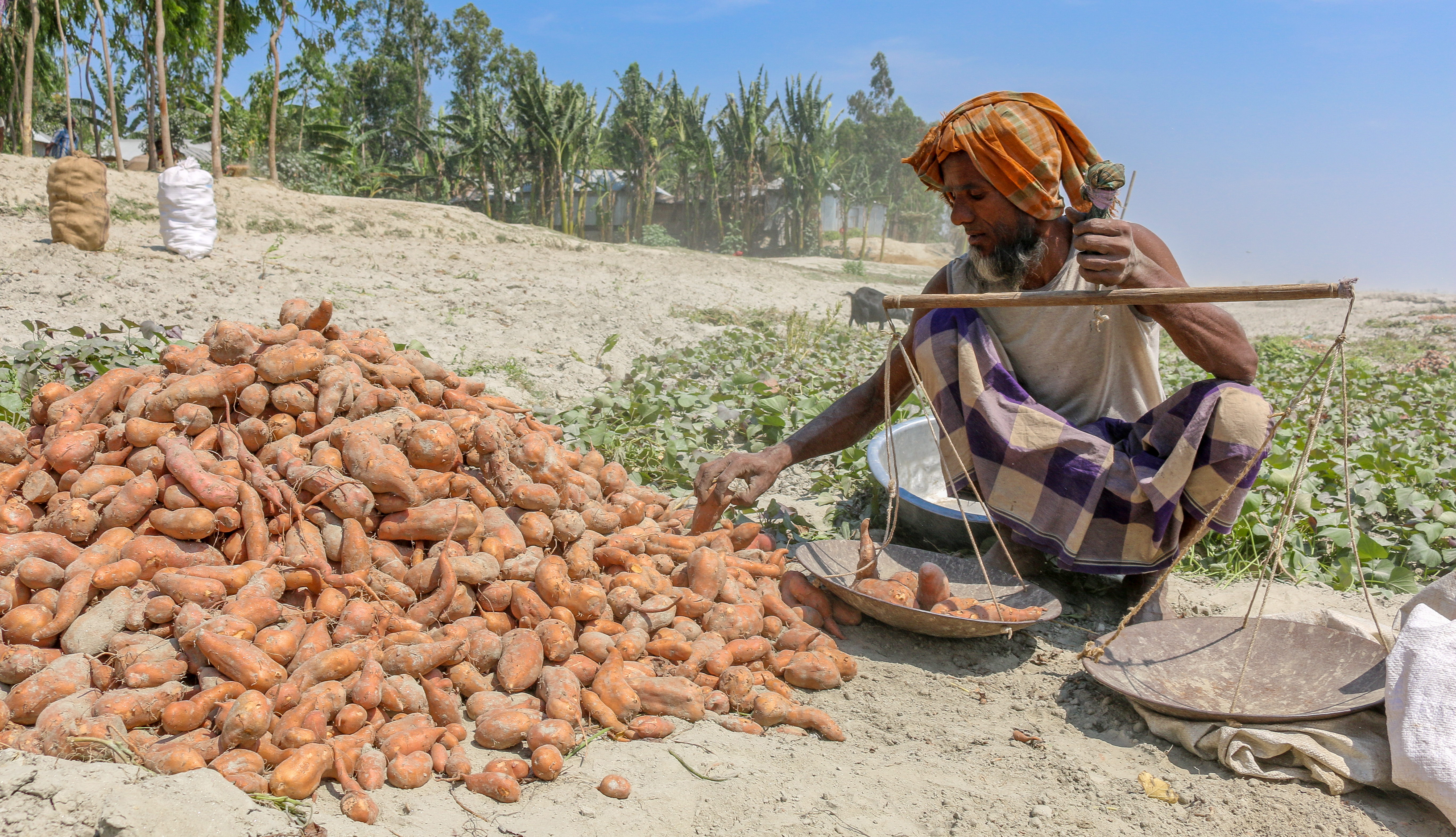 Cultivating orange fleshed sweetpotato in the char areas of northern Bangladesh has a comparative advantage. It is challenging to grow rice, maize or wheat in the chars due to sandy and fallow land and scarcity of water (especially for rice). Farmer’s yield of OFSP in the char area is on average about 22 tons/hectares and requires significantly less irrigation and other inputs than many other crops.