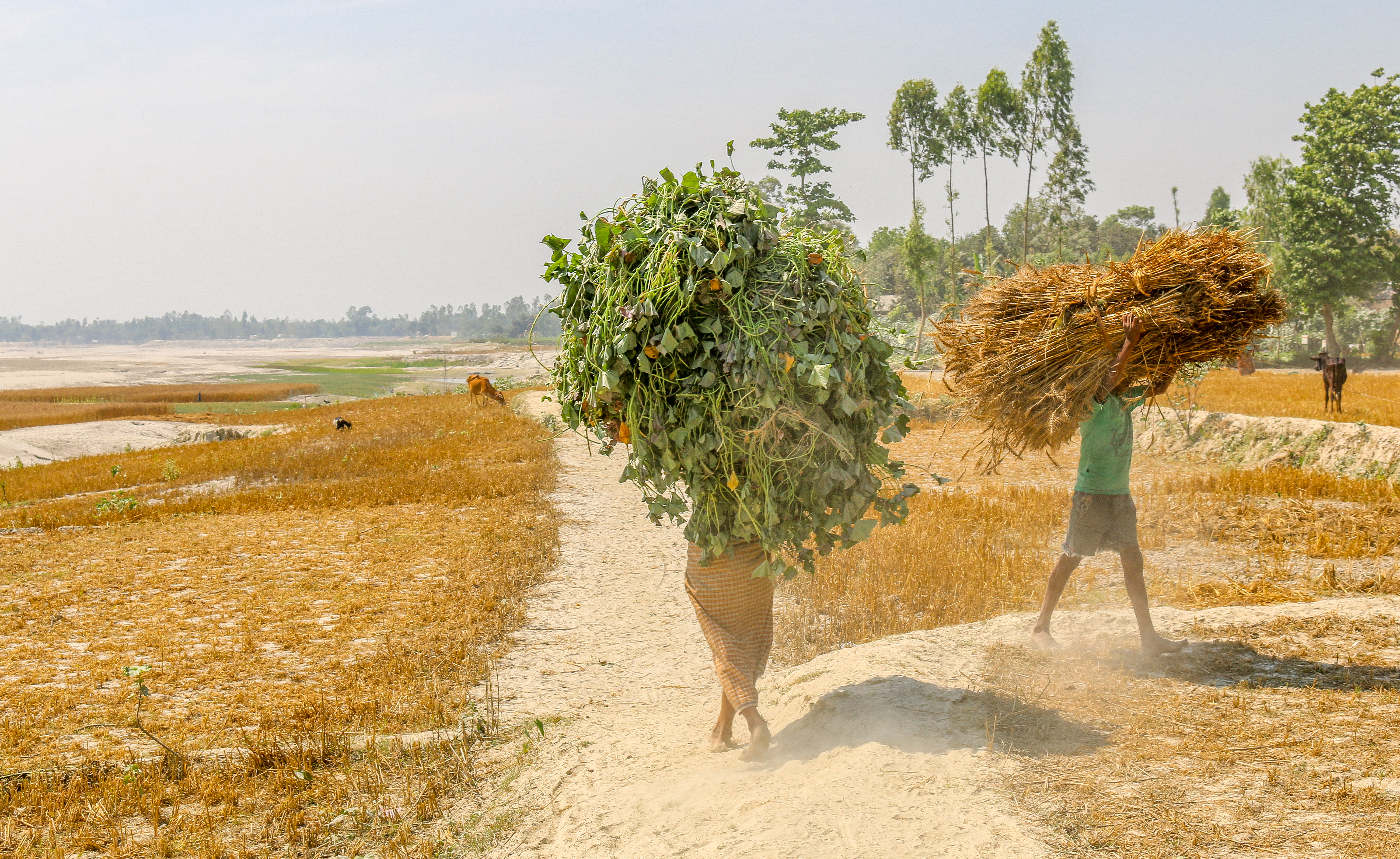 The sandy banks of the Brahmaputra River provide a home to many in northern Bangladesh. In a country where the population is rising rapidly and where land is scarce, the river provides a home to many communities. Mostly small holder farmers, these communities live and work along the banks of the mighty Brahmaputra River which provides both a lifeline and a hazard to those that live beside it. Traversing through China, India and Bangladesh this immense river system defines daily life for these communities.