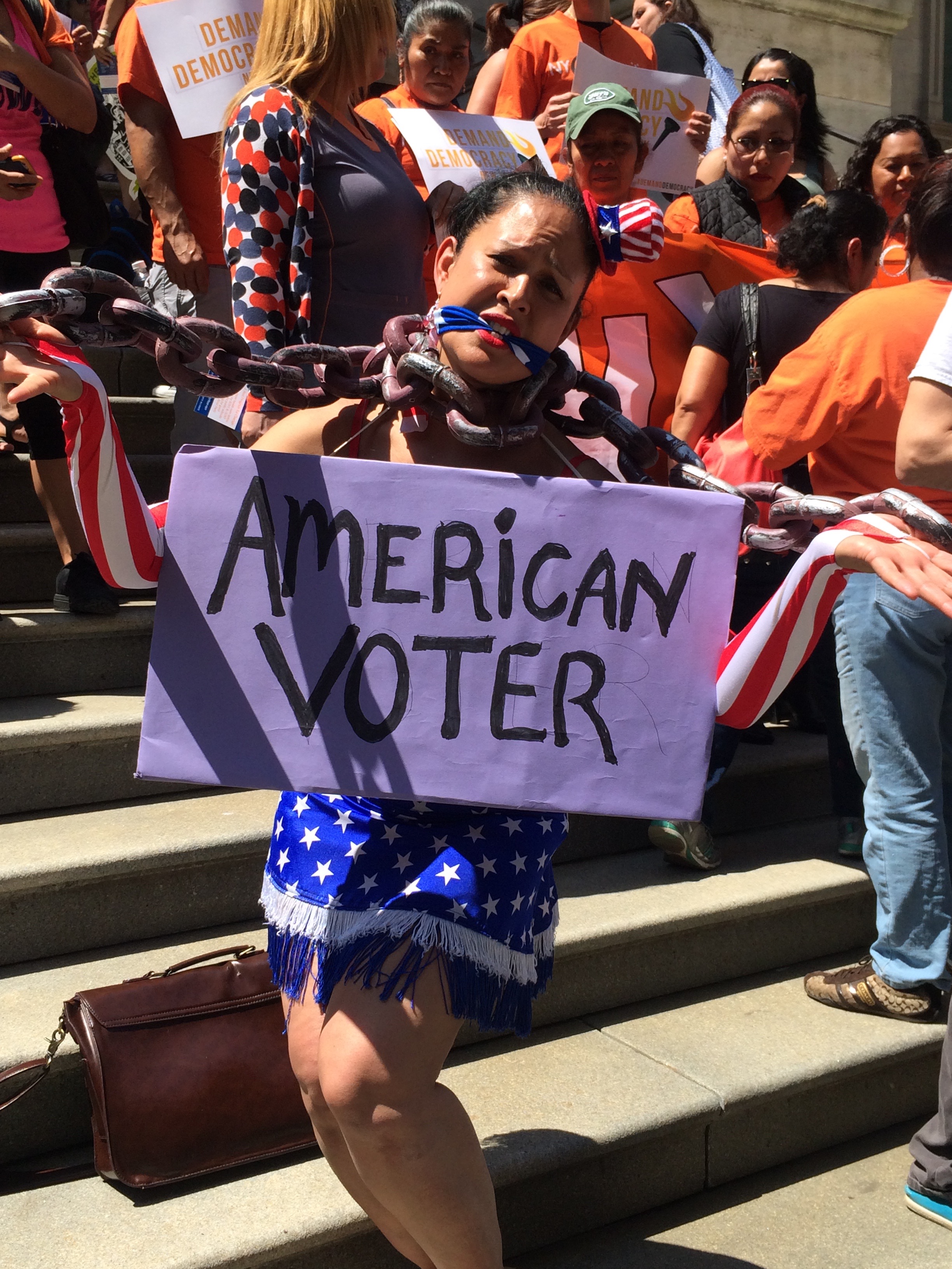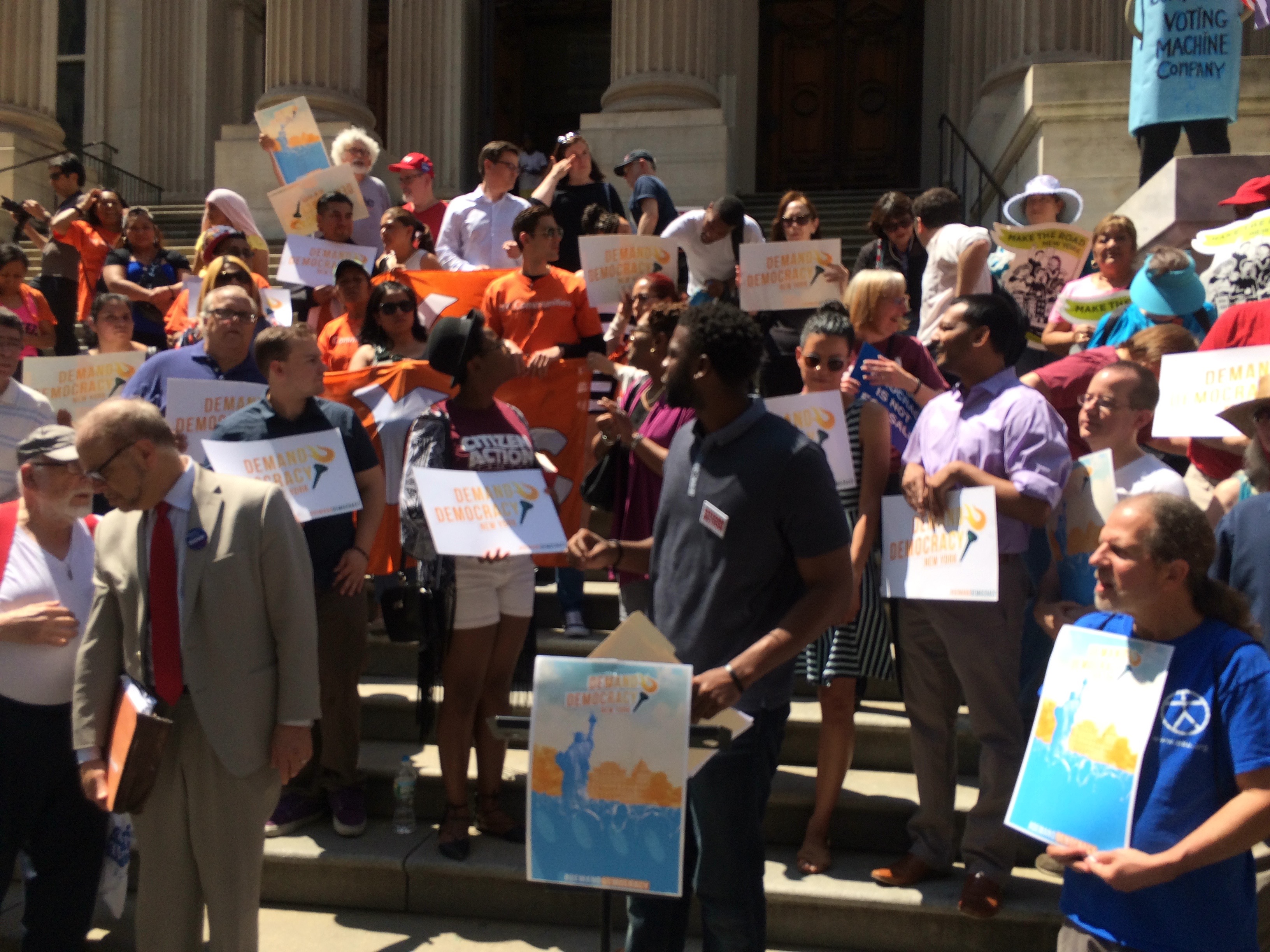 Members and participants from Citizen Action's, Capital Region, New York City Chapter and the Long Island Progressive Coalition joined a diverse coalition of community, labor, good-government, advocacy organizations and activists to participate in Demand Democracy actions across New York state.