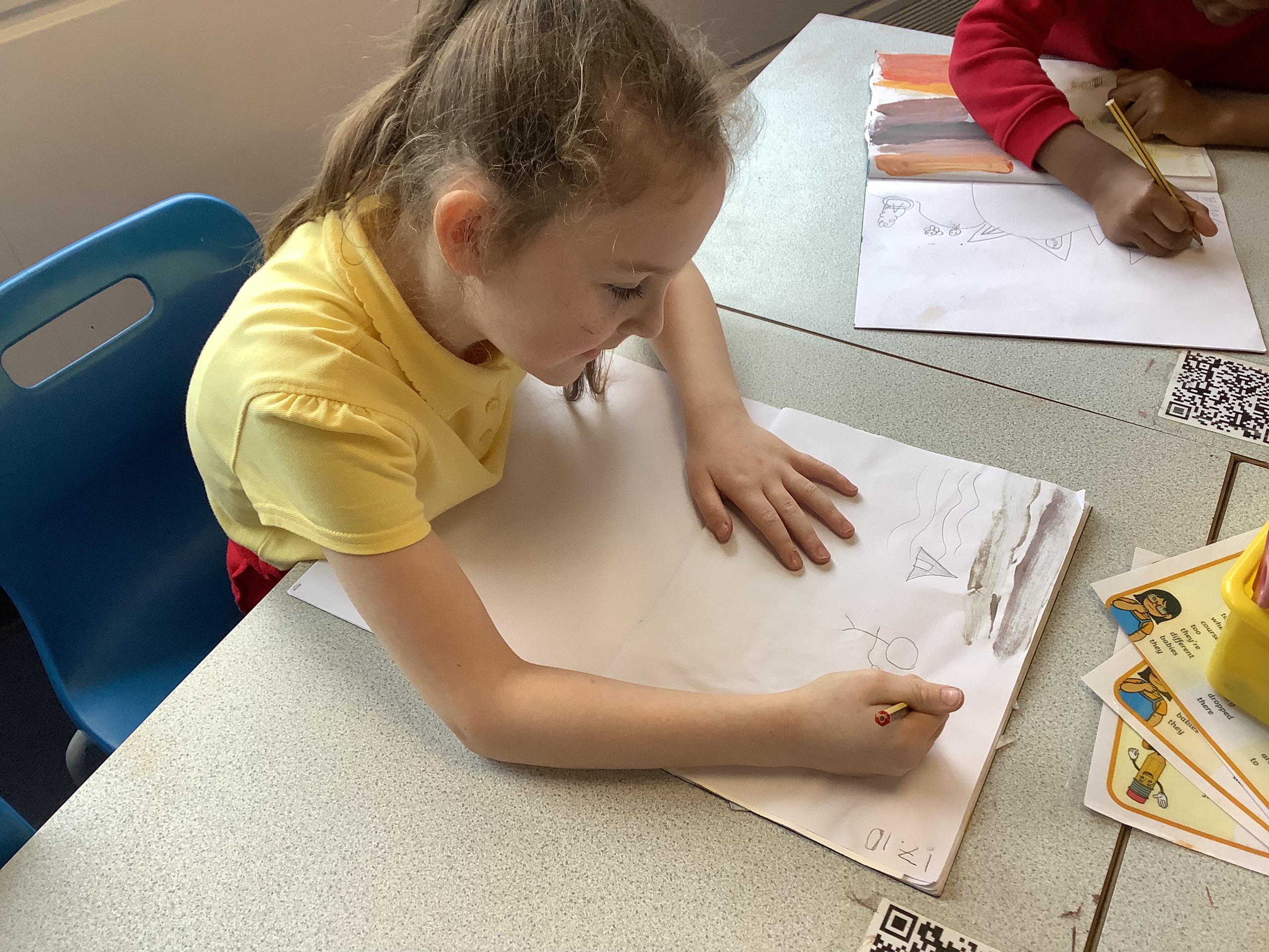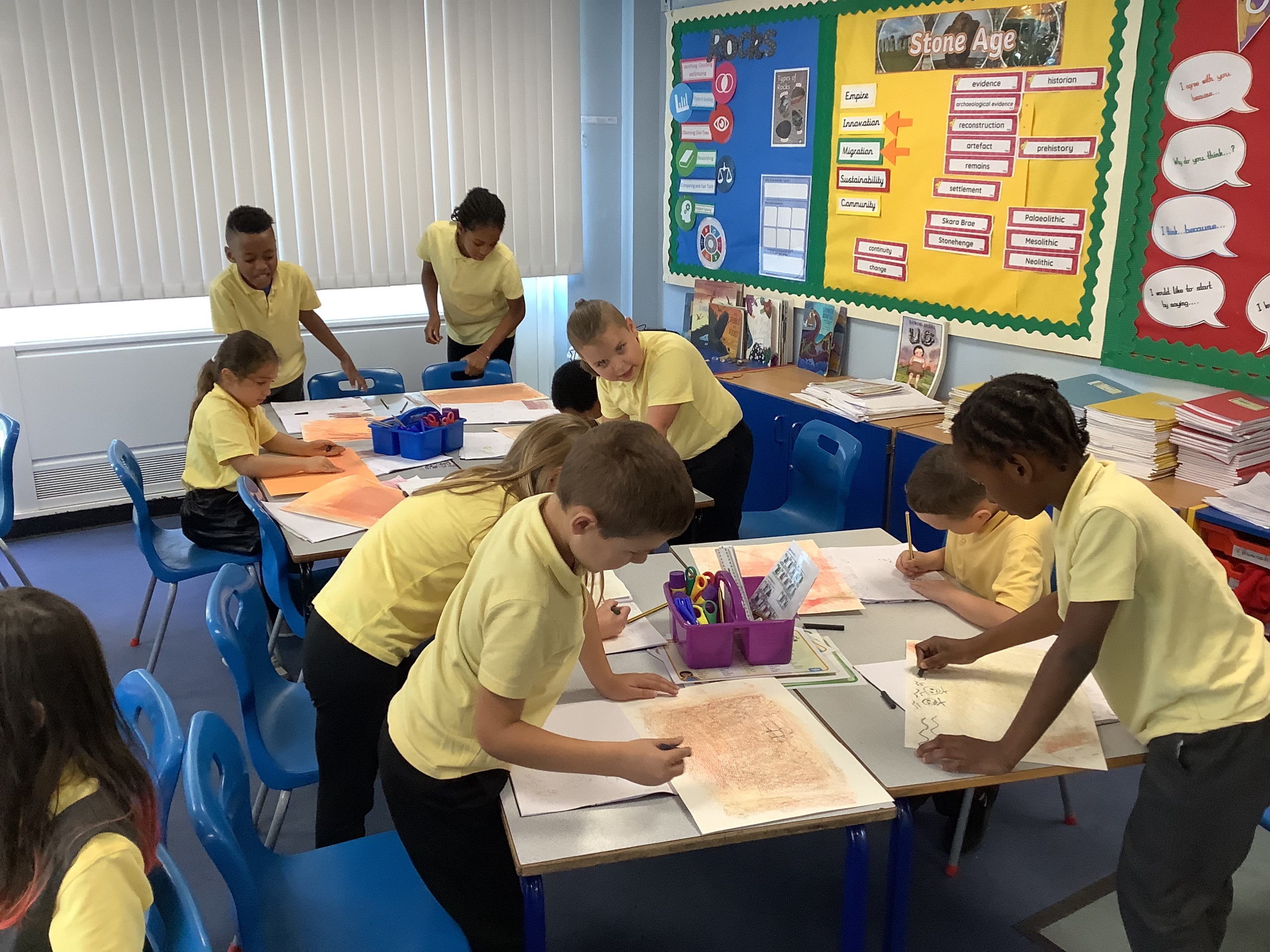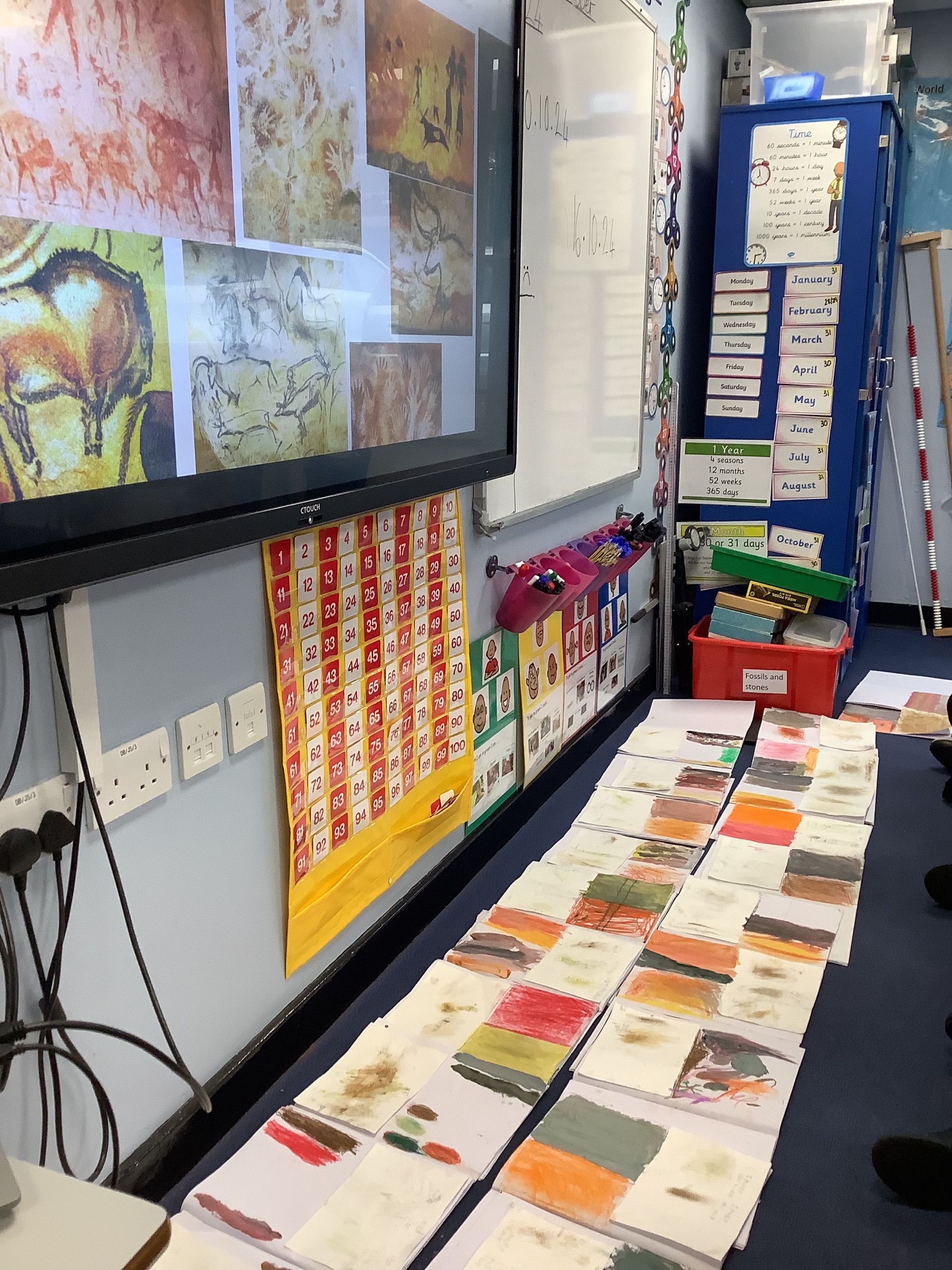 As part of our drama for learning, we created a cave painting of our journey from Doggerland to Skara Brae. This was competed as a mixed media project because we explored different materials to create our final piece.