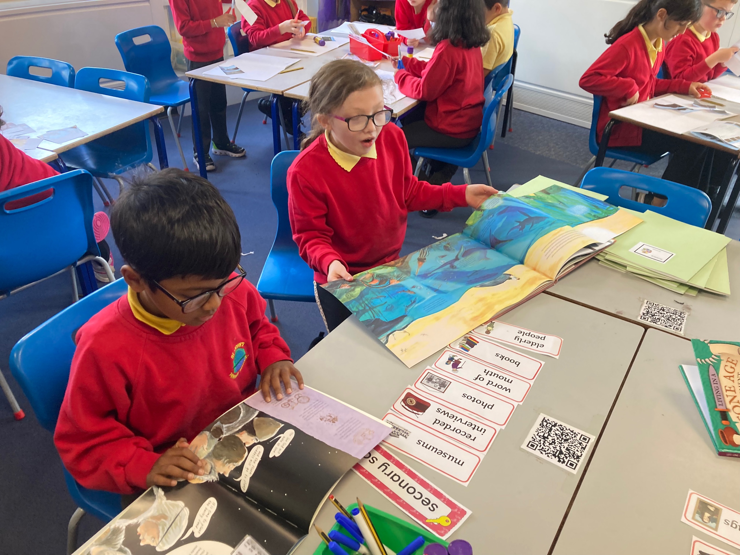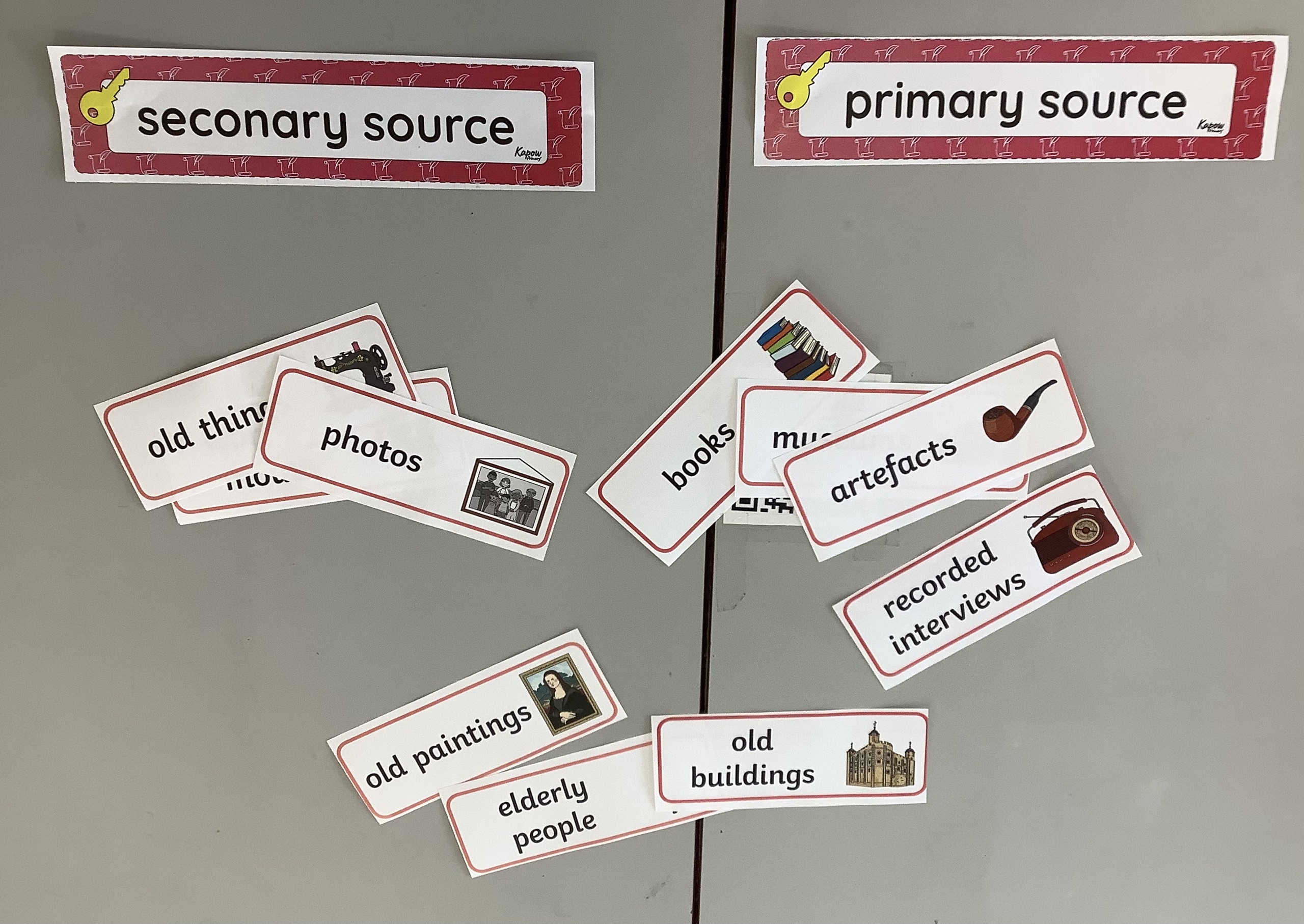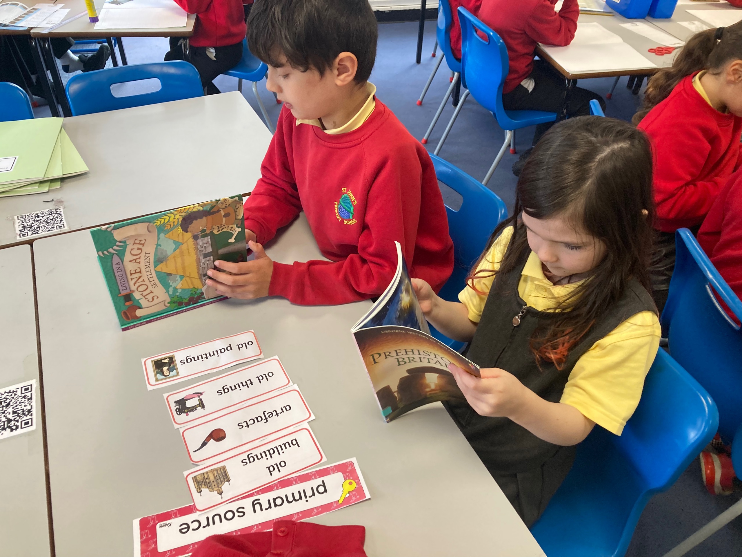 This activity was sorting different resources. The children had to decide if they were either primary or secondary sources. They then had some time to look at different books about the Stone Age.