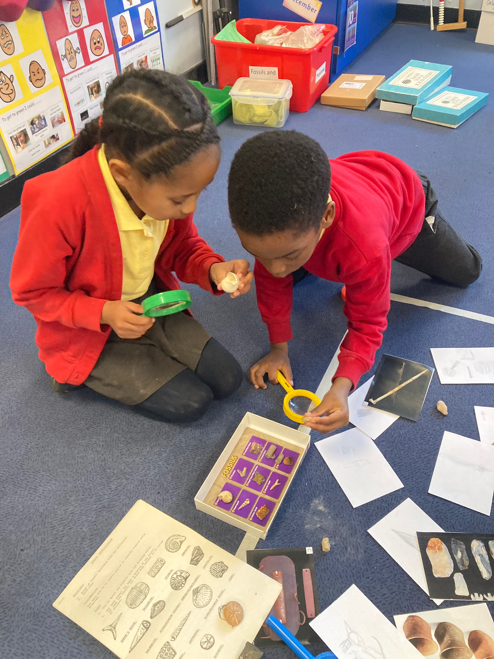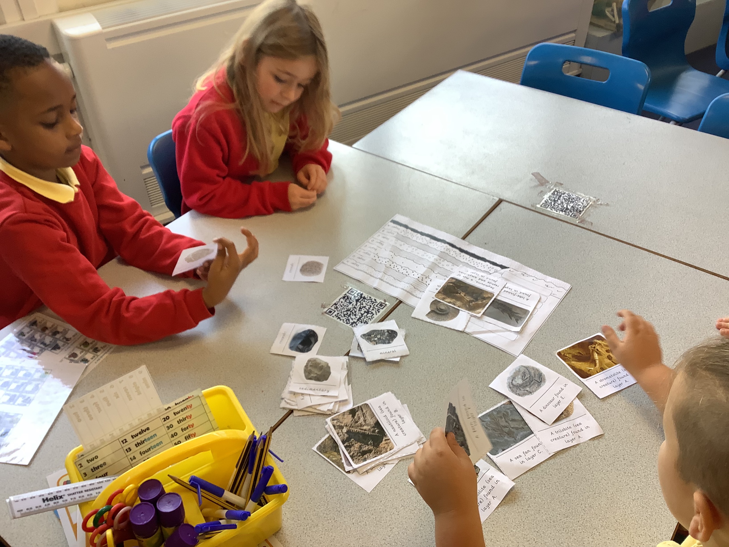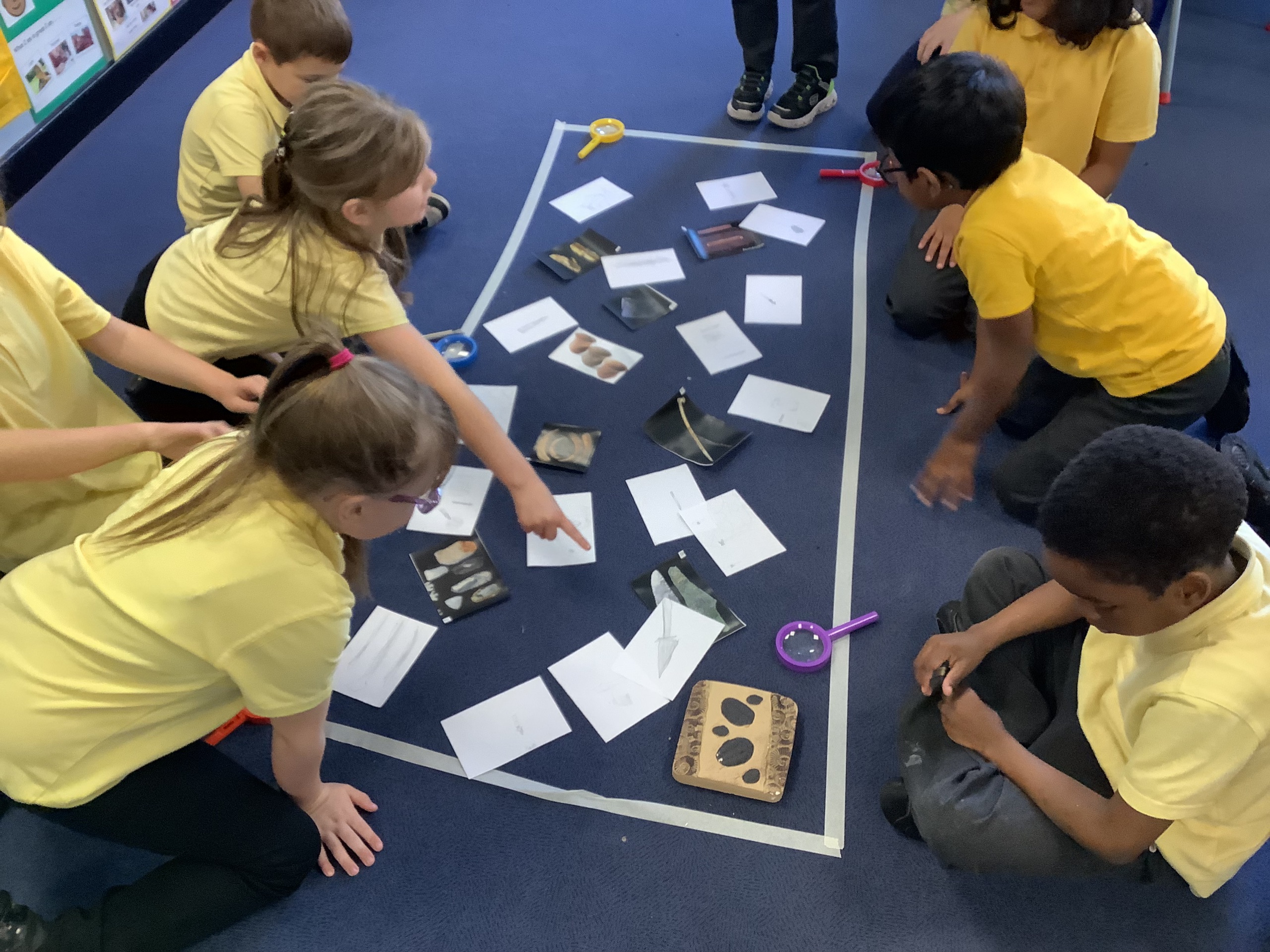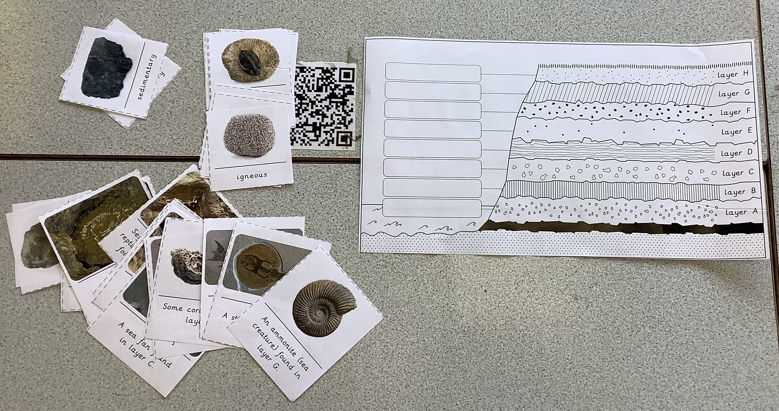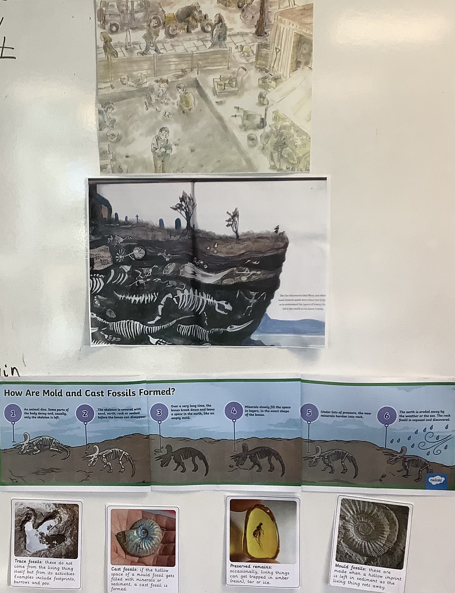 Three tables at the back were for the children to complete an activity of ordering images and writing how fossils were formed. We had all watched a video about this process and it helped support the children’s understanding while completing the other activities.