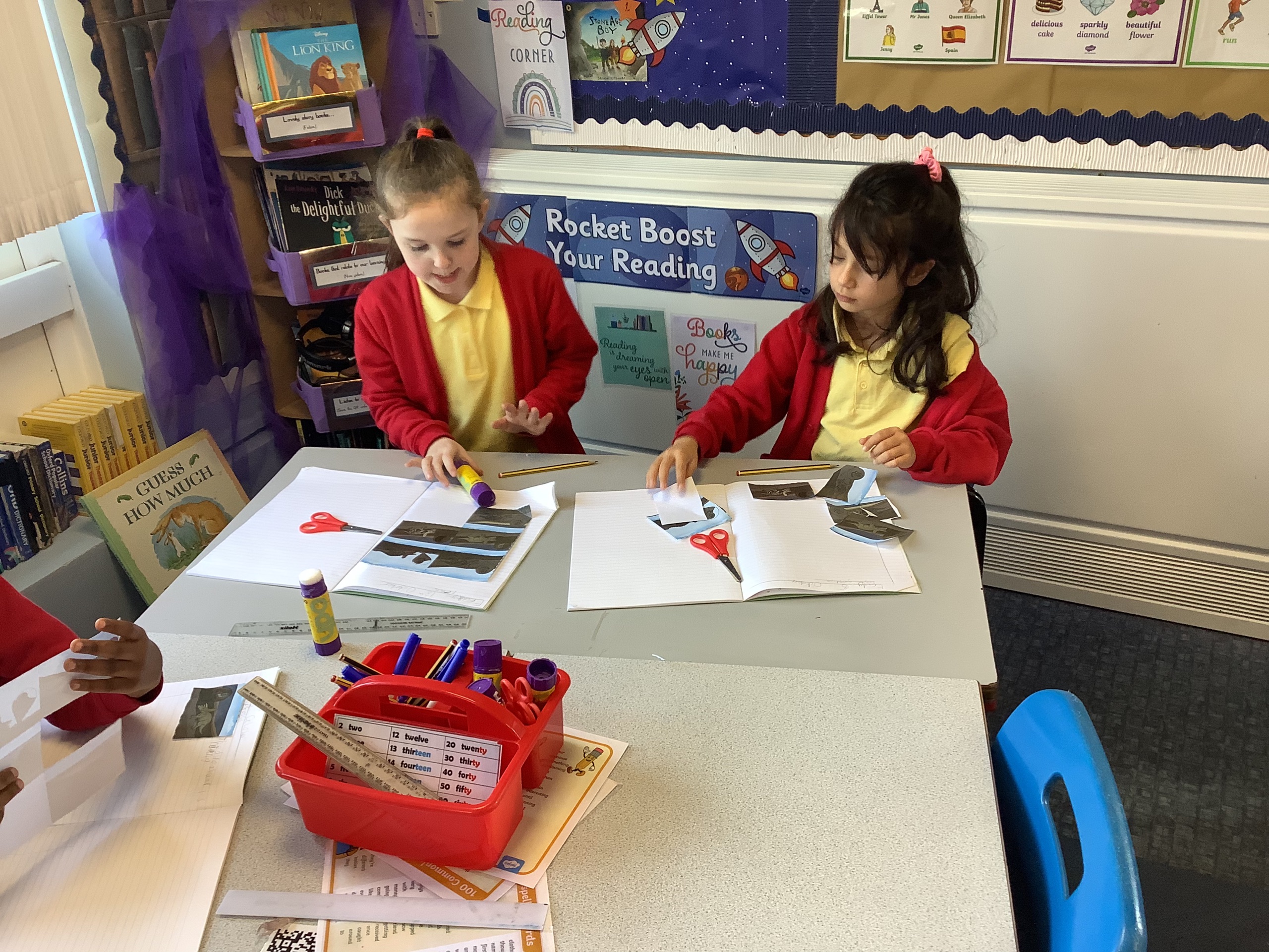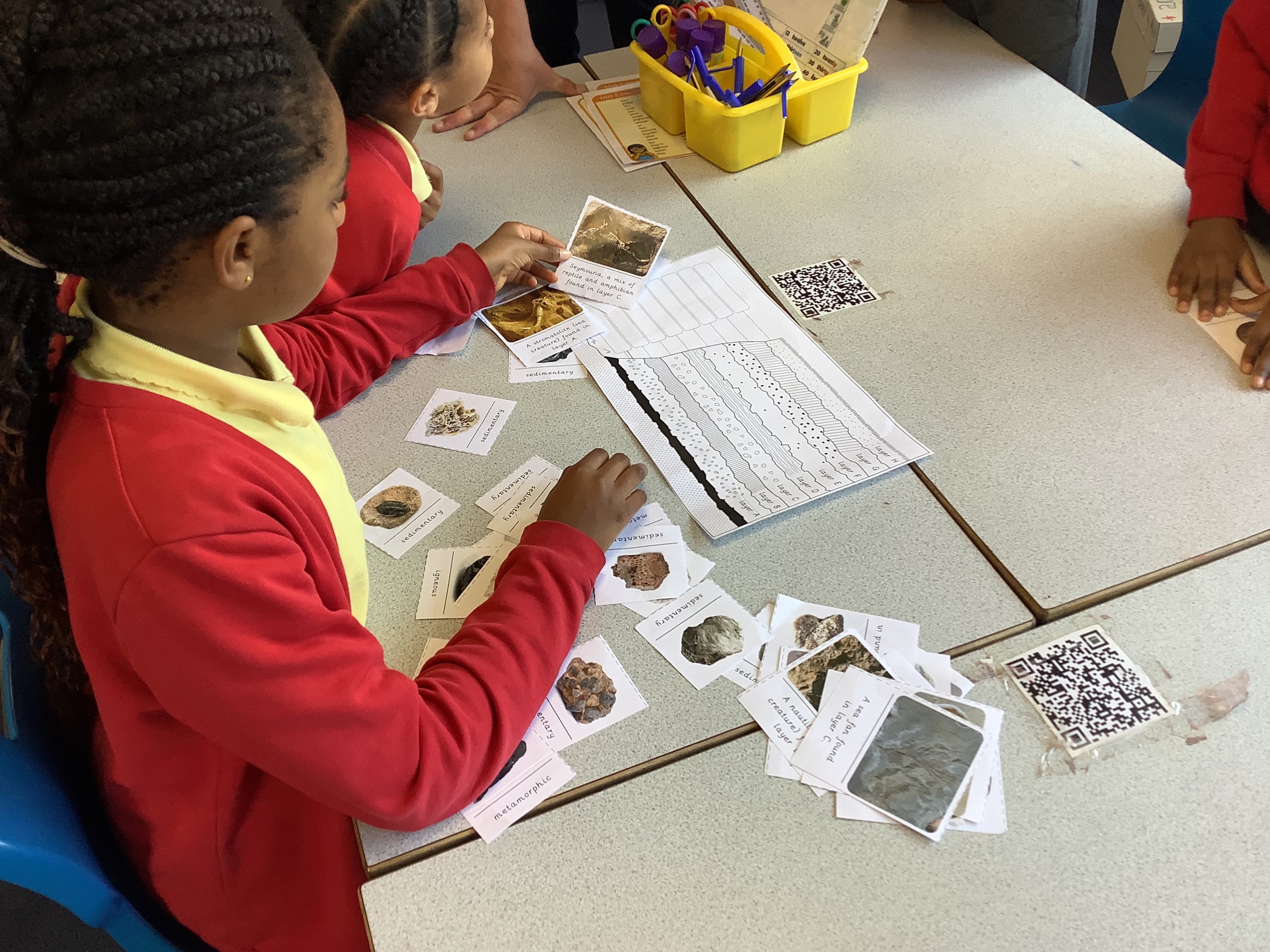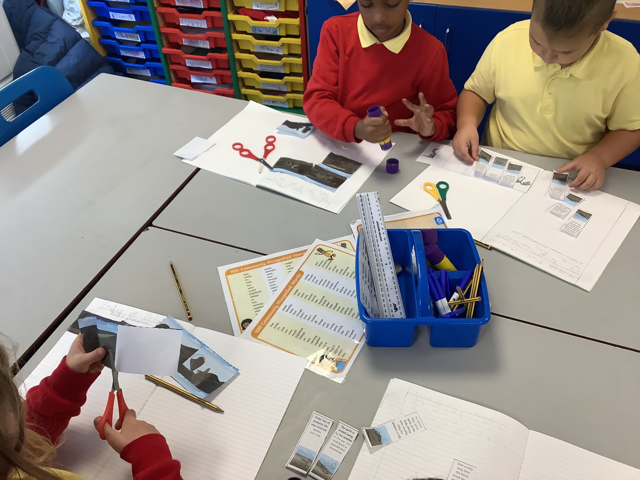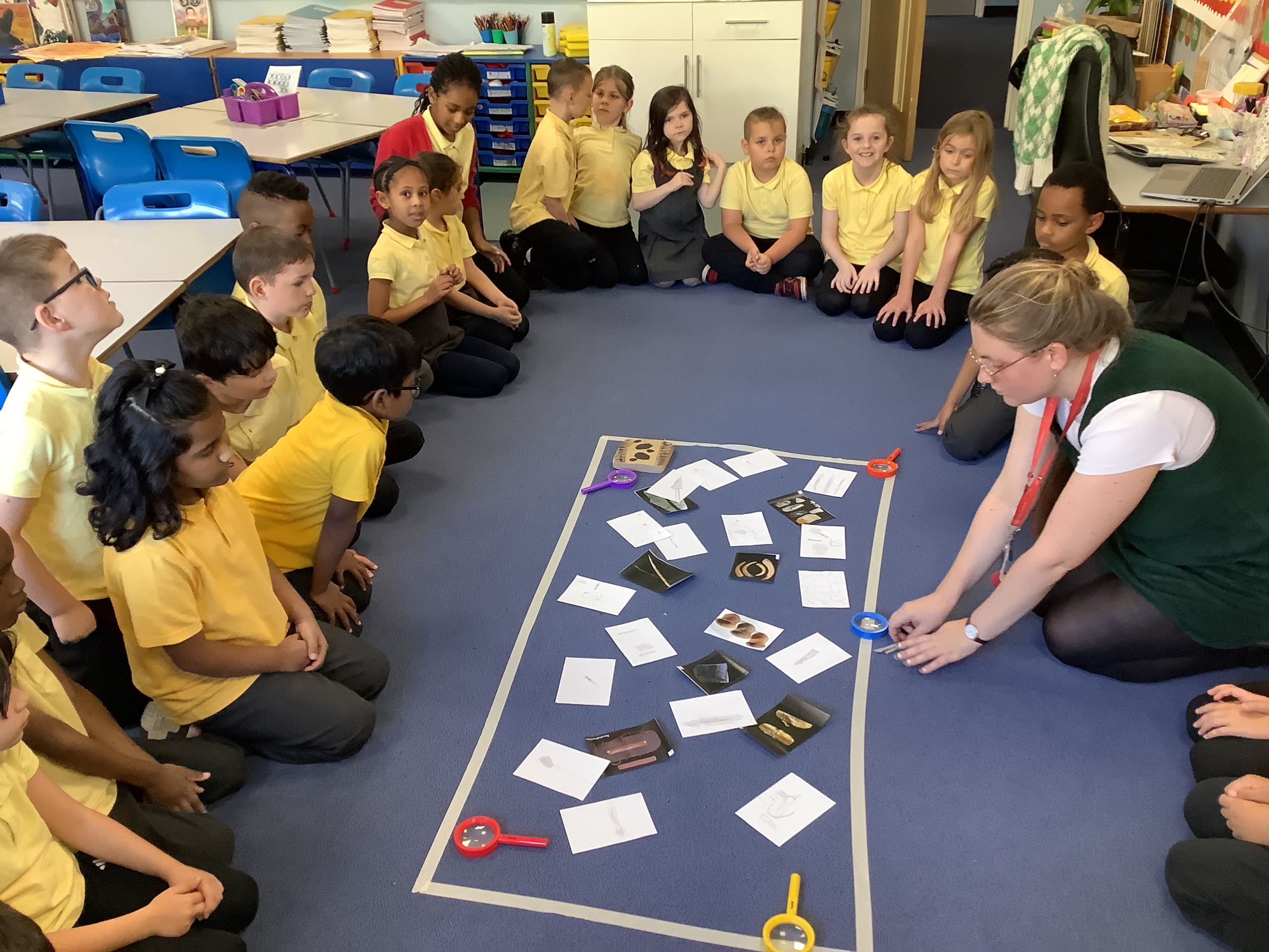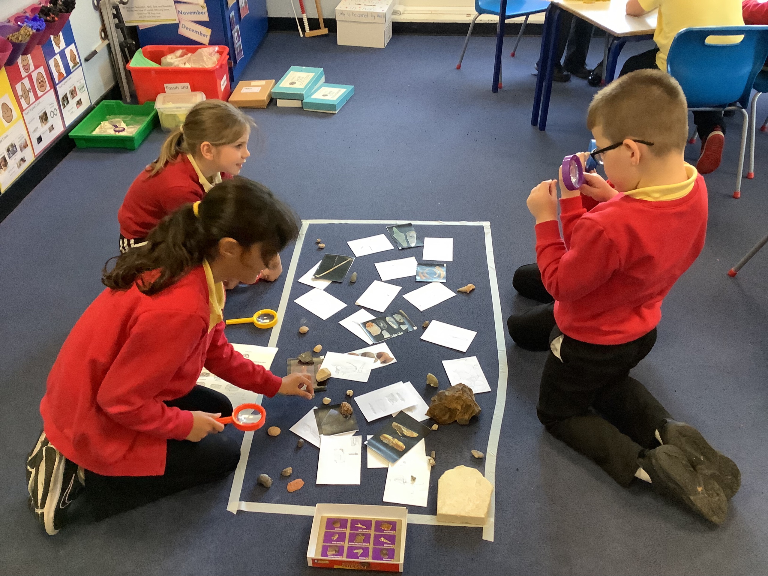 Three tables at the back were for the children to complete an activity of ordering images and writing how fossils were formed. We had all watched a video about this process and it helped support the children’s understanding while completing the other activities.