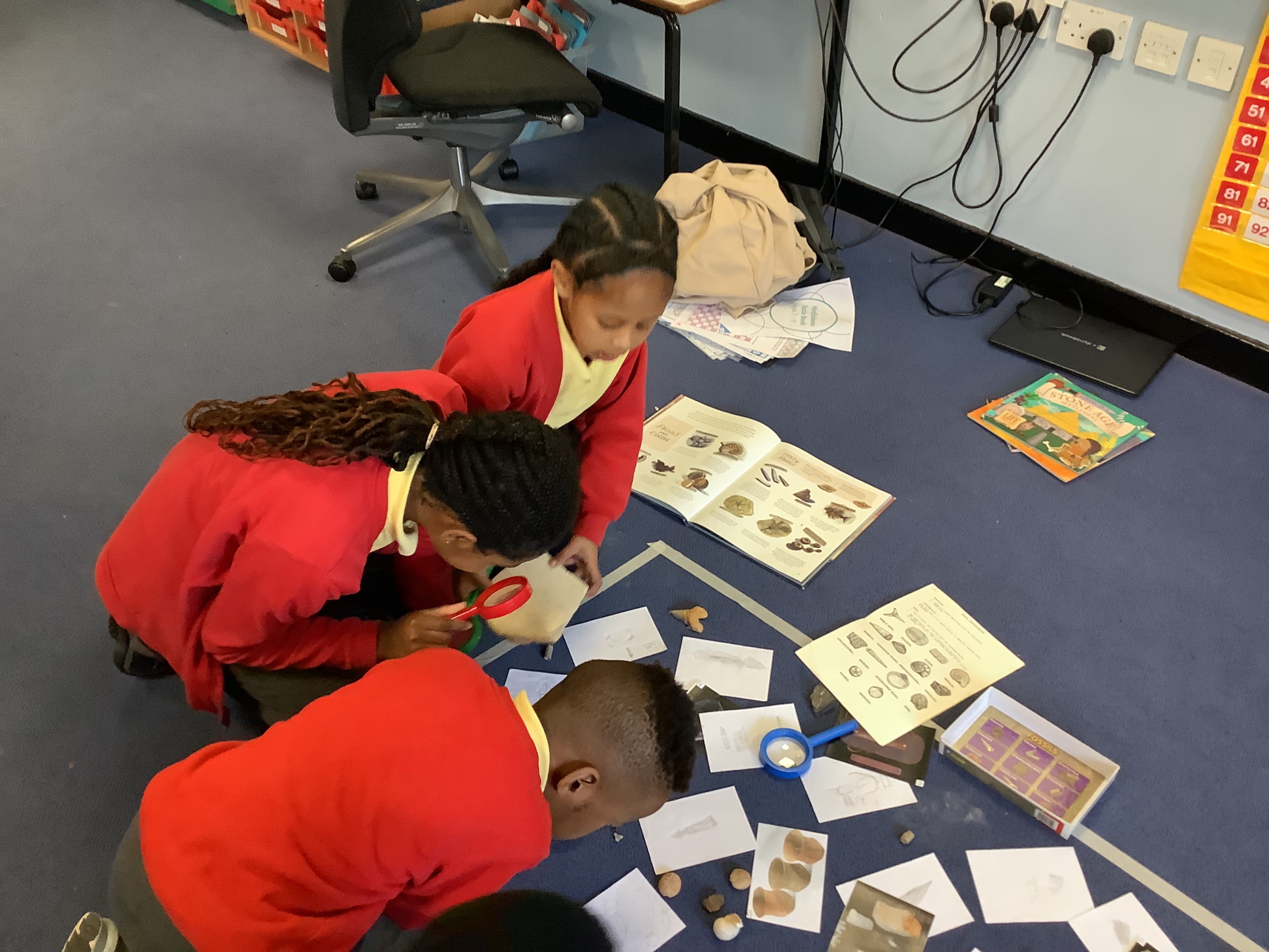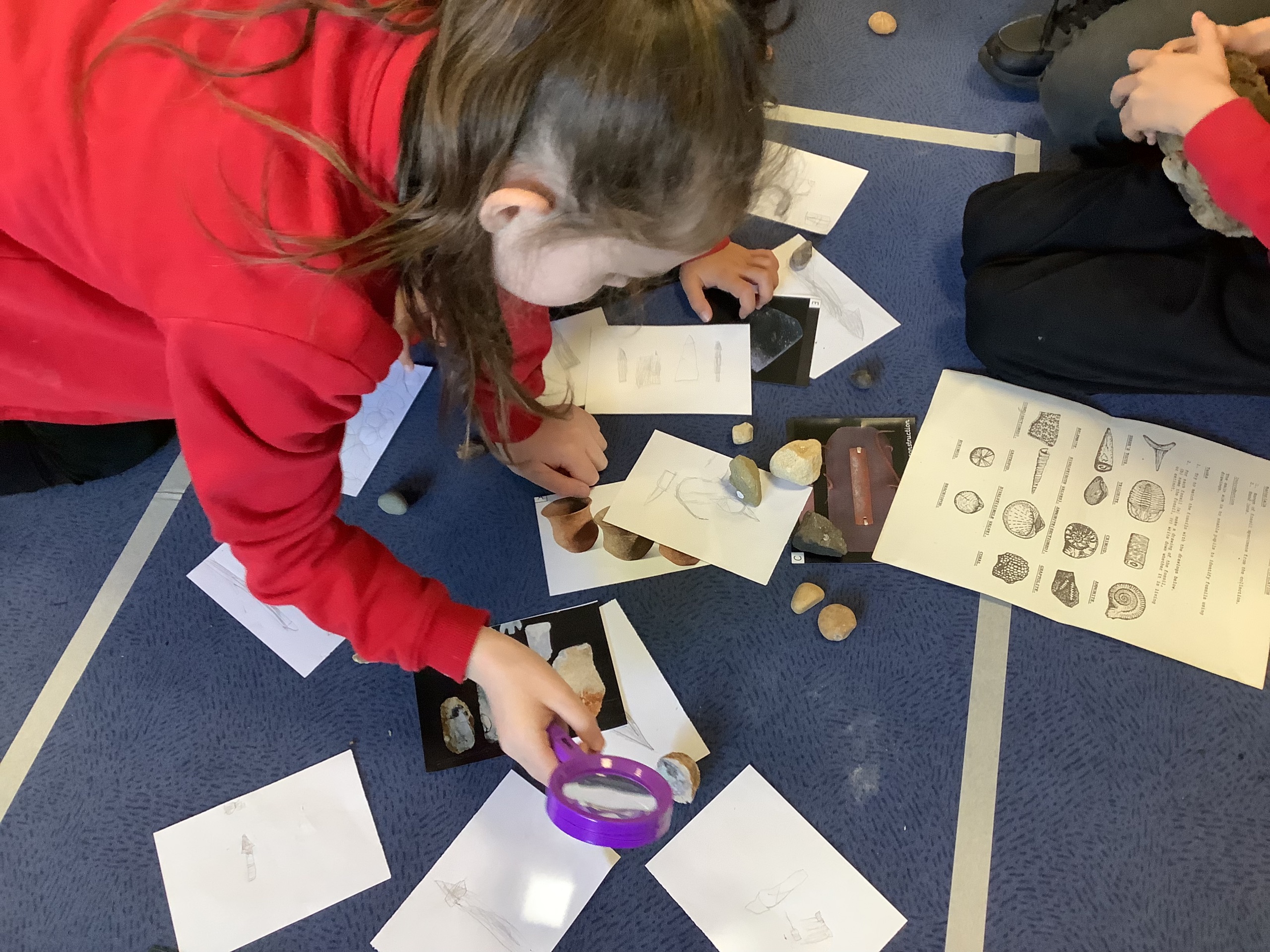 Working in smaller groups, the children got to explore the excavation site in greater detail. They had to sort the fossils into their different groups and discover which were just rocks.