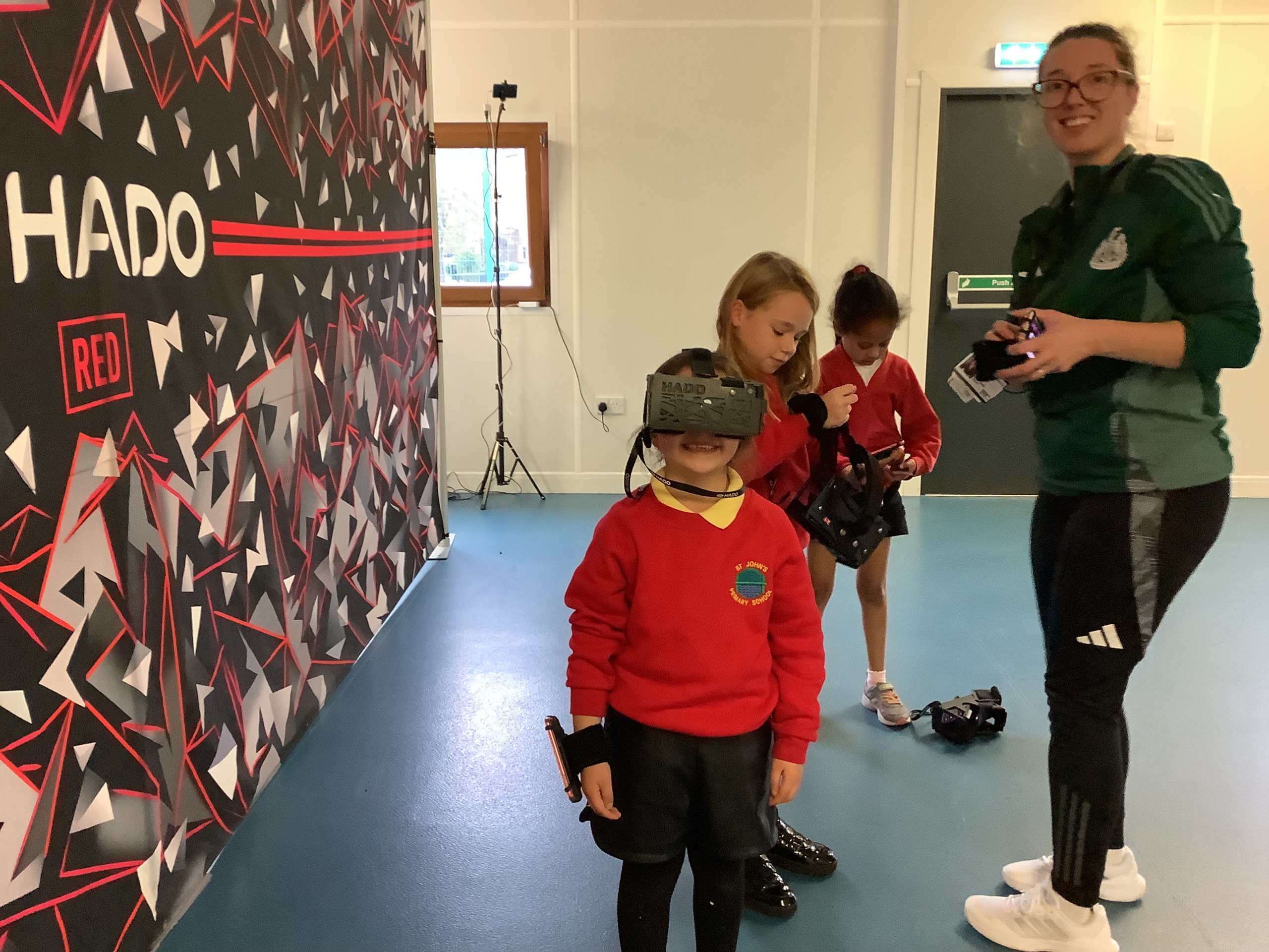 On Tuesday, we had a really exciting PE lesson! We had a special visit from staff at NUFC to deliver a virtual reality dodgeball session. The children played in groups of three and battled against one another on a virtual dodgeball game. The rest of the class were able to watch the game on the screen. It was great fun, even Mr Walker and Mr Gray had a go!