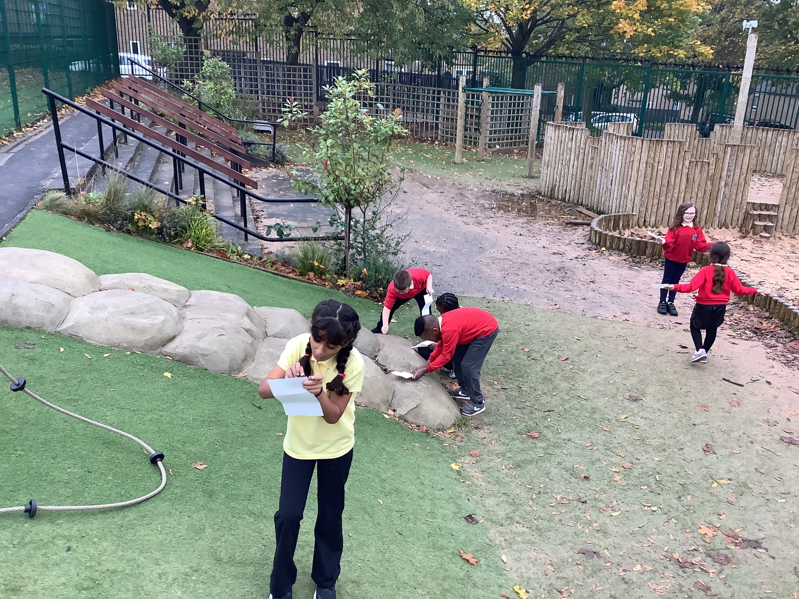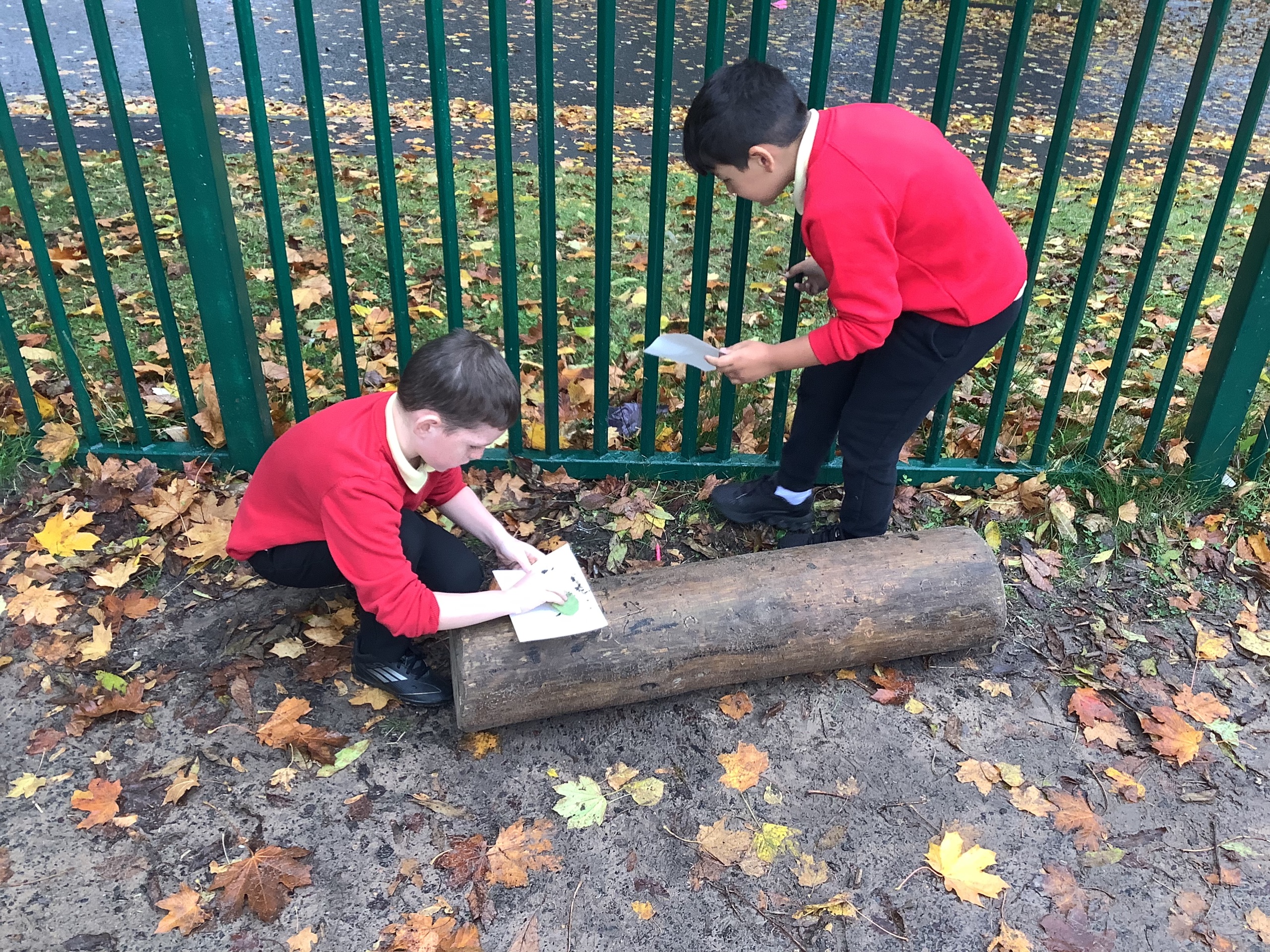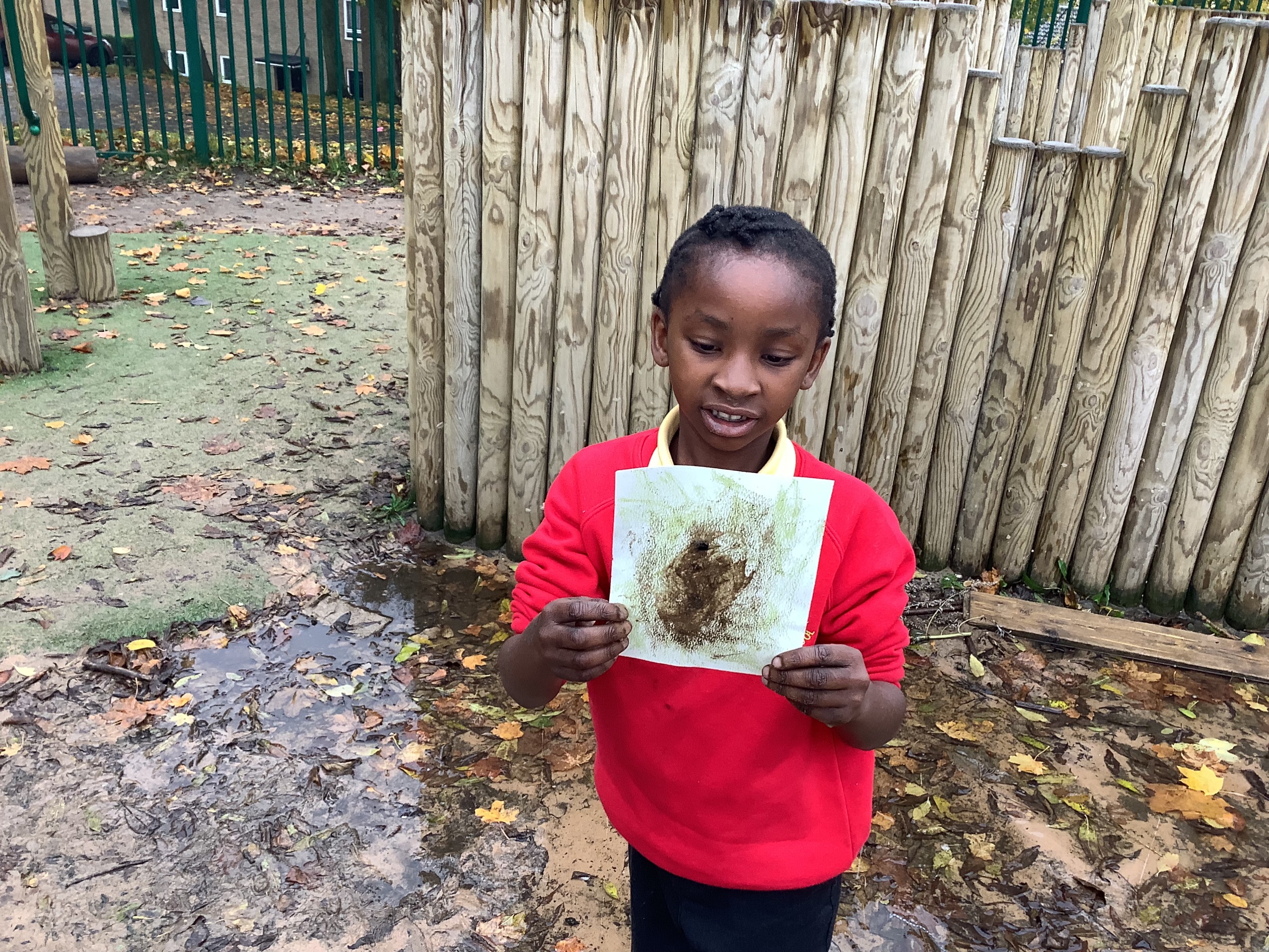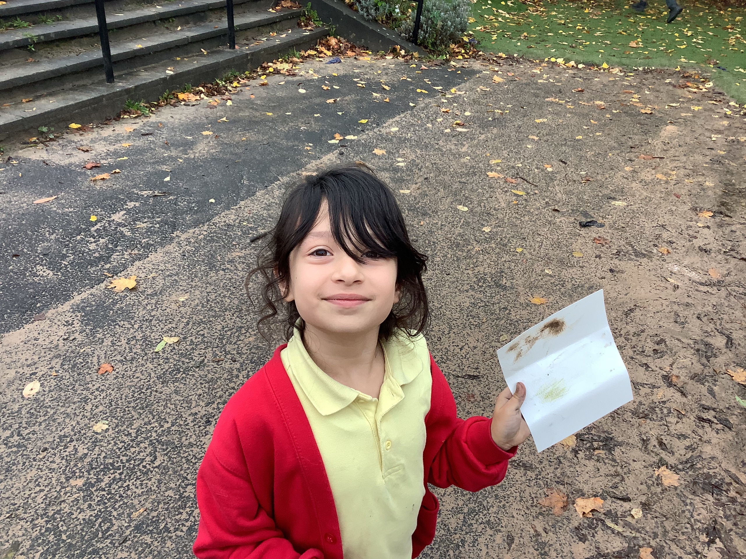 After, we went outside to explore the different colours that we can make using our natural surroundings - just as they would of done in the Stone Age!
