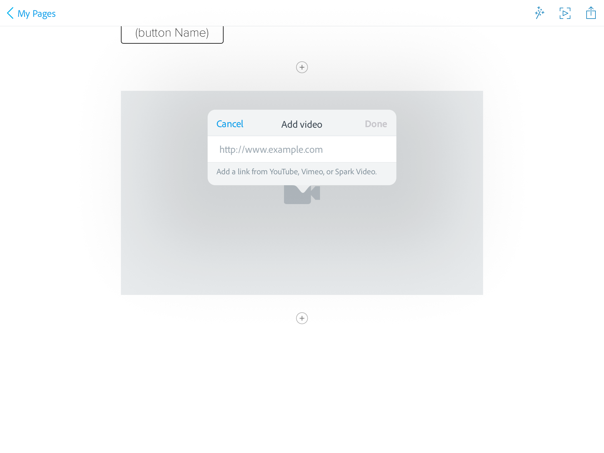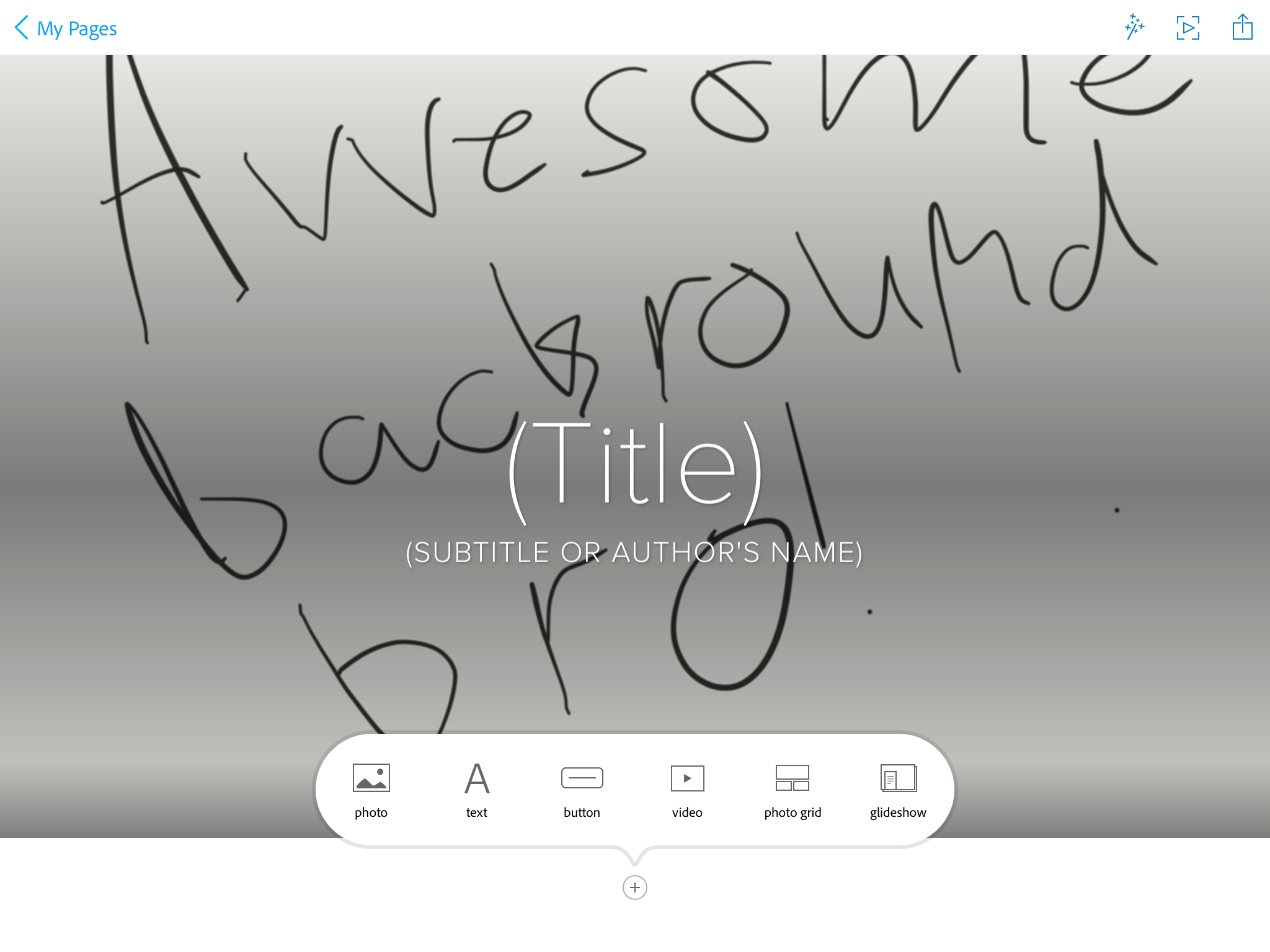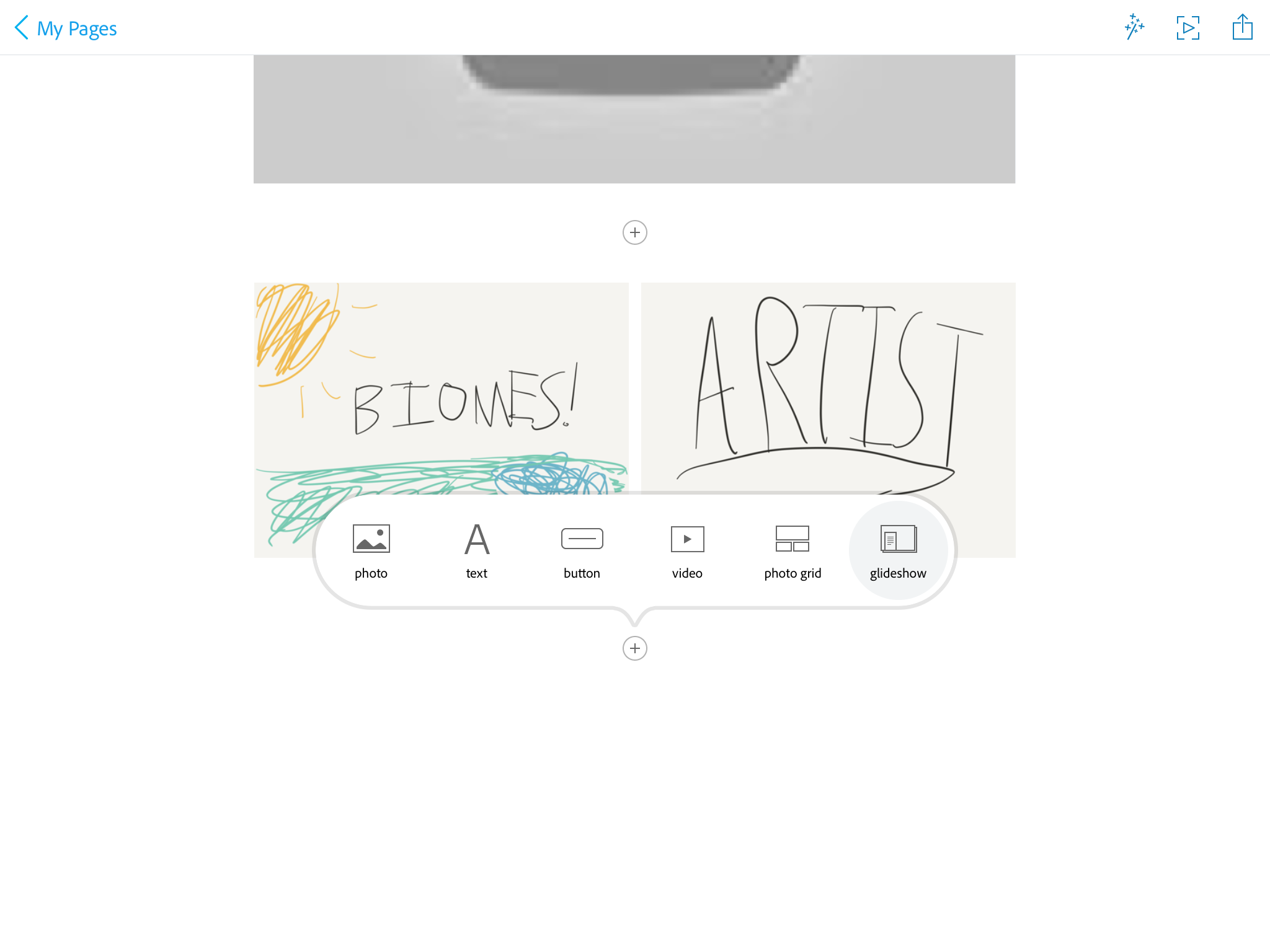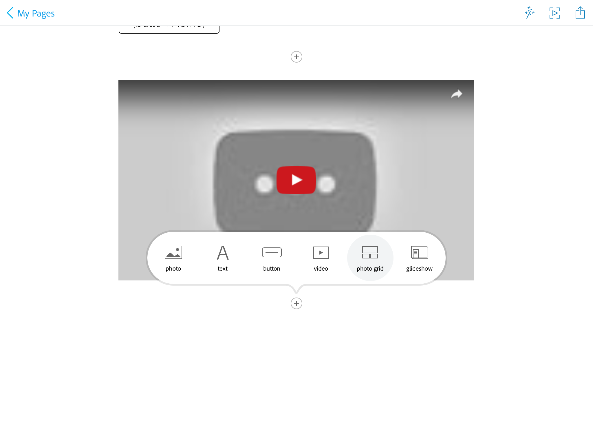 Then add text, photos, link buttons, videos, photo grids, or glideshows