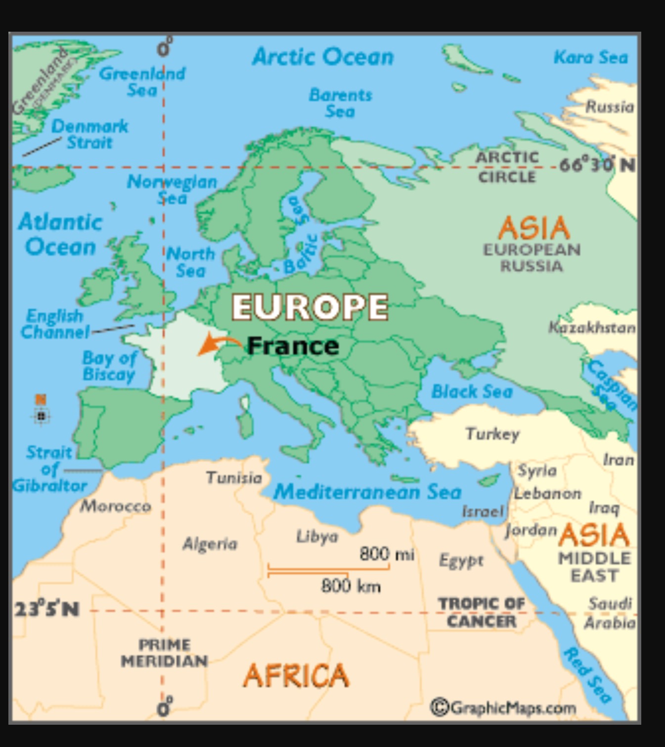 The geographic coordinate location of France is 46.2276 N, and 2.2137 E,