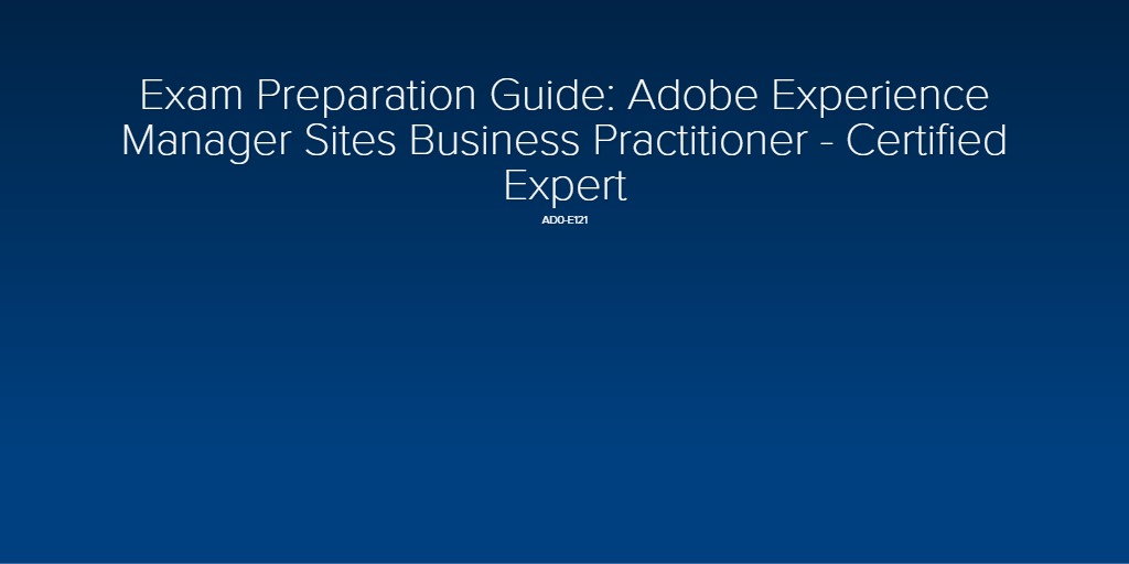 The Adobe Certified Expert - Adobe Experience Manager Sites Business Practitioner exam preparation guide provides potential candidates with information they need to prepare for the certification exam.