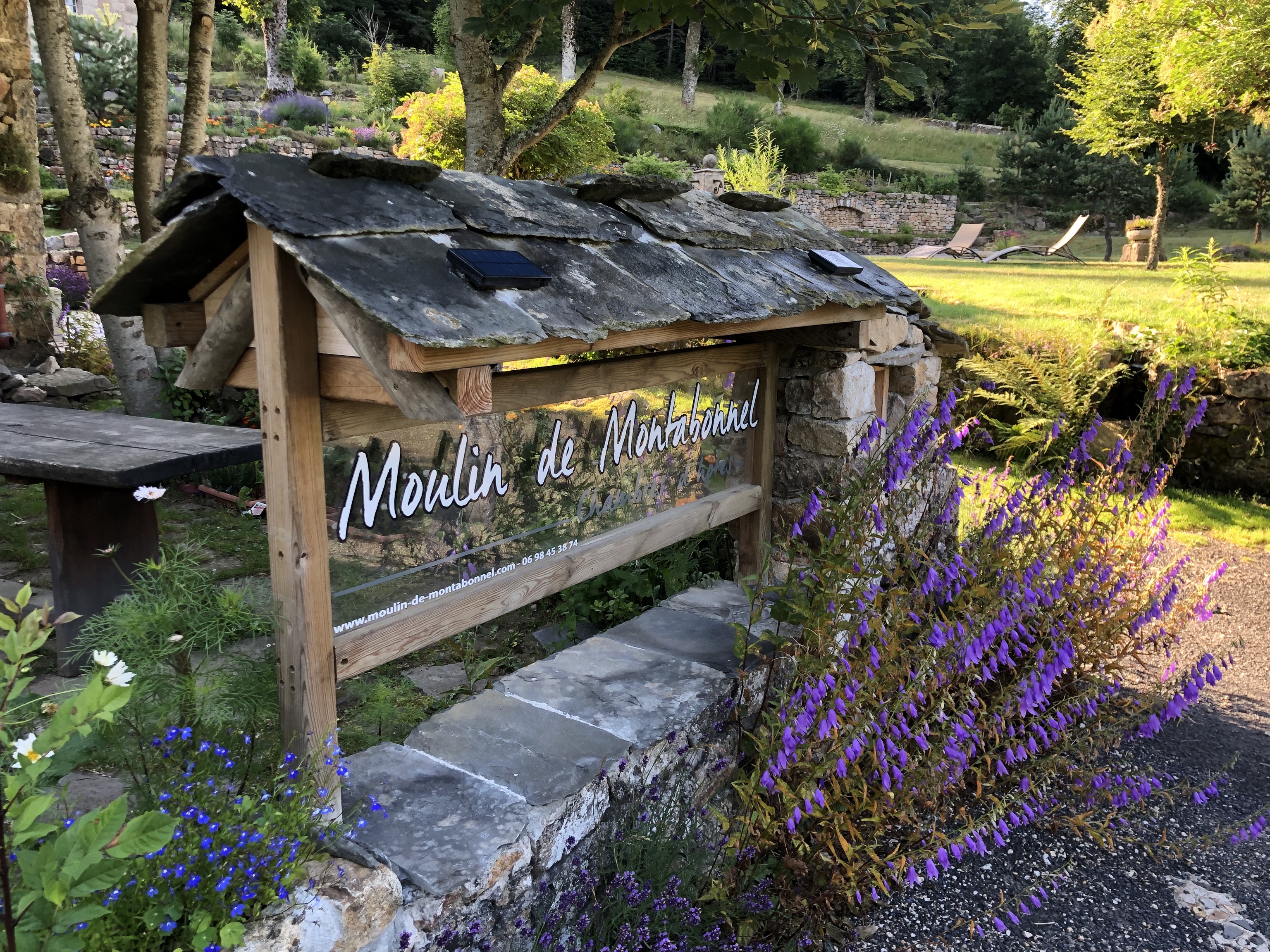 Von dort ging es weiter in unsere Unterkunft „Moulin den Montabonnel“. Das ist kein klassisches Hotel, sondern eher ein Bed & Breakfast oder Pension, von einem Ehepaar geführt und ein kleines Paradies. Das Haus liegt mitten in den Bergen, umgeben von Wäldchen, der nächste Nachbar ist in der Ferne (und trotzdem LTE !!!!), ein Bächlein fließt dort entlang und die Luft ist wunderbar rein.