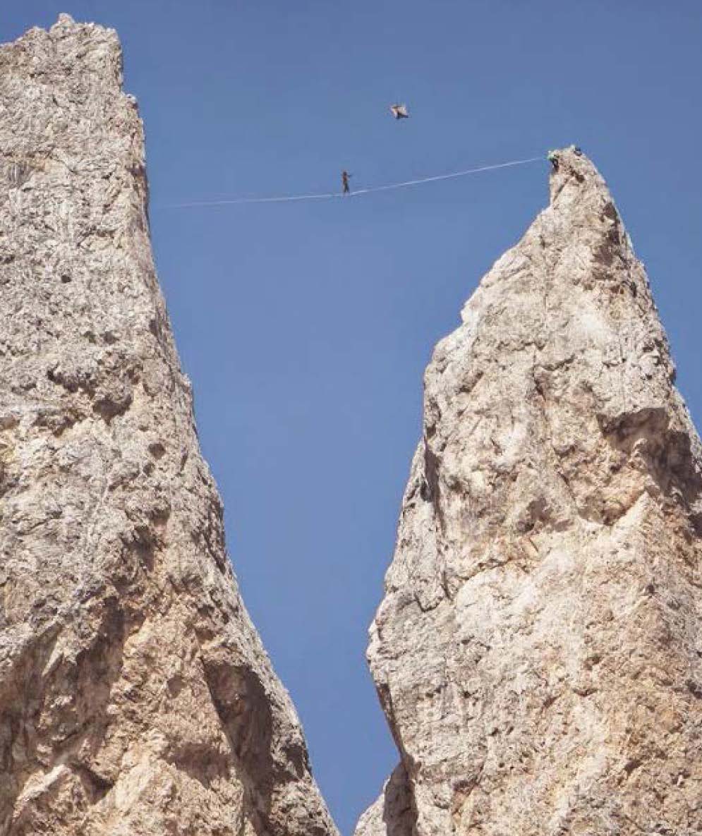 - Aperture di nuove highline e ripetizioni in Alto Adige e dintorni: Dolomiti, pareti di Vadena, Ora, Roen, Arco - Valle del Sarca, Val di Fiemme, Lagazuoi, Genova, Svizzera.