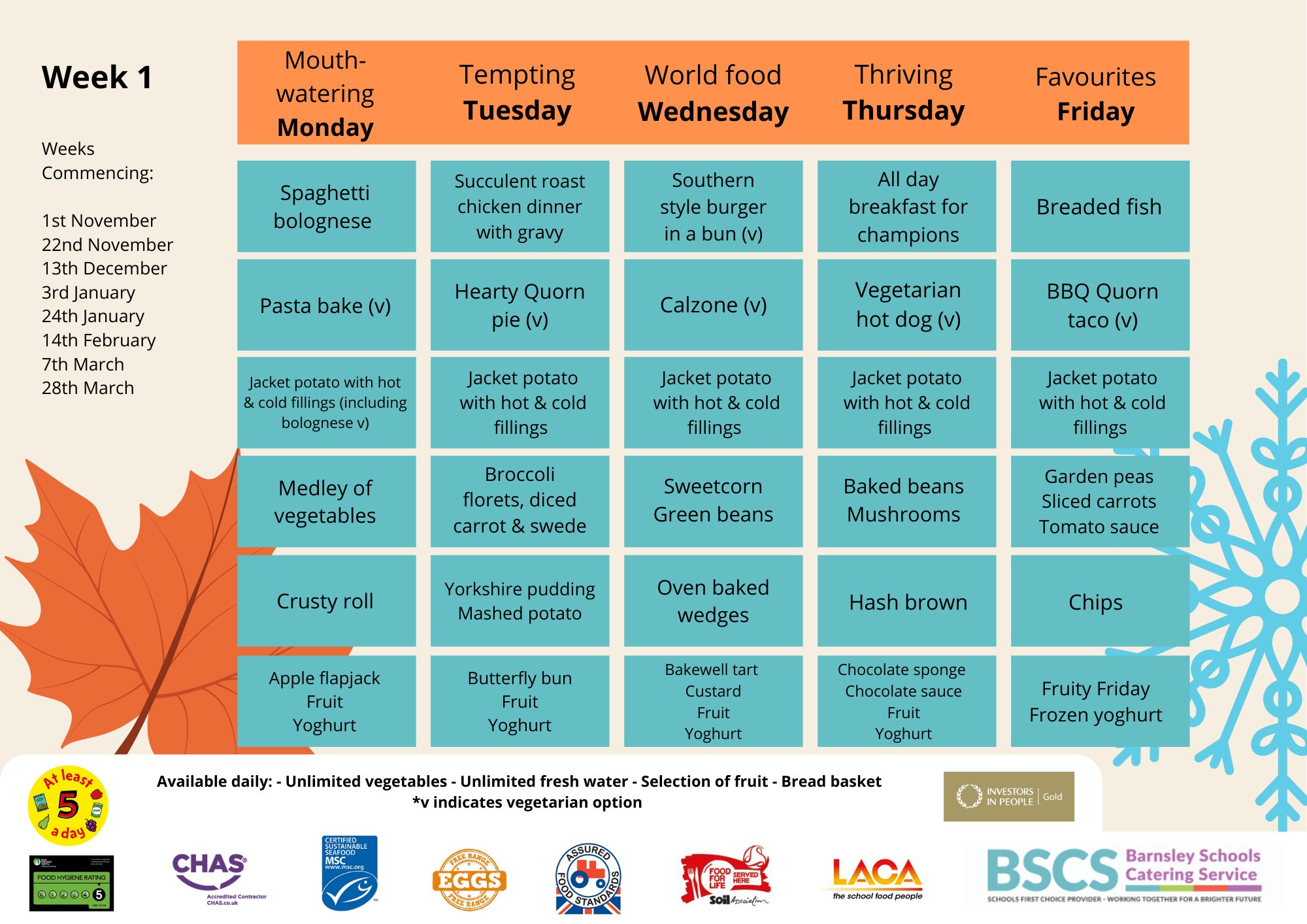 New school meals menu