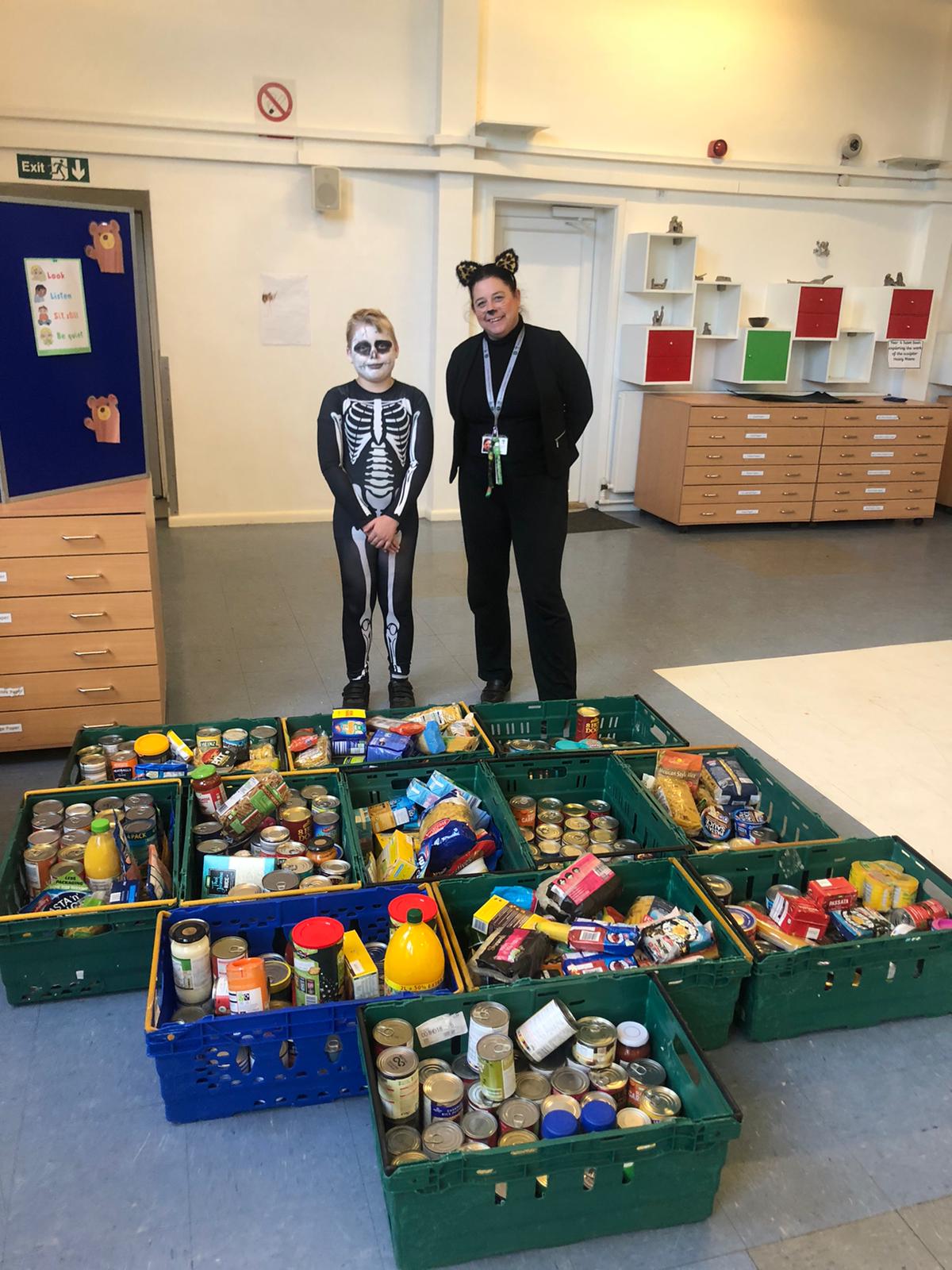 Today saw Isaac’s idea come to life! Isaac asked if children could come to school in Halloween costumes in return for donations for the food bank and this is what we got! Thank you everyone.
