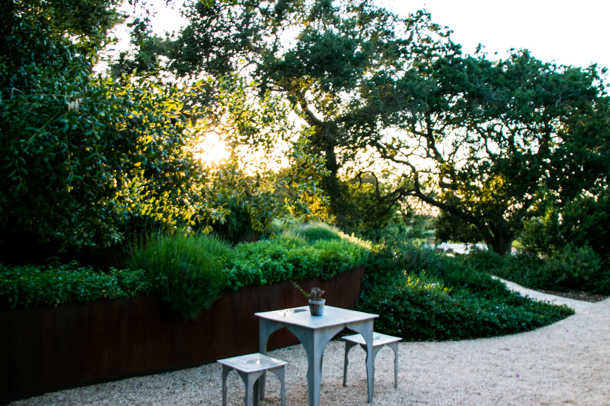 The garden is beautiful and the atmosphere at sunset set the mood for the evening.