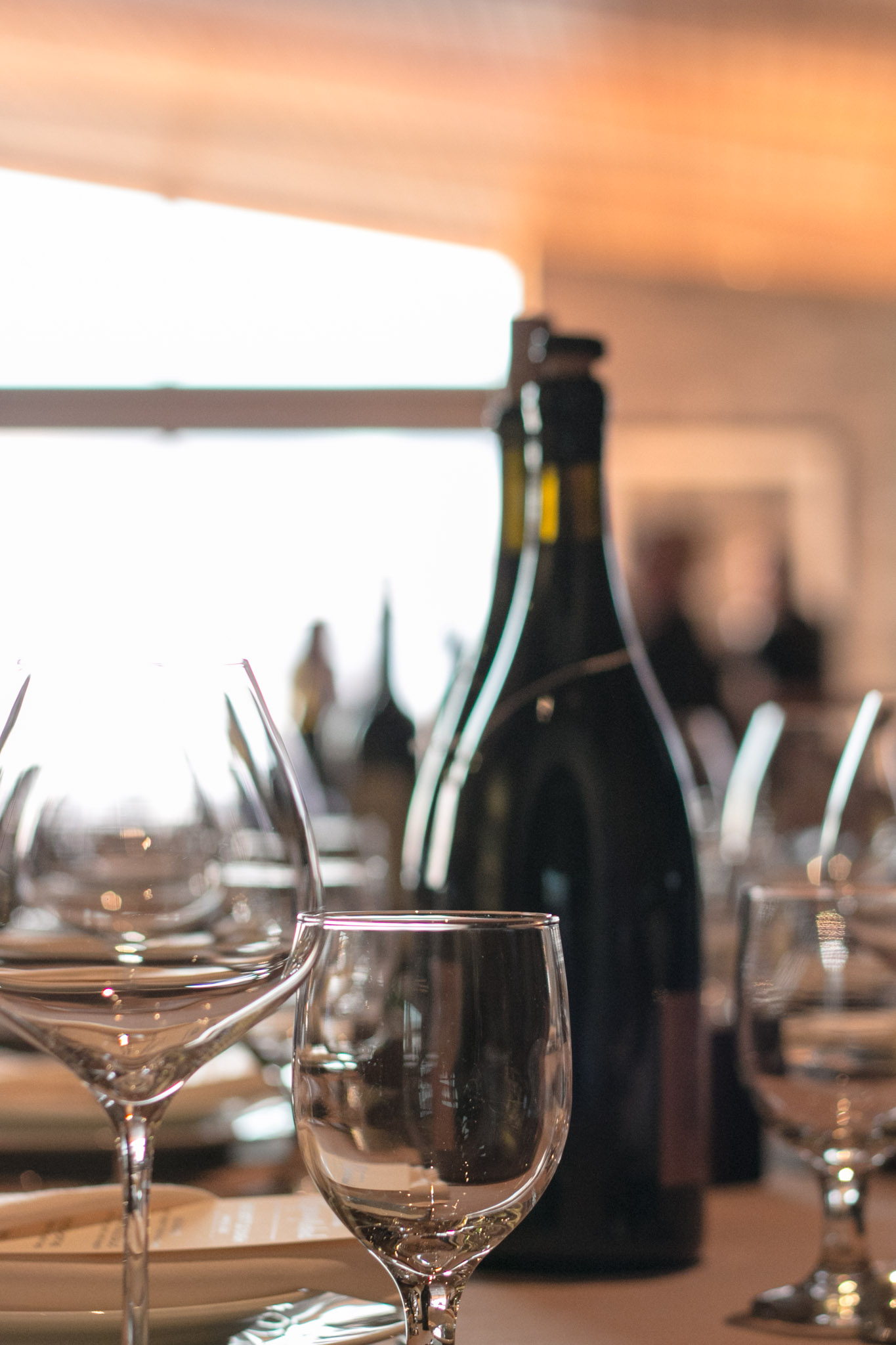 As the sun began to set, we were ushered back into the tasting room where tables were set for the dinner. The tables were dotted with the Magnums of wine that each couple were asked to bring and after a welcome from Matt Murphy, the co-founder and President of Presqu’ile the guest Somms set about pouring wines.