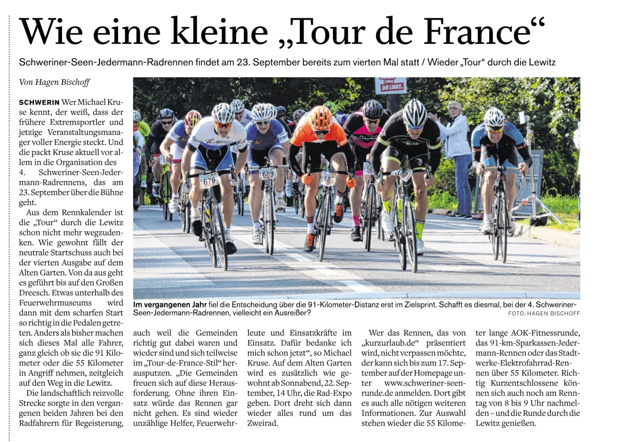 Endlich ist es wieder so weit. Alle Radsportbegeisterten in Deutschland sind nach Schwerin eingeladen, um am 4. Jedermannradrennen durch die Lewitz teilzunehmen.