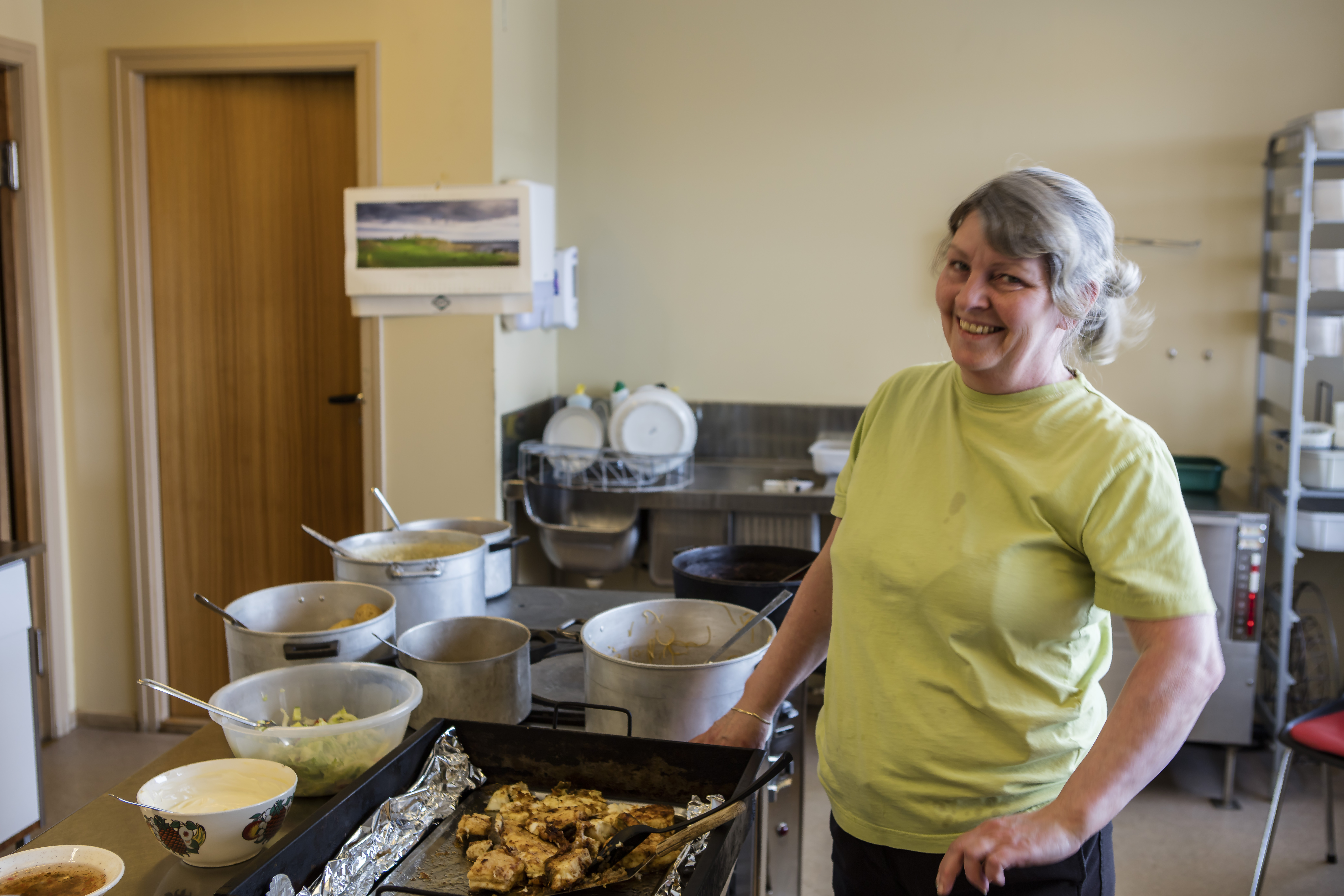 Så ringer klokka tolv og det er middag oppe i kantina.
