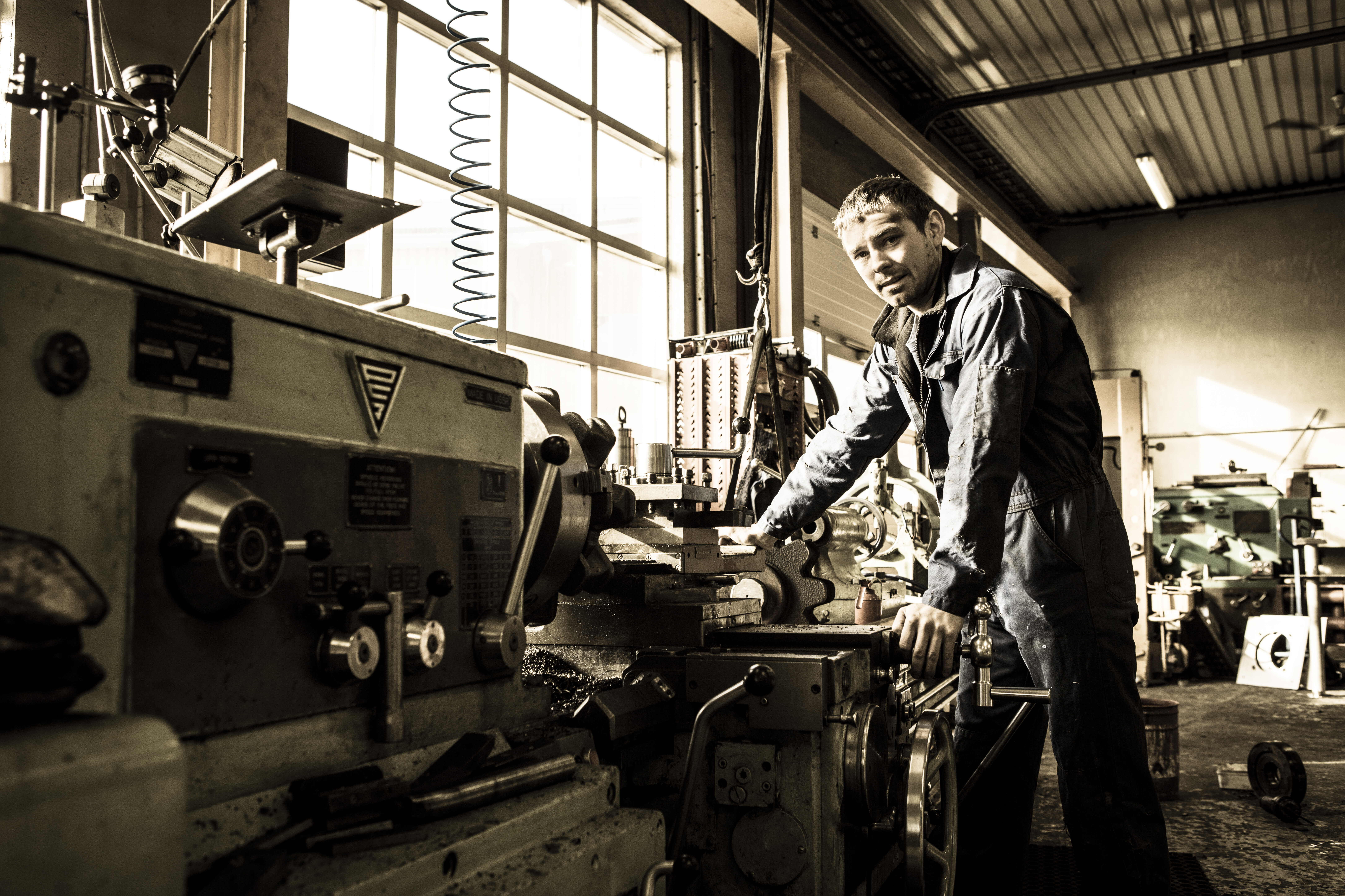 Ferden fortsetter bort til mobildokken, men på vei dit, tar vi en stopp ved dreie-verkstedet. Her har det også nylig vært generasjonsskifte, og det er 25 år gamle Kristoffer Rabben fra Frøya som nå betjener dreiebenken fra 1974. Læremester Bjørnar Skagen har gått av med pensjon, og det er et stort og gildt ansvar som nå hviler på den unge industrimekanikeren.