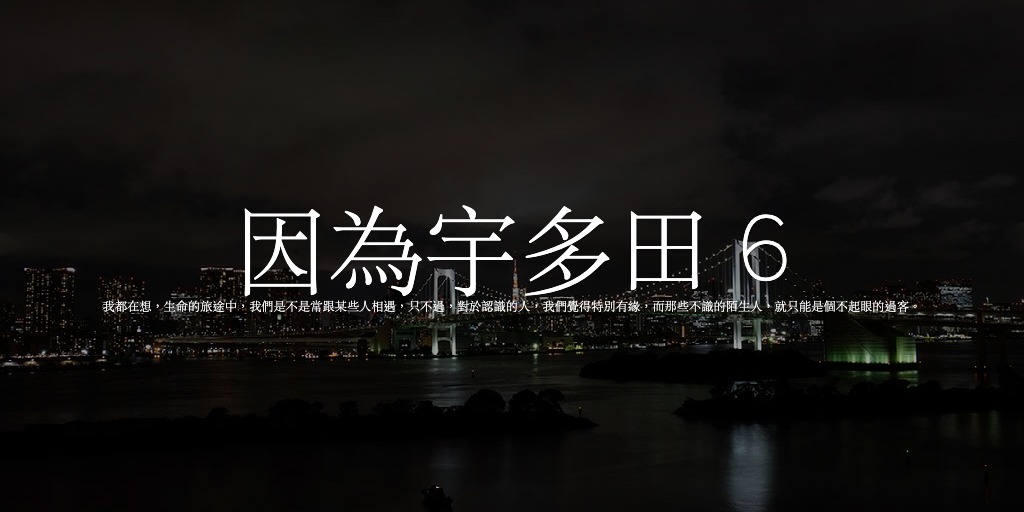 因為宇多田 6 我都在想,生命的旅途中,我們是不是常跟某些人相遇,只不過,對於認識的人,我們覺得特別有緣,而那些不識的陌生人,就只能是個不起眼的過客。