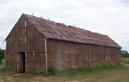 The Mohawk tribe lived in these houses that are cloud Longhouses which are made out of wood-and-bark. These types of homes where located in central New York about in the year of 1780. Several Longhouses were clustered together into villages, and each village was surrounded by a defensive stockade, or palisade, a wall of tall poles sharpened at the top. Fun Fact: Longhouses housed as many as twenty families in one Longhouse.