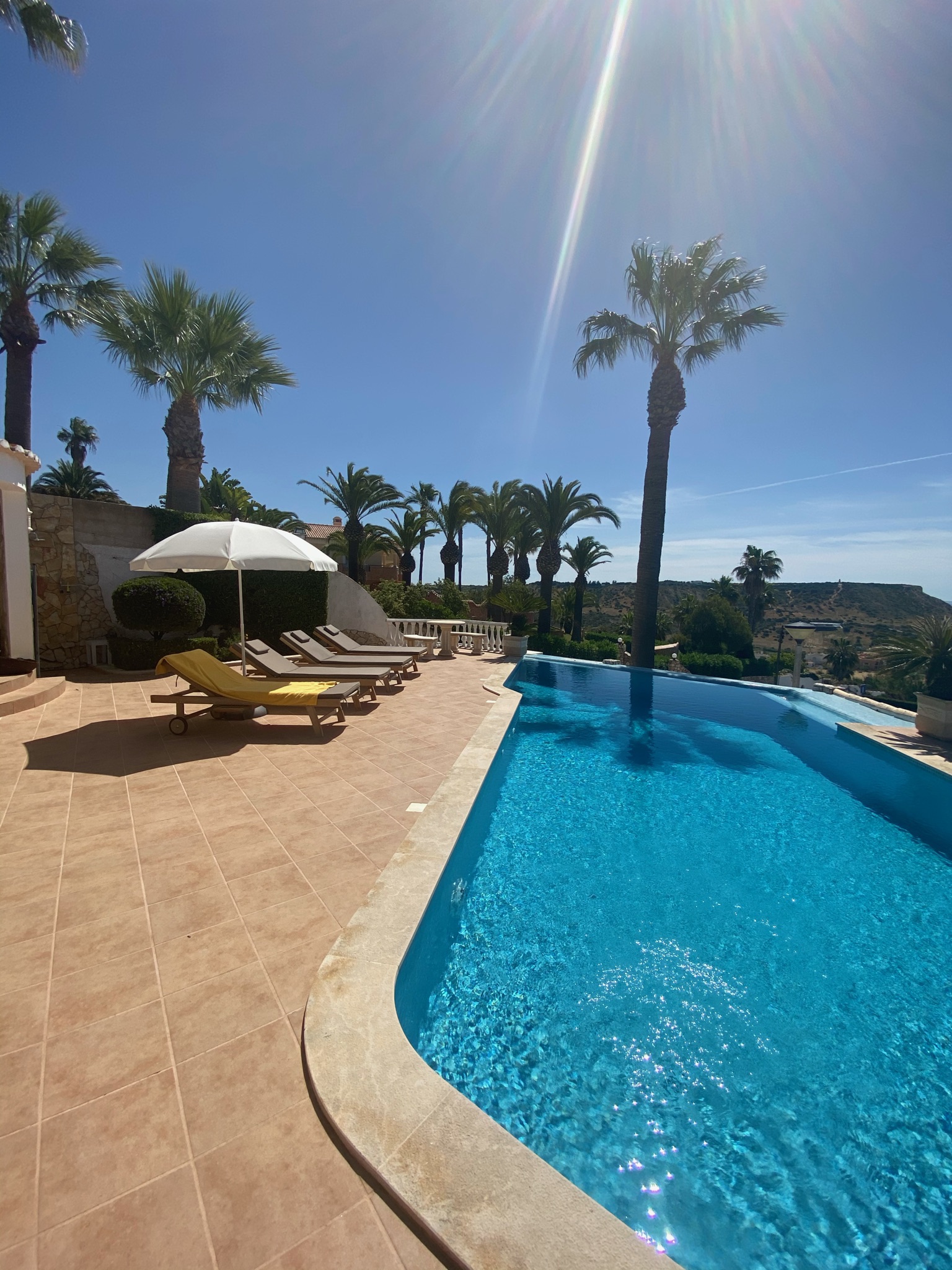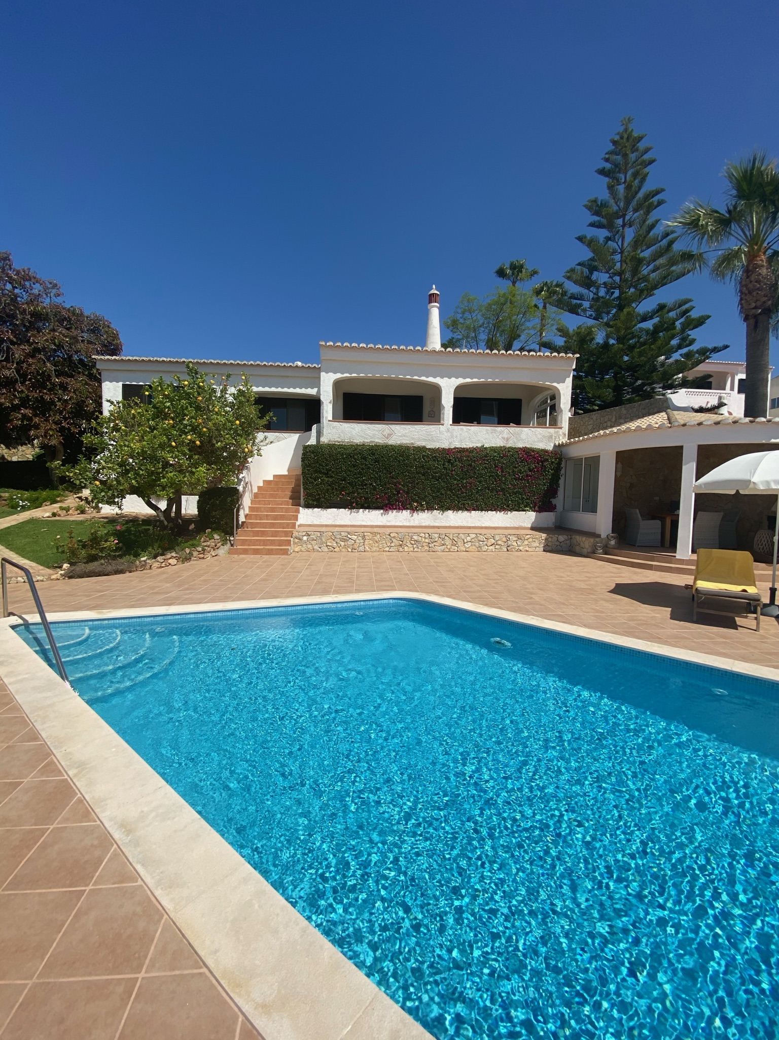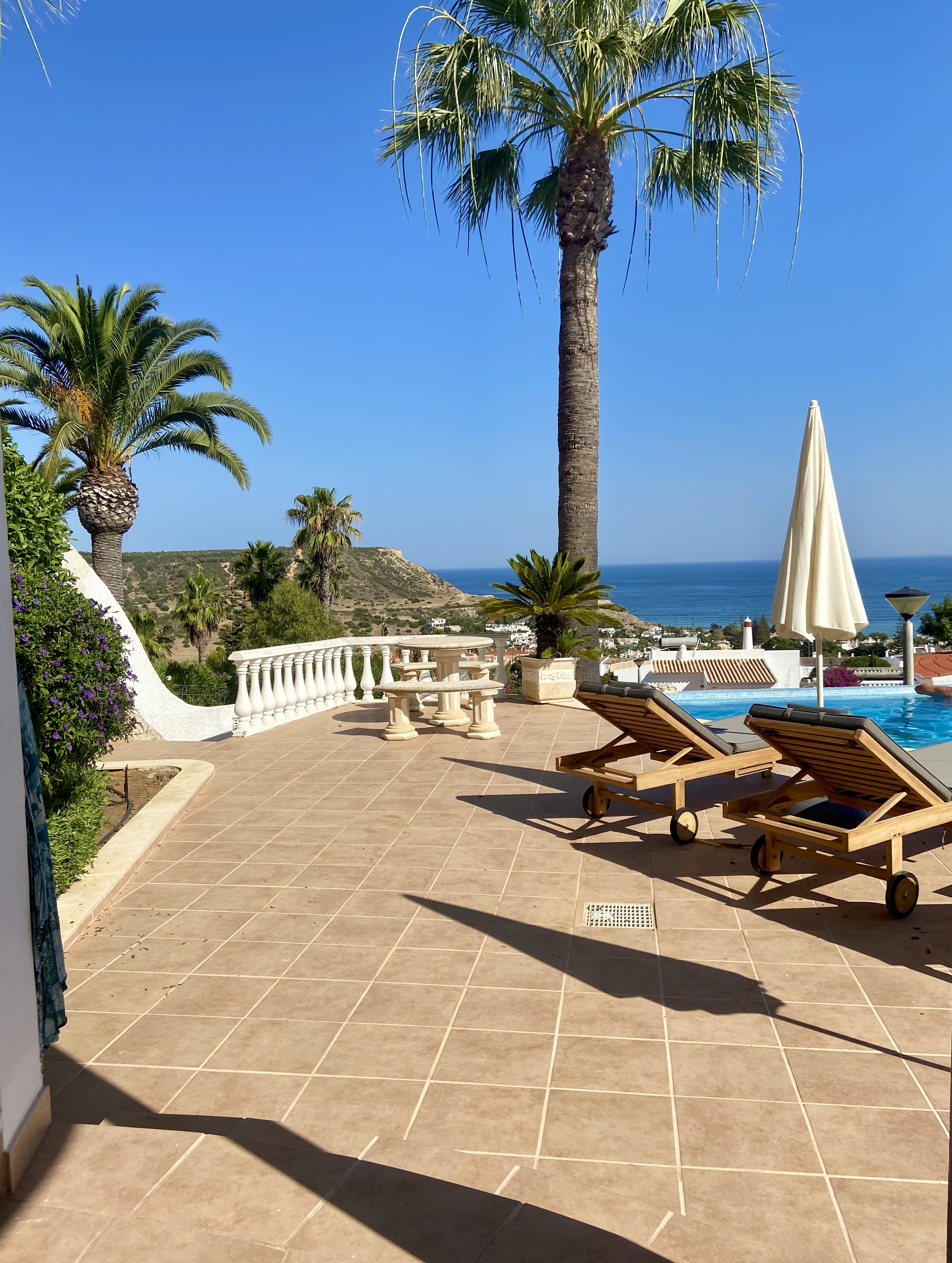Die am Hang gelegene Vivenda do Flor ist eine wunderschöne Villa. Sie liegt oberhalb des kleinen Badeortes Luz an der Westalgarve. Sie verzaubert uns immer wieder mit einem traumhaftem Meerblick, den wir sogar vom eigenen Pool aus genießen können. Die vielen Terrasse, Sitzgelegenheiten und der gepflegtem Garten laden ein zum entspannen.