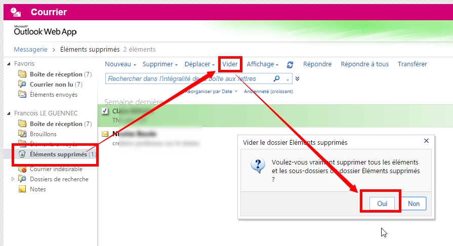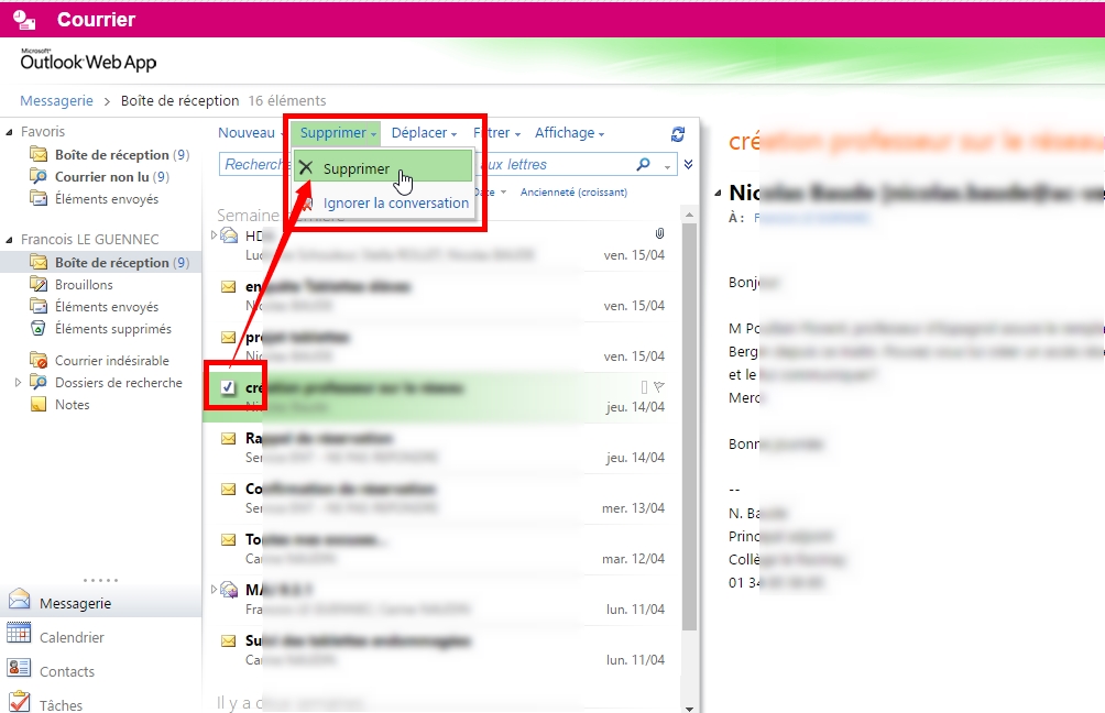 Pour supprimer un mail ou plusieurs mails