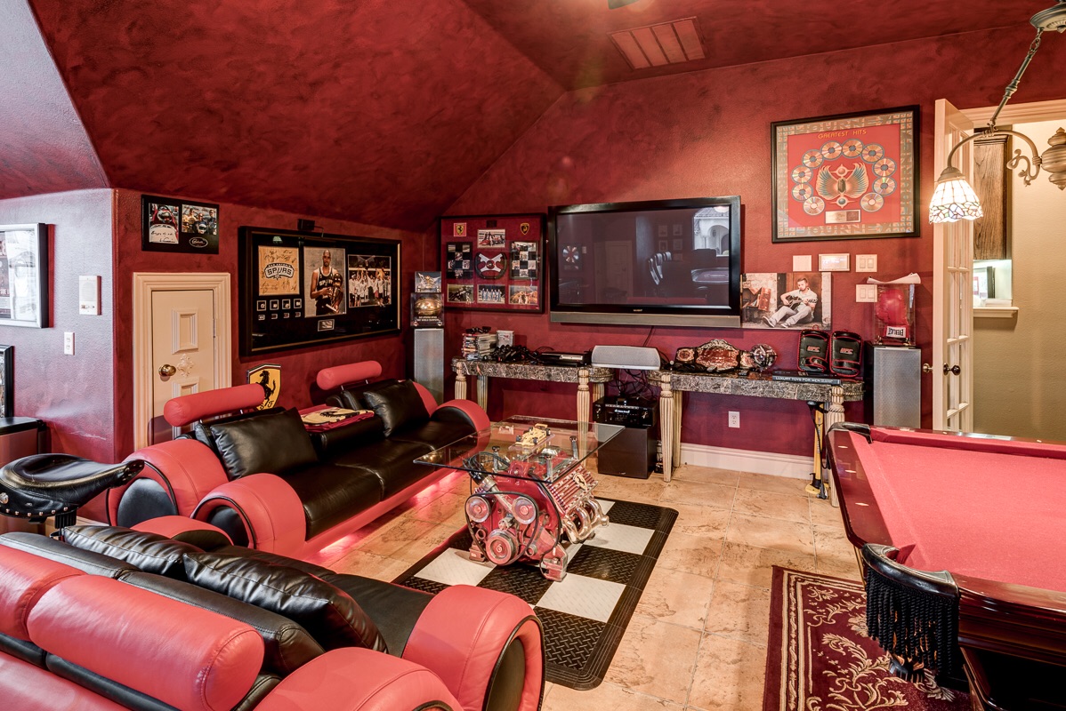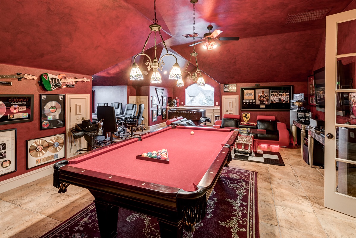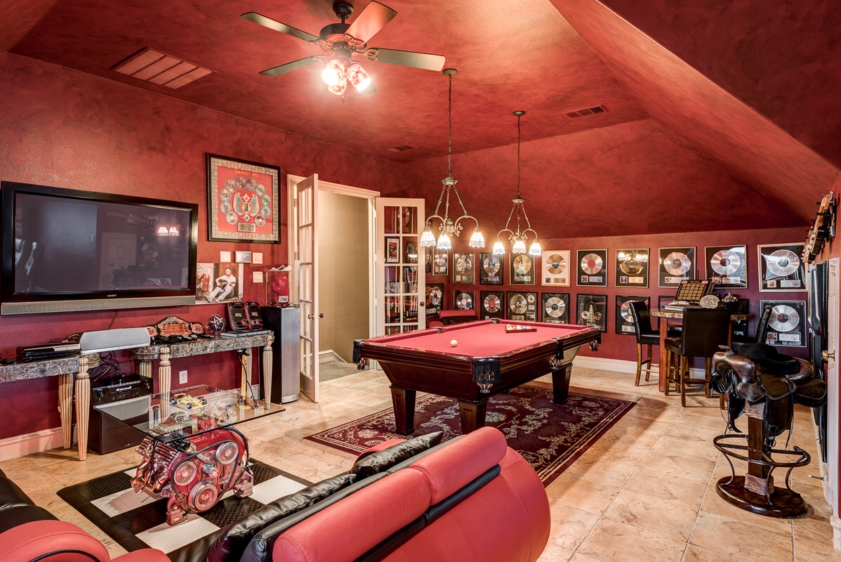 The Game Room also features a double door entry and its own dedicated Trane HVAC unit and digital thermostat for energy efficient heating and cooling year around.