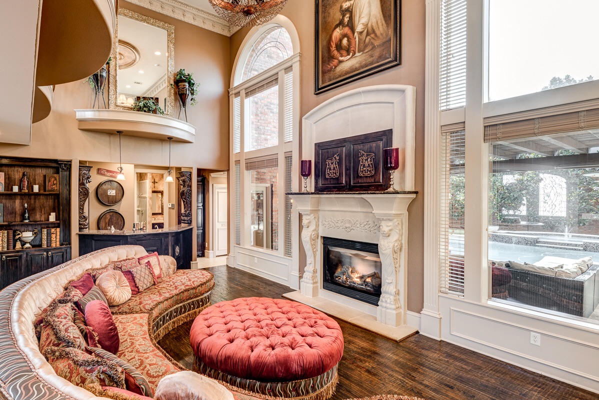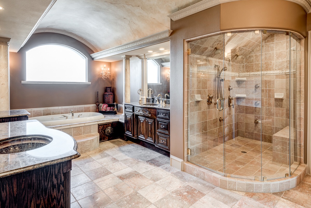 Recently renovated within the last five years, the home features a new Rennai Tankless Water Heating System with a hot water recirculating pump for instant hot water to every sink and bathroom in the home. It also features a whole-house intercom system, a wireless and hard-wired security system with multiple 2Gig touch screens and Alarm.com remote access; five each of the 3-stage, 20-sear Trane HV/AC Heating and Cooling Systems with HEPA Filtration and Nexia Cool-Link WiFi communication digital touch screens for remote access (HVAC units are still under a transferable parts and service warranty). The attic space is insulated with both radiant barrier and foam insulation. The exterior of the house was constructed with an abundance of natural light windows (the back windows are installed with solar tint for energy efficiency and for blocking harmful UVA/UVB rays), multiple cast stone columns, multiple cast stone window surrounds, hand constructed wooden dental crown molding, and brick masonry. This one-of-a-kind home also contains high quality light fixtures inside and outside: chandeliers, wall sconces, and back lit barrel ceilings in the master bedroom, master bathroom, foyer, and theater room. You will also find sculpted glass windows and doors, crown molding, detailed wood craftsmanship, art-niches, and wainscoting when viewing the home. The counter surfaces are stunning with granite and travertine tiling. The flooring consists of high-end sculpted and berber carpeting, hardwoods, marble, travertine, and ceramic.