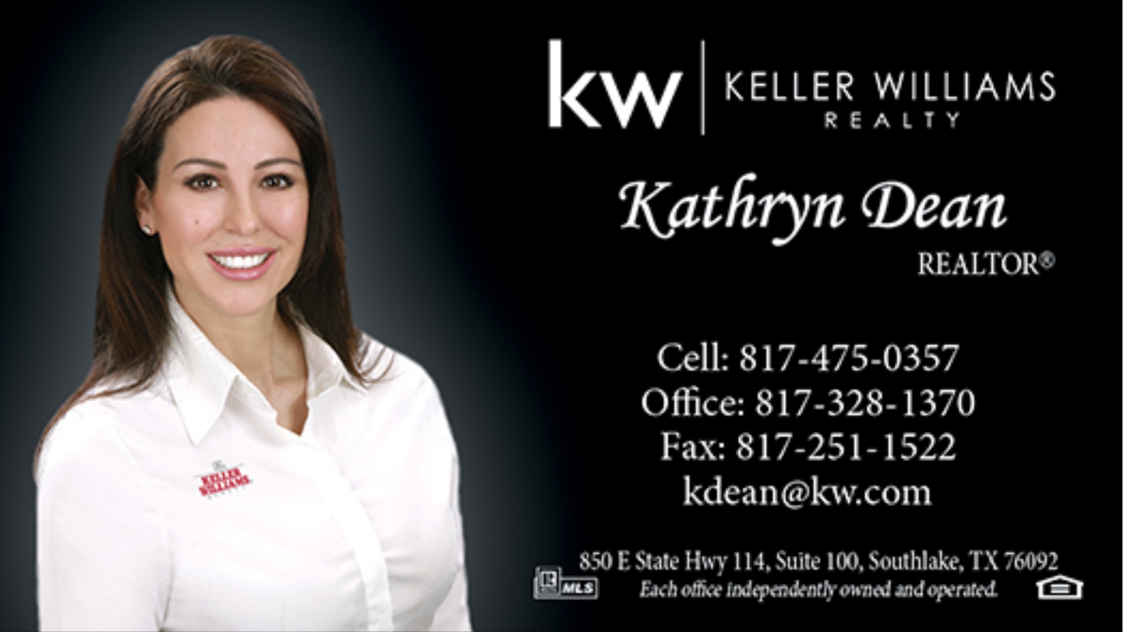 Please feel free to contact Kathryn Dean, Realtor, at 817-475-0357 or email kathryndeanrealestate@gmail.com for your Real Estate needs.”