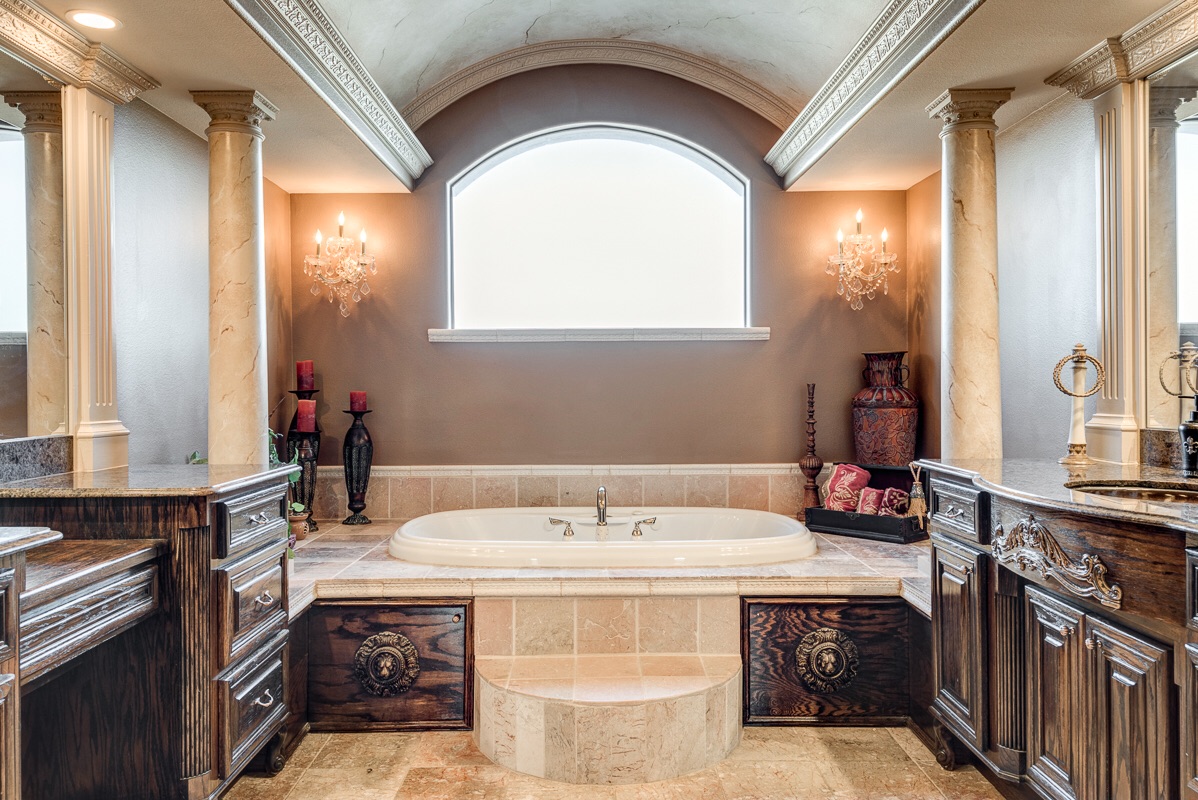 Two dimmable chandelier light sconces provide additional lighting over the Master Bathroom jet bathtub in the evening hours. This home was recently renovated within the last five years and features a tankless water heating system with a hot water recirculating pump for instant hot water to every sink, shower and bathtub in the home.