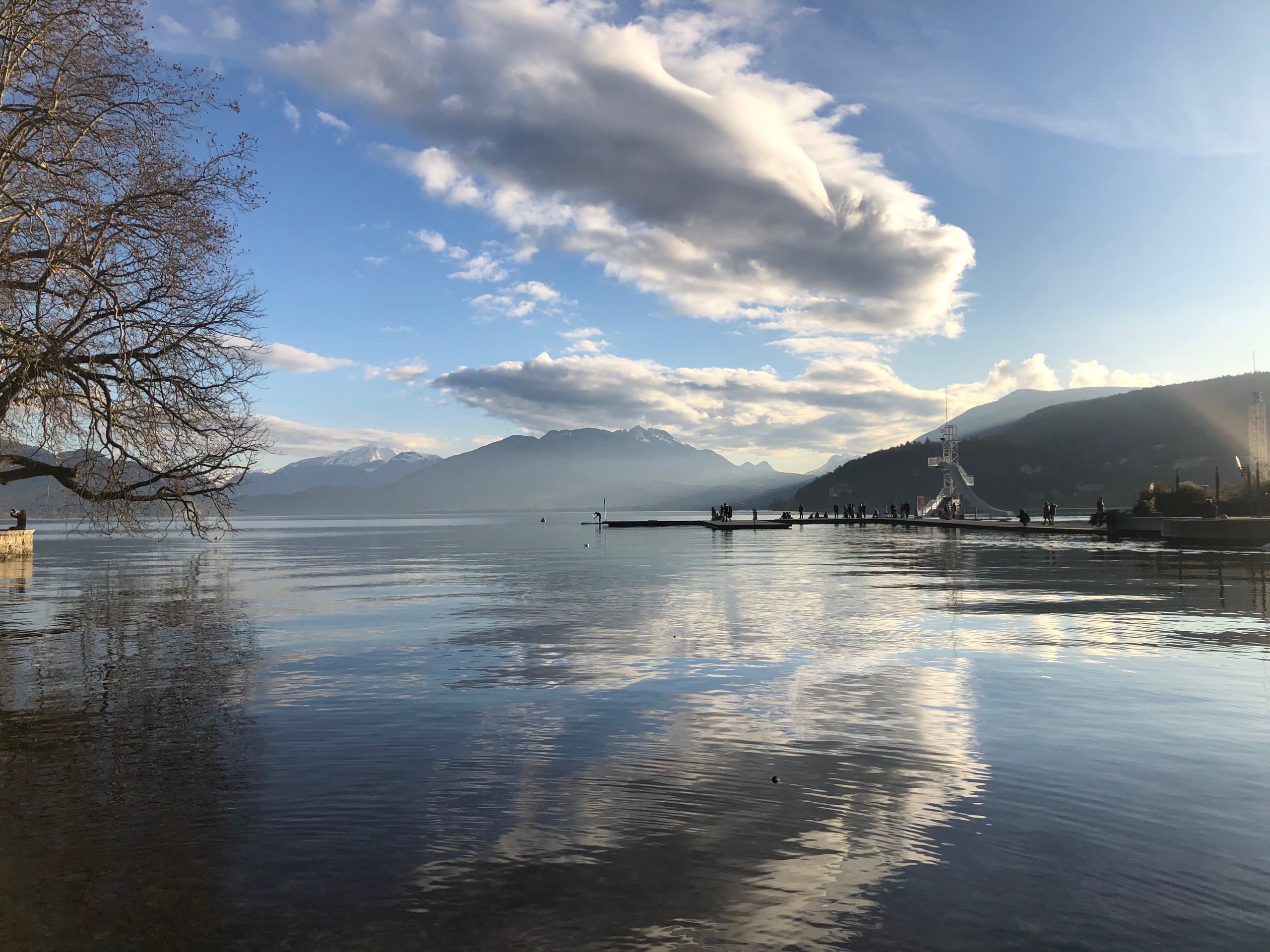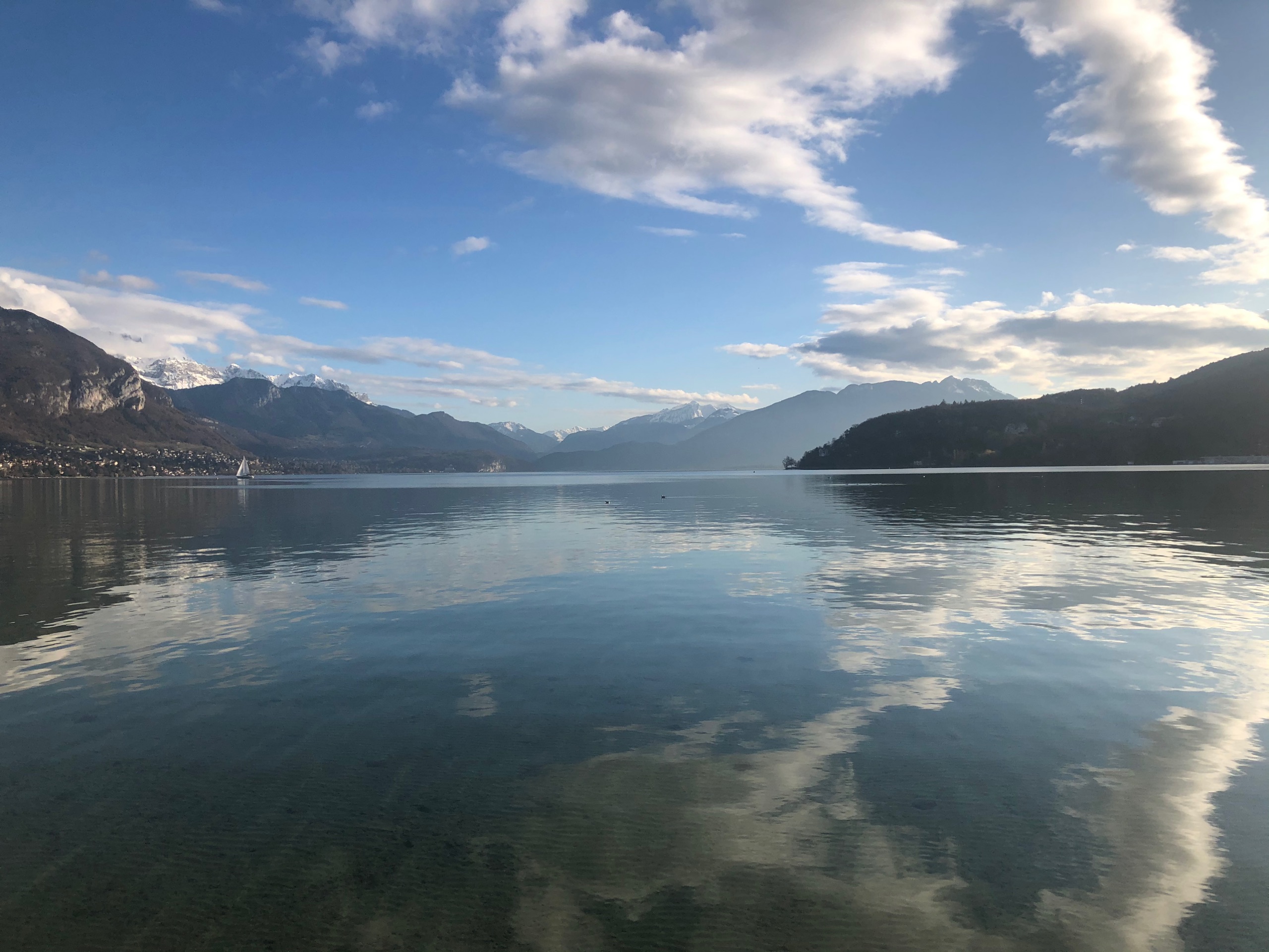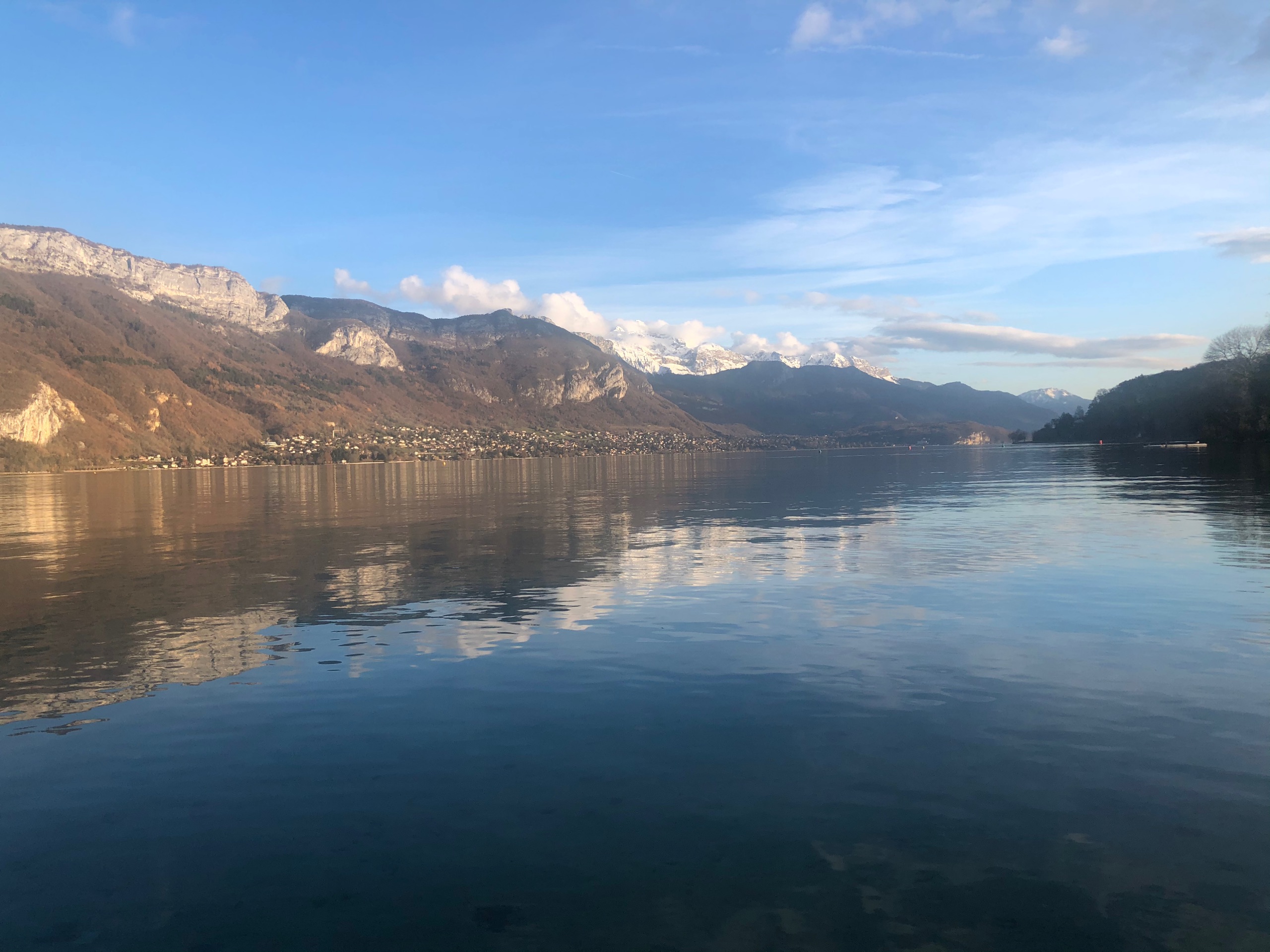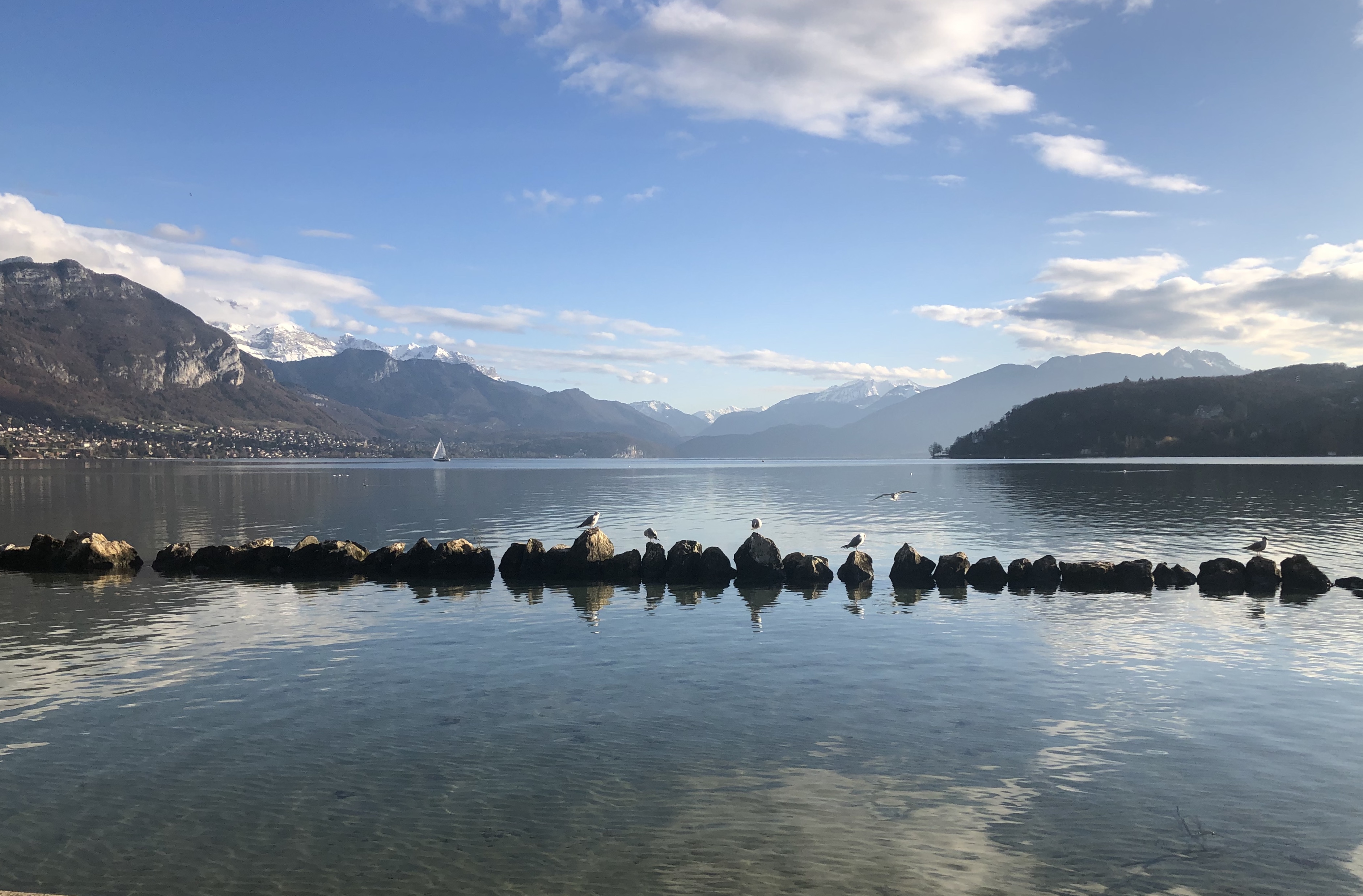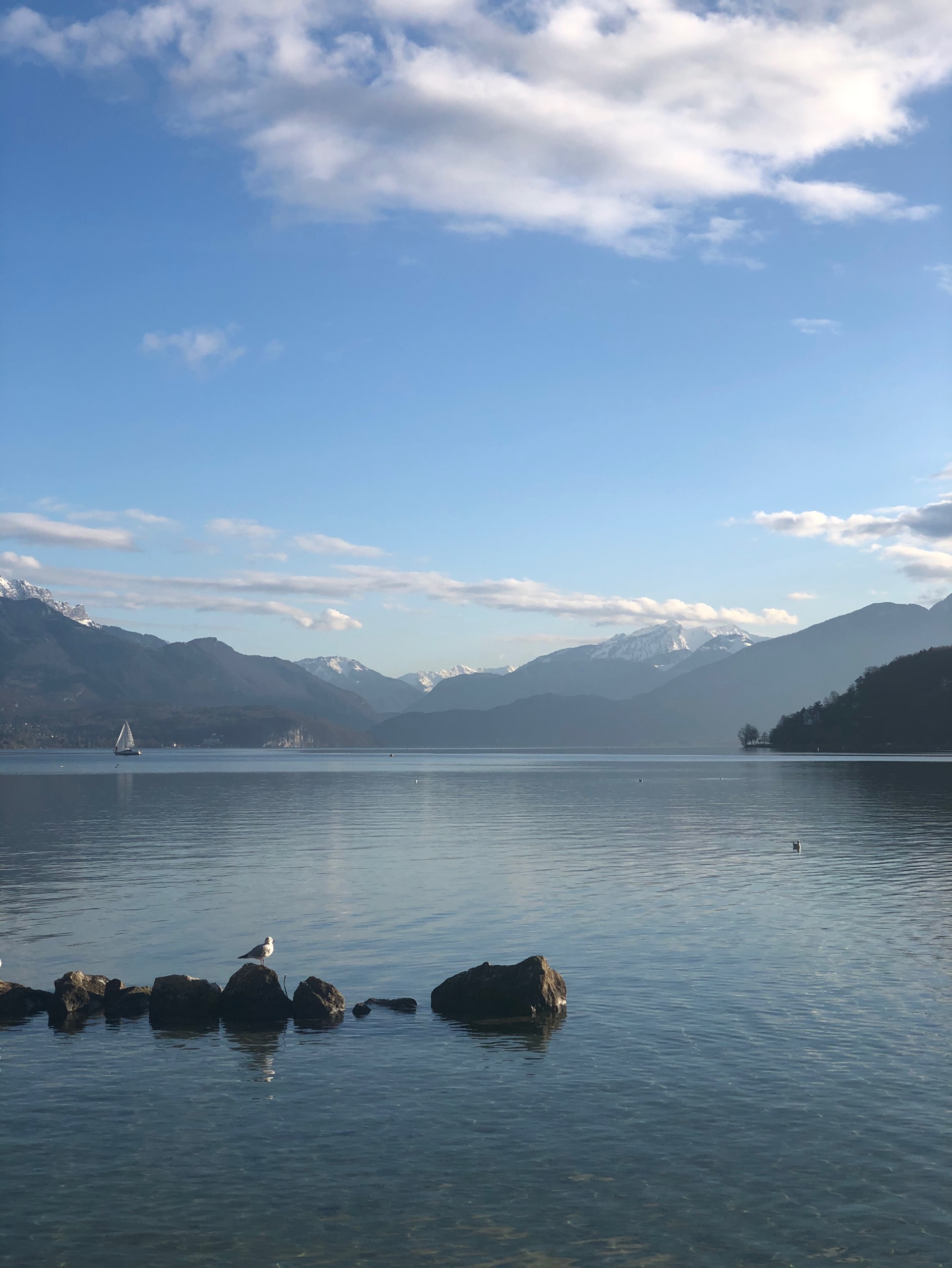 We avail ourselves of some vin chaud blanc and go sit outside the market, on a bench by the touristy boats at what counts as a “port” around here. Helen is DESPERATE that we go on a boat trip on Sunday, having seen how great the lake is.