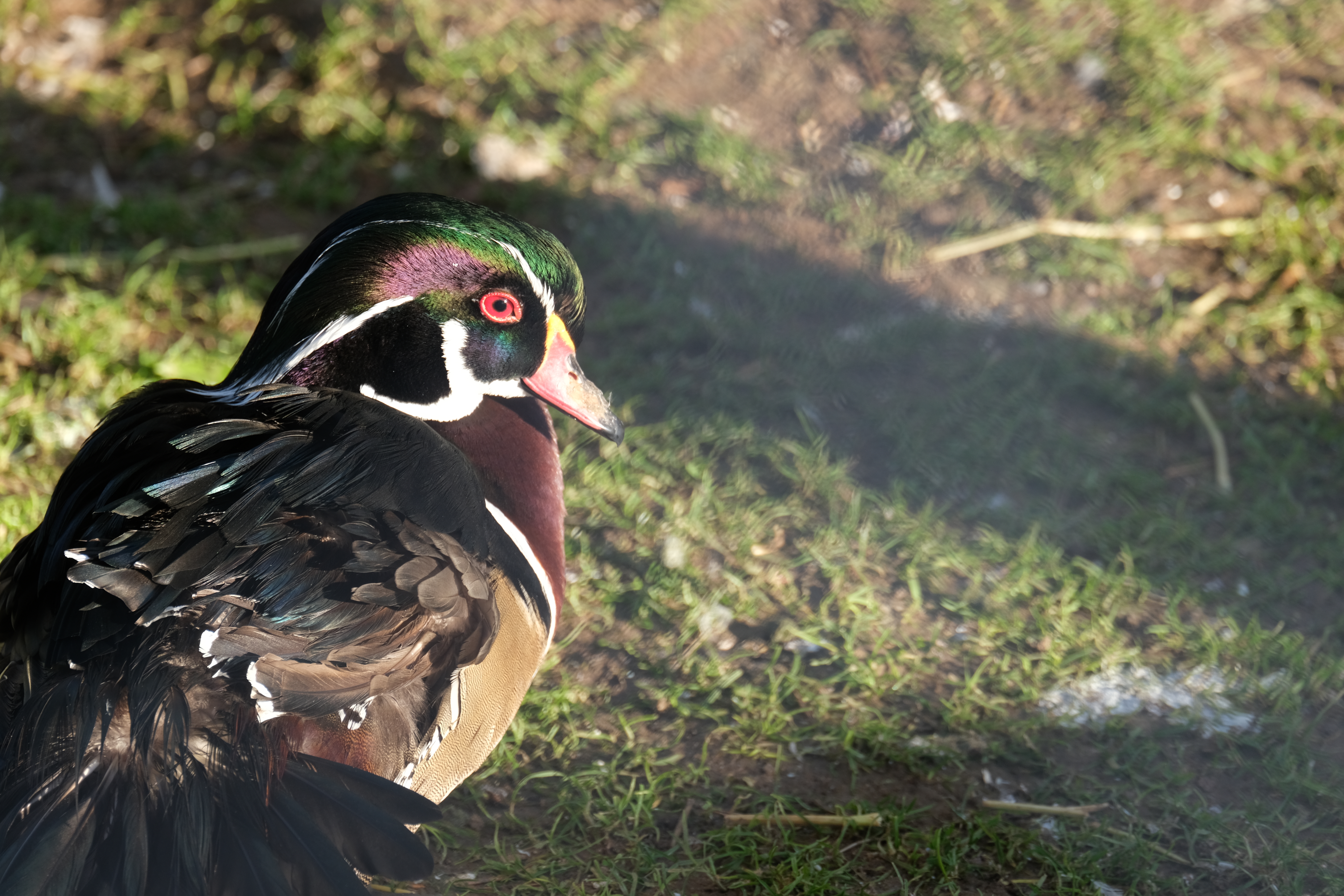 At the far end of the lake we know there’s meant to be an aviary, so we sit at a bench and check on google maps where it is. Oh, it’s directly behind us. Well good.