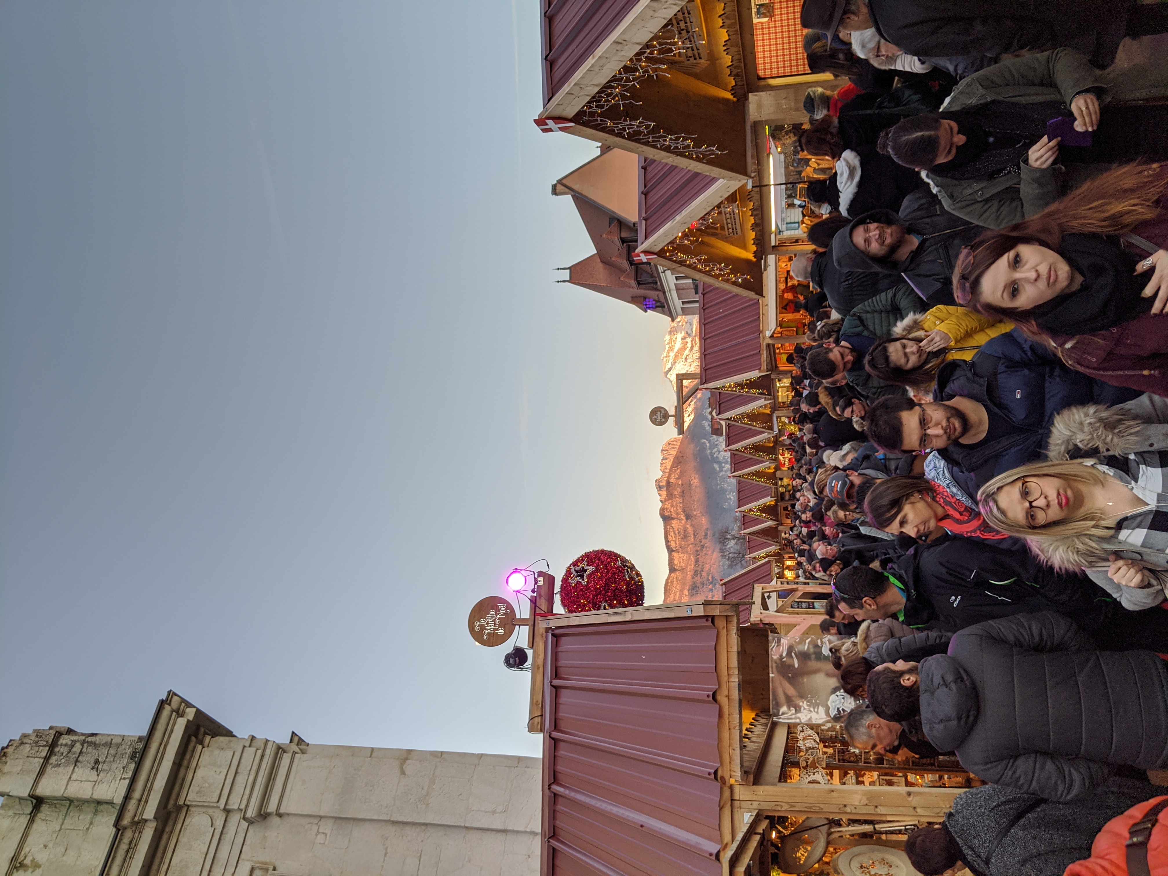 Eventually finding ourselves back at the Christmas market, it was way more popular than it had been the previous evening. Helen was resolute that we would not be eating there, however, so we weaved our way through a few more streets we’d yet to explore.