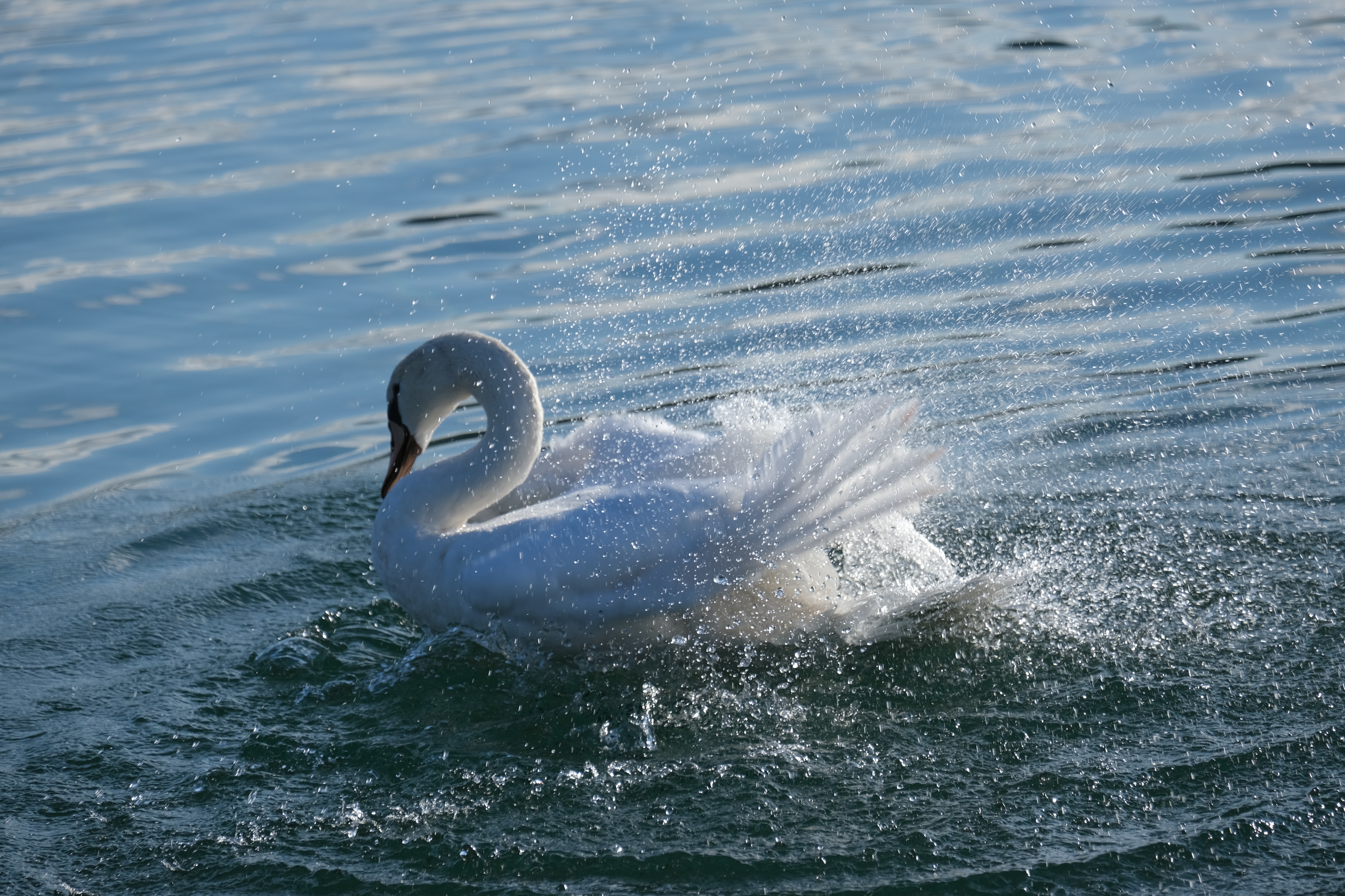 There are quite a few large swans. Some of them are making a real effort at washing themselves.