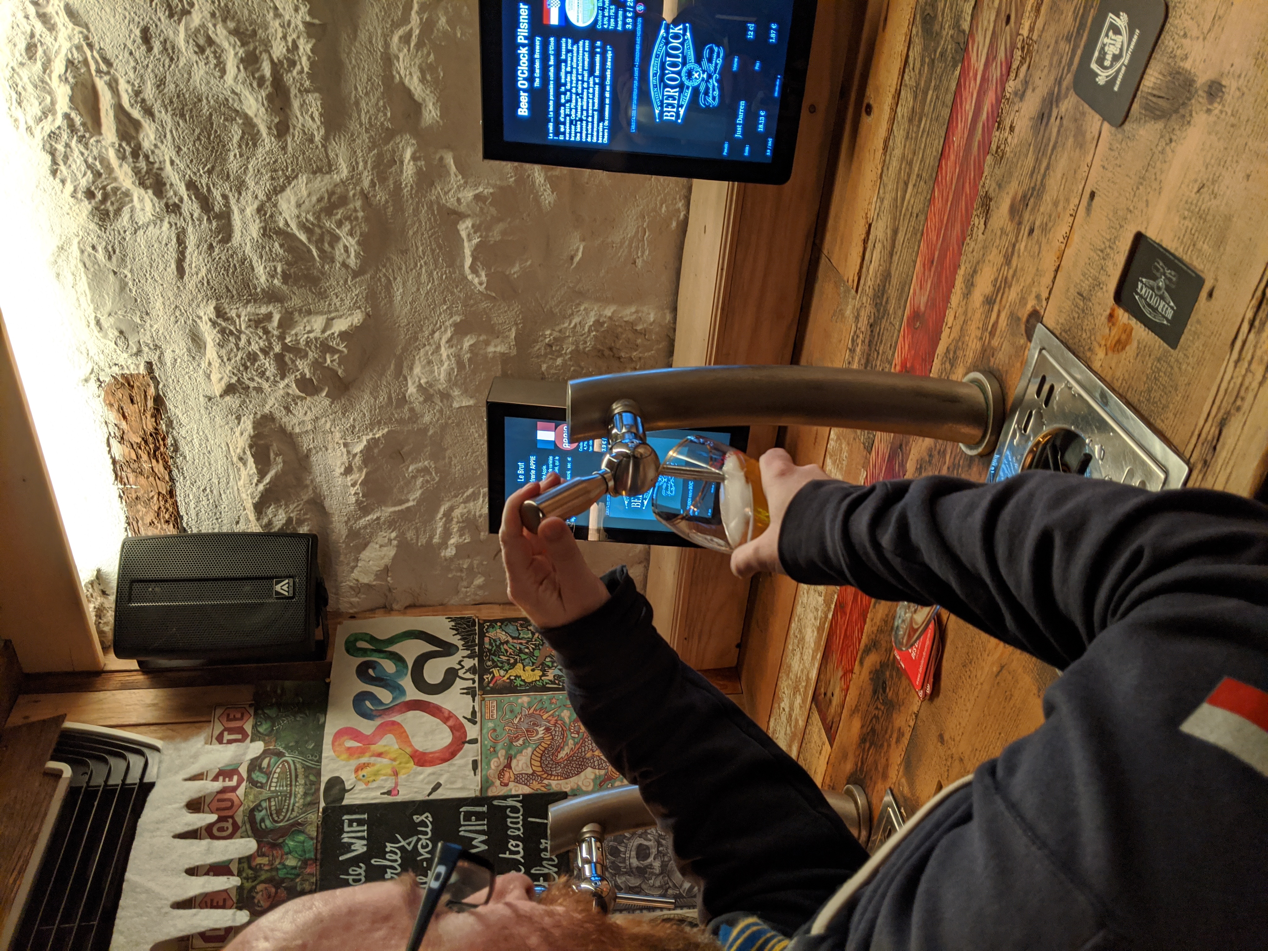 Then, you pour beer into your glass and as you do so the credit goes down while the cl you’ve poured goes up. The screen even displays your name; when he asks if I have a nickname I say no, just Darren, so on the screen when we get beer it says “JUST DARREN”. Ha.