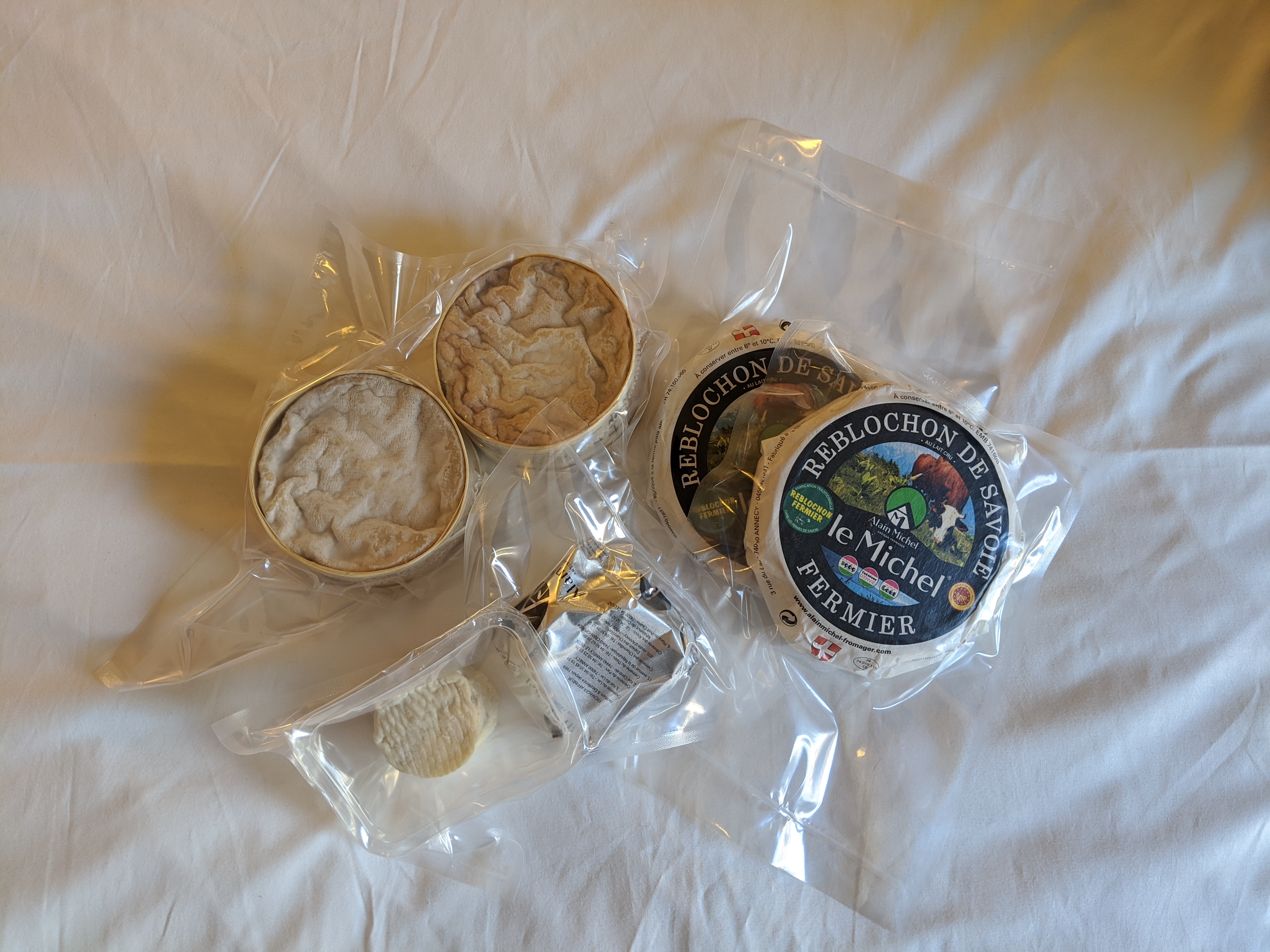 The cheesemonger here sold us masses of cheese. She asked if we were travelling with it, and we are, so she vacuum packed it. Apart from the two cheeses we knew we wanted to buy - reblochon and vacherin mont d’or - we were at her mercy for suggestions. I tried to explain I’ve never had a cheese I don’t like, but not sure she understood. She did tell us that it’s her dream to visit London, because she loves Harry Potter and shopping.