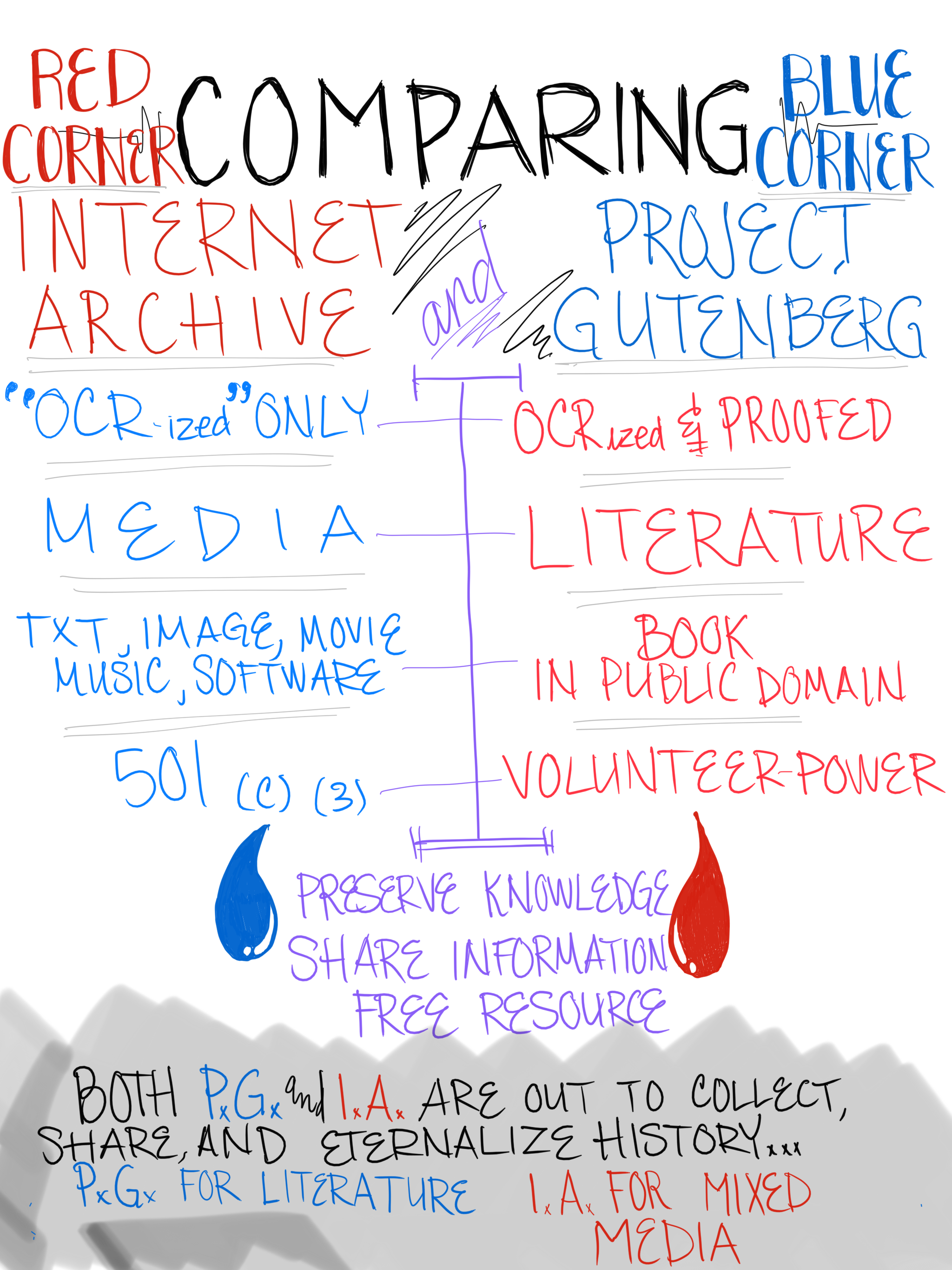 The digital library of PG was original in concept, and process. The process started by Hart is still used today, and the unique aspect of human proofreading is also applied to works published on PG.