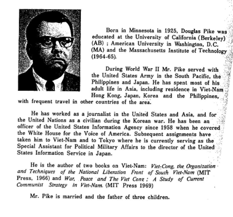 - Pike, Douglas, The Viet Cong Strategy of Terror, (Saigon, 1970).