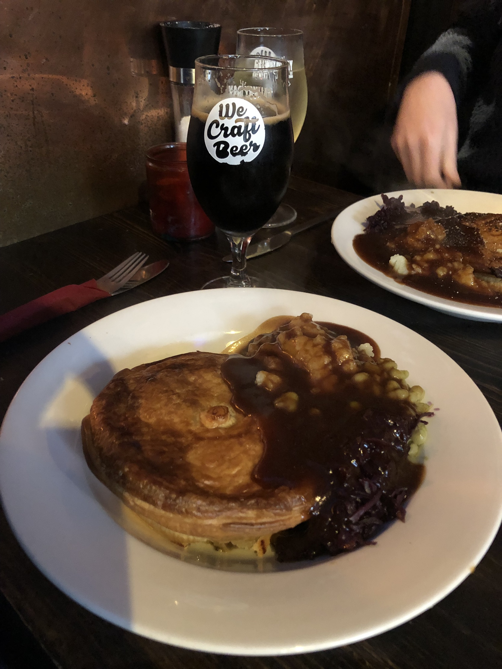 I very much approve that every pie on the menu includes booze in its filling. Yeah, I think I’ll. have the sausage, black pudding and Madeira pie please.