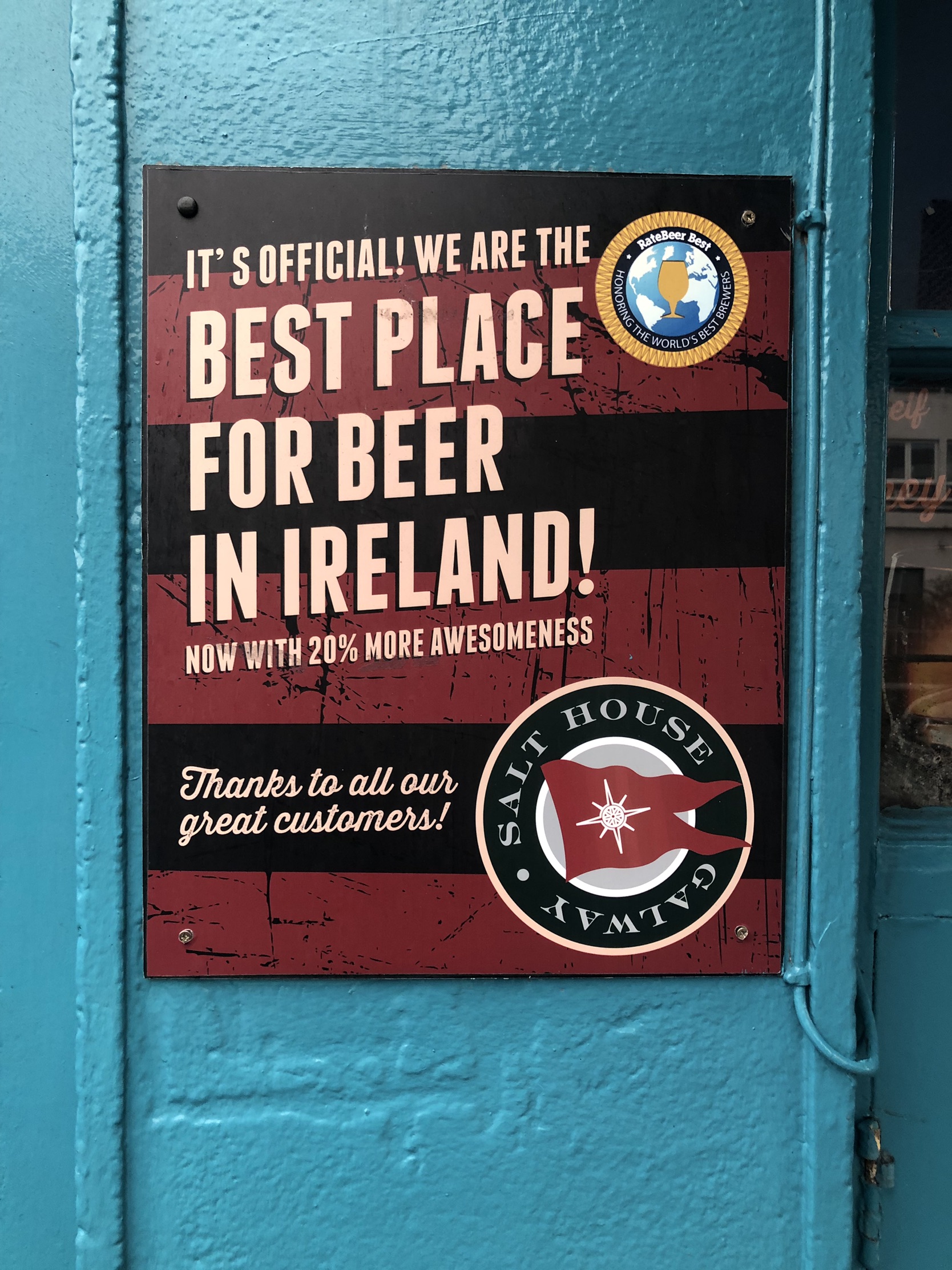 Crossing the road is easier at a second attempt, and it’s time to see if the Salt House lives up to its own reputation. Best place for beer in Ireland, eh?