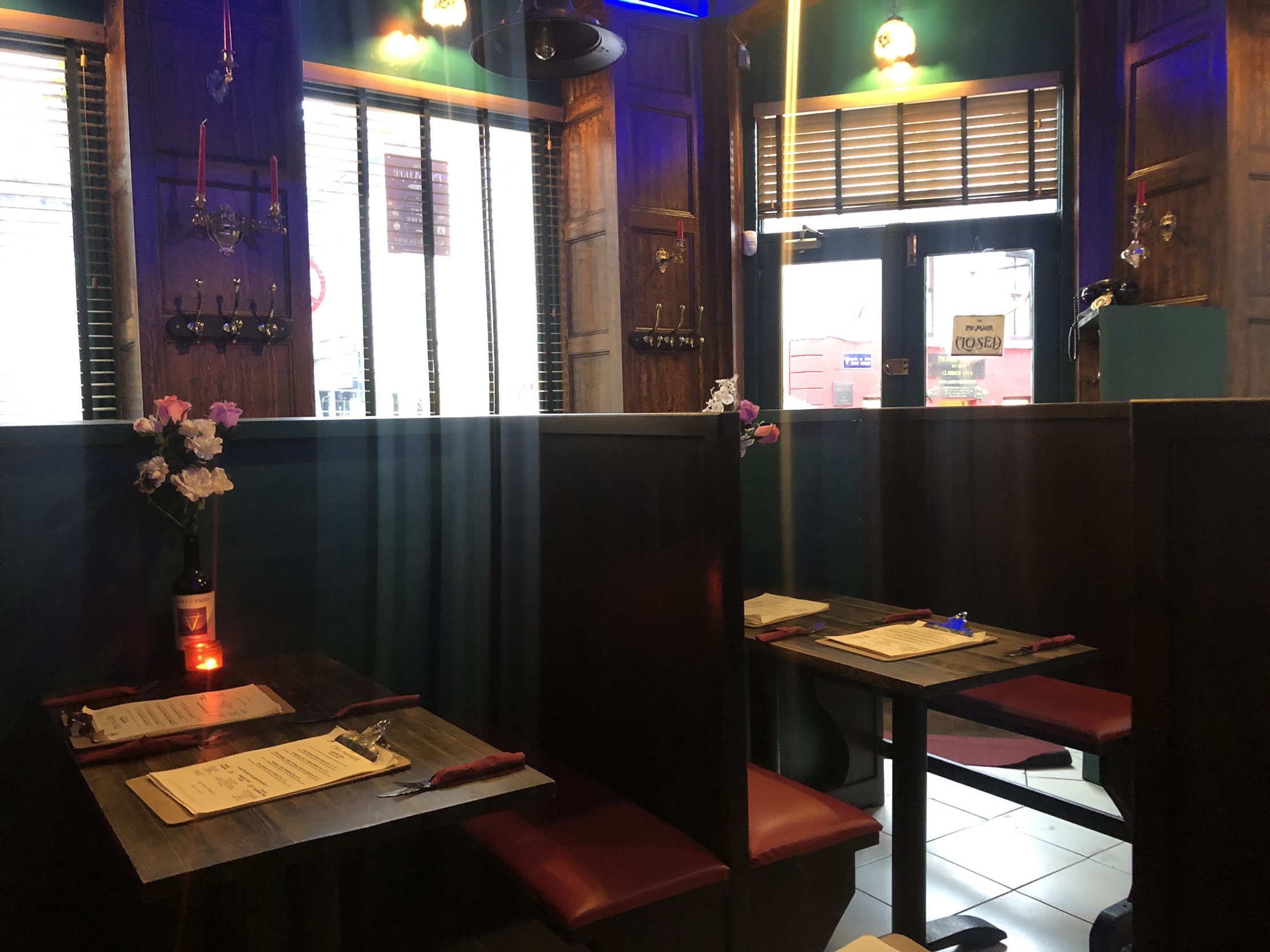 Colour me impressed. It tastes pretty nice too, but I’m far more interested in how its made. On the wall is a video screen showing rolling footage of other cocktails on the menu being made, and one of them features a bacon-infused bourbon. Whoa. Just over the way is a table full of screeching-laughter locals, though the worst offenders go outside for a smoke frequently and for long enough each time that it isn’t too distressing.