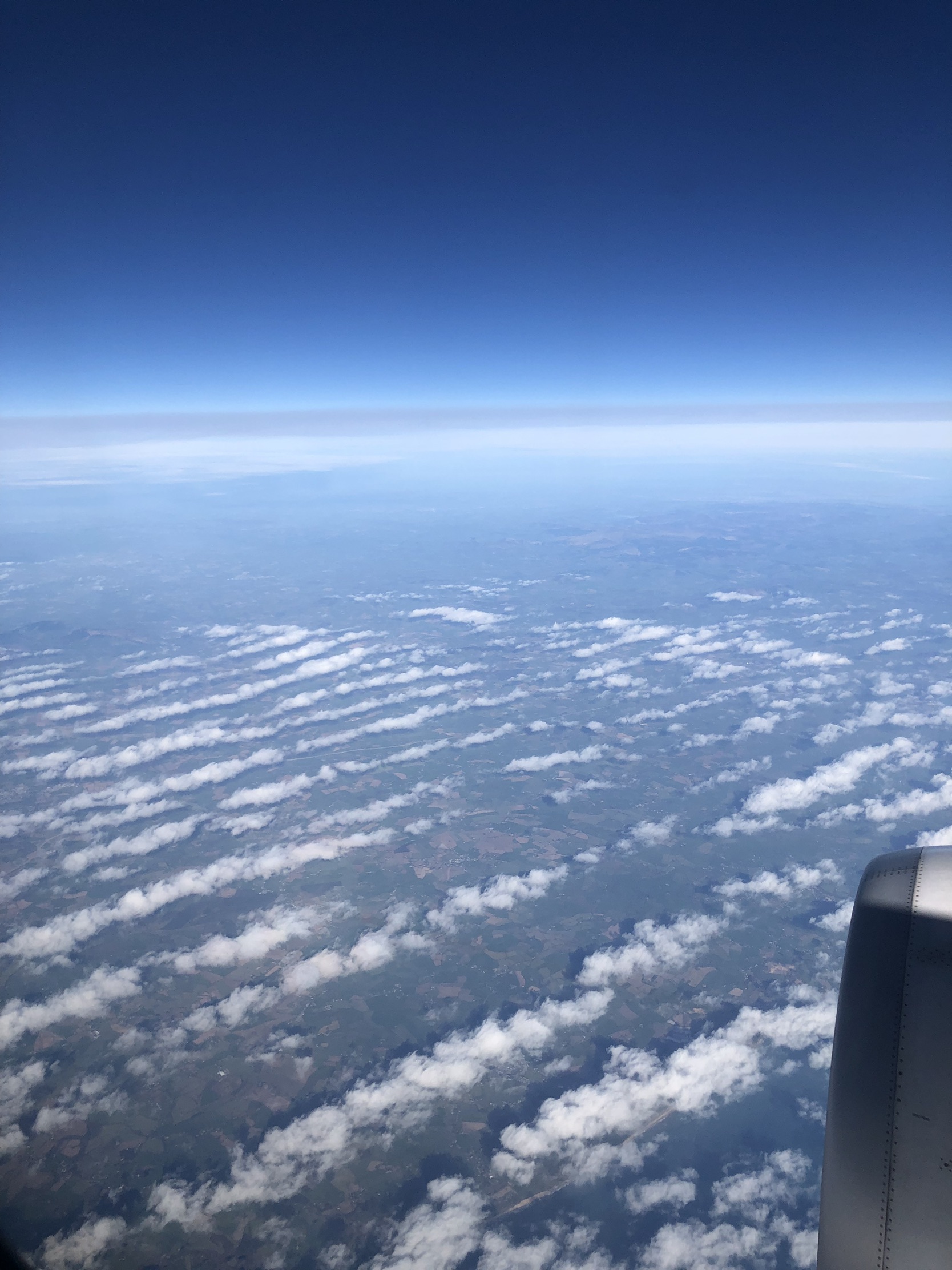 Seats 8E and 8F are ours, the furthest forward we could choose when check-in opened (a strange 30 hours earlier) without paying, like, 17 quid a pop. Seriously. There’s magazines in the seat backs ahead of us and we already know what we’re going to order should the trolley manage to reach us - flying time is only an hour and the first 6 rows are busy.