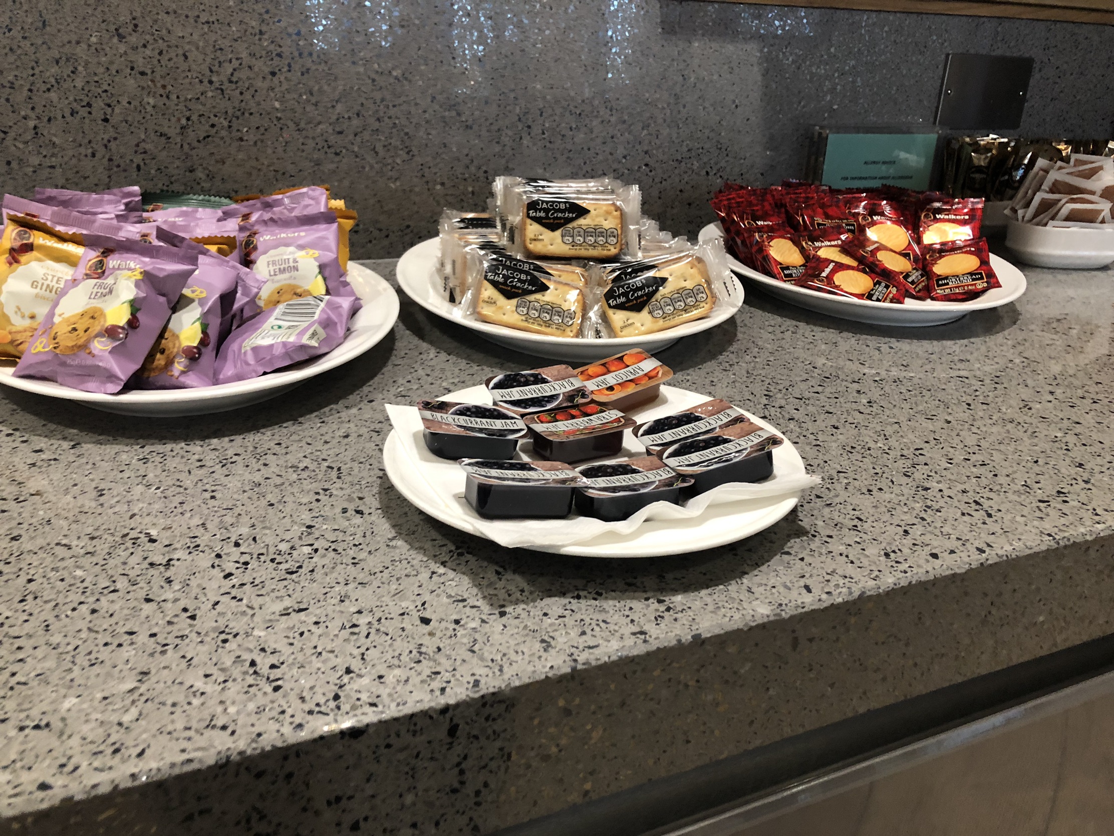 The seats aren’t that comfortable, though I have a bit of an explore and there’s a nicer sub-room across the way. But with Sky News annoying us on TV, no hot food, and another card in my wallet, we bugger off across the terminal in search of the Plaza Premium Lounge, via WH Smith whose self-service tills require a boarding pass in order to buy BBC Wildlife magazine. The lounge itself is hidden around the corner at the end of a corridor by the transfer security desks, and there’s a queue of 5 or so people ahead of us.