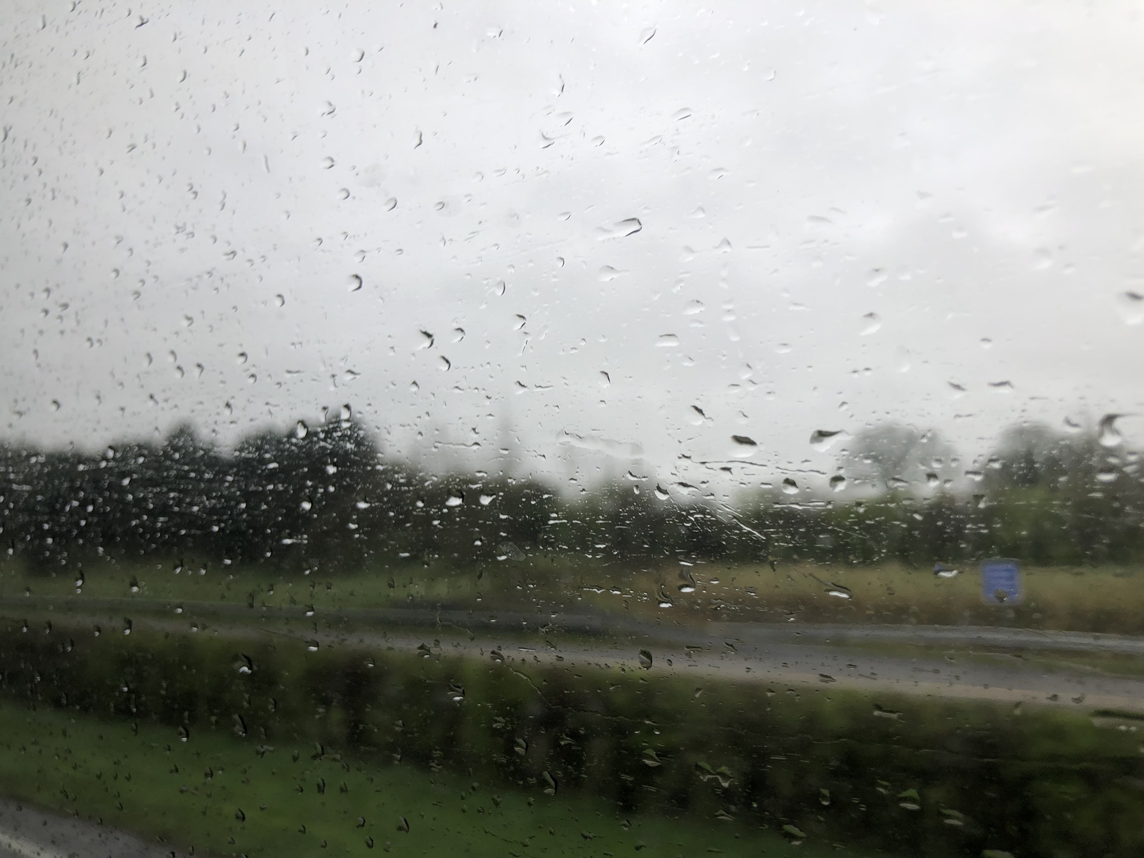 The bus arrives on time but leaves late, as the driver seemingly doesn’t understand the pre-bought smartphone tickets some people ahead of us in the queue have bought. It’s not hugely busy, nor hugely comfortable. Pulling away from the airport we go through bleak housing areas and along a bleak motorway. It’s raining and blowing a gale. There’s a sign that says KEEP CLARE CLEAN, but mostly the two or so hours north looks like this