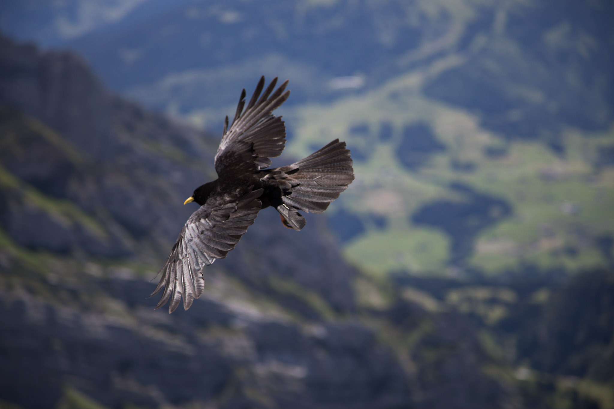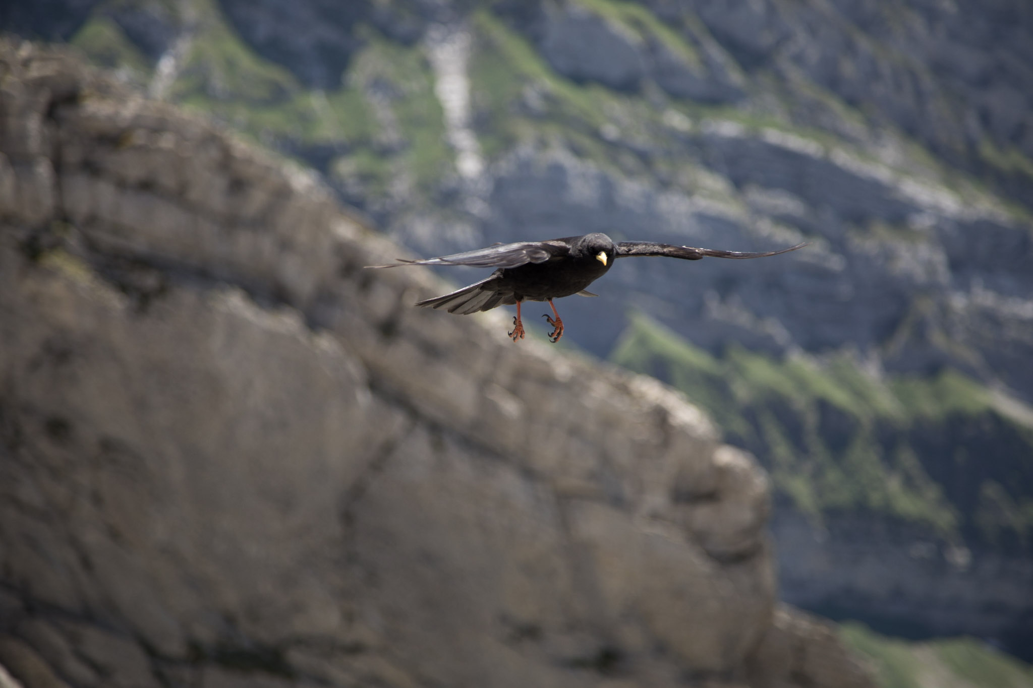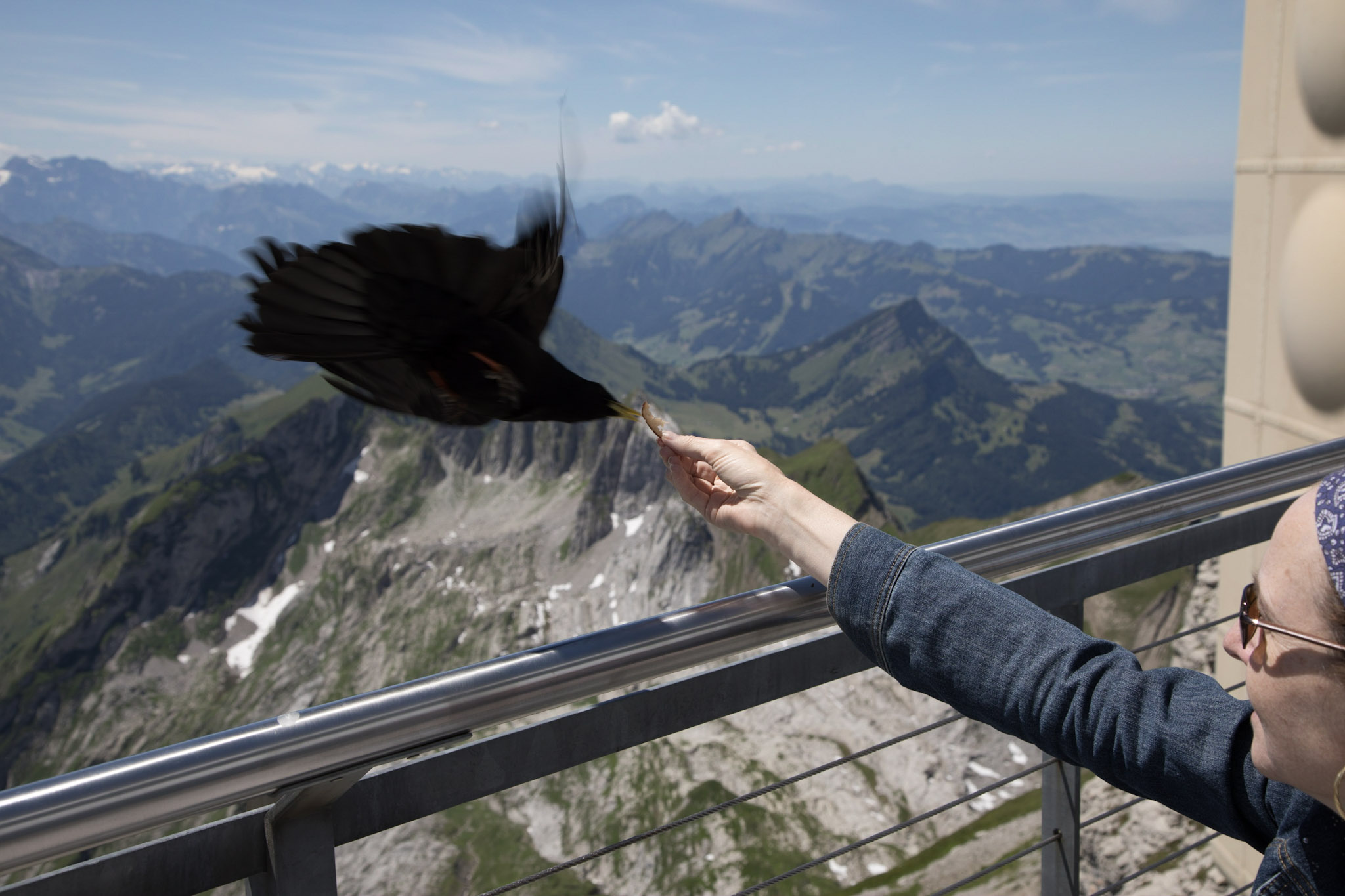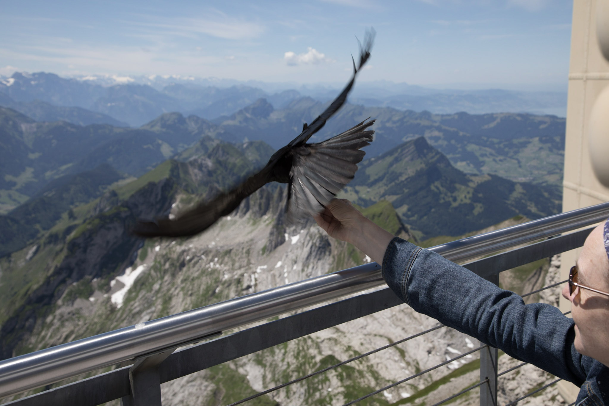Sie fliegen geschickt am Berg und oft schweben sie direkt neben den Besuchern. Plötzlich stürzen sie in die Tiefe und gehen dann in den Gleitflug. Ein wunderschönes Naturschauspiel.
