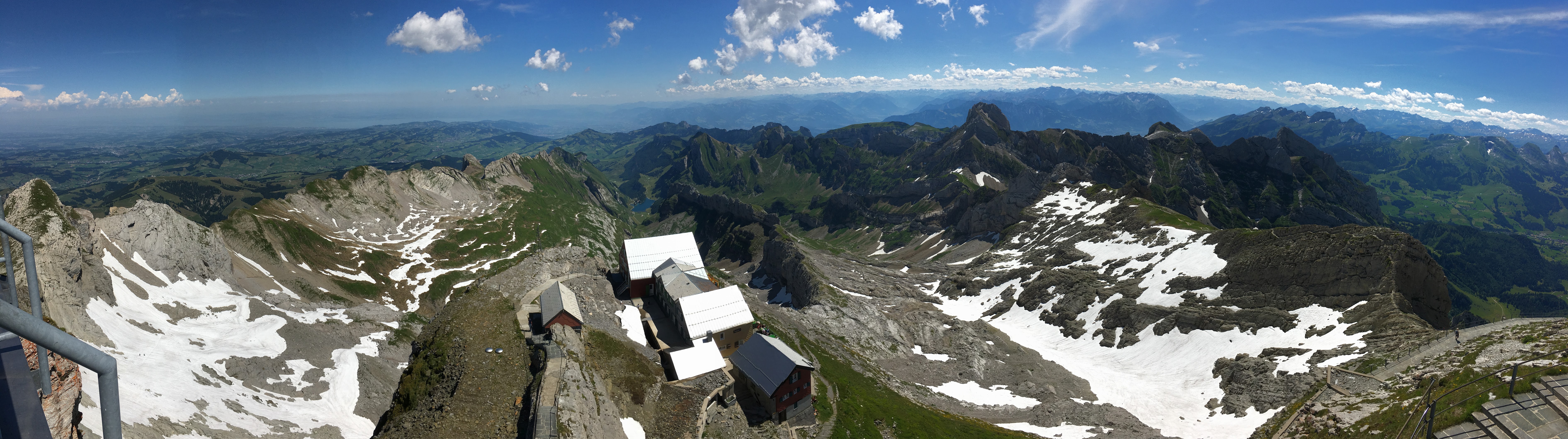 Ein toller Tag auf dem Säntis bei herrlichem Wetter. Nur noch wenige weisse Flecken mit Schnee liegen im Schatten. Der Ausblick wird durch einen leichten Schleier etwas getrübt, aber dank Photoshop ist das kein Problem🤓.
