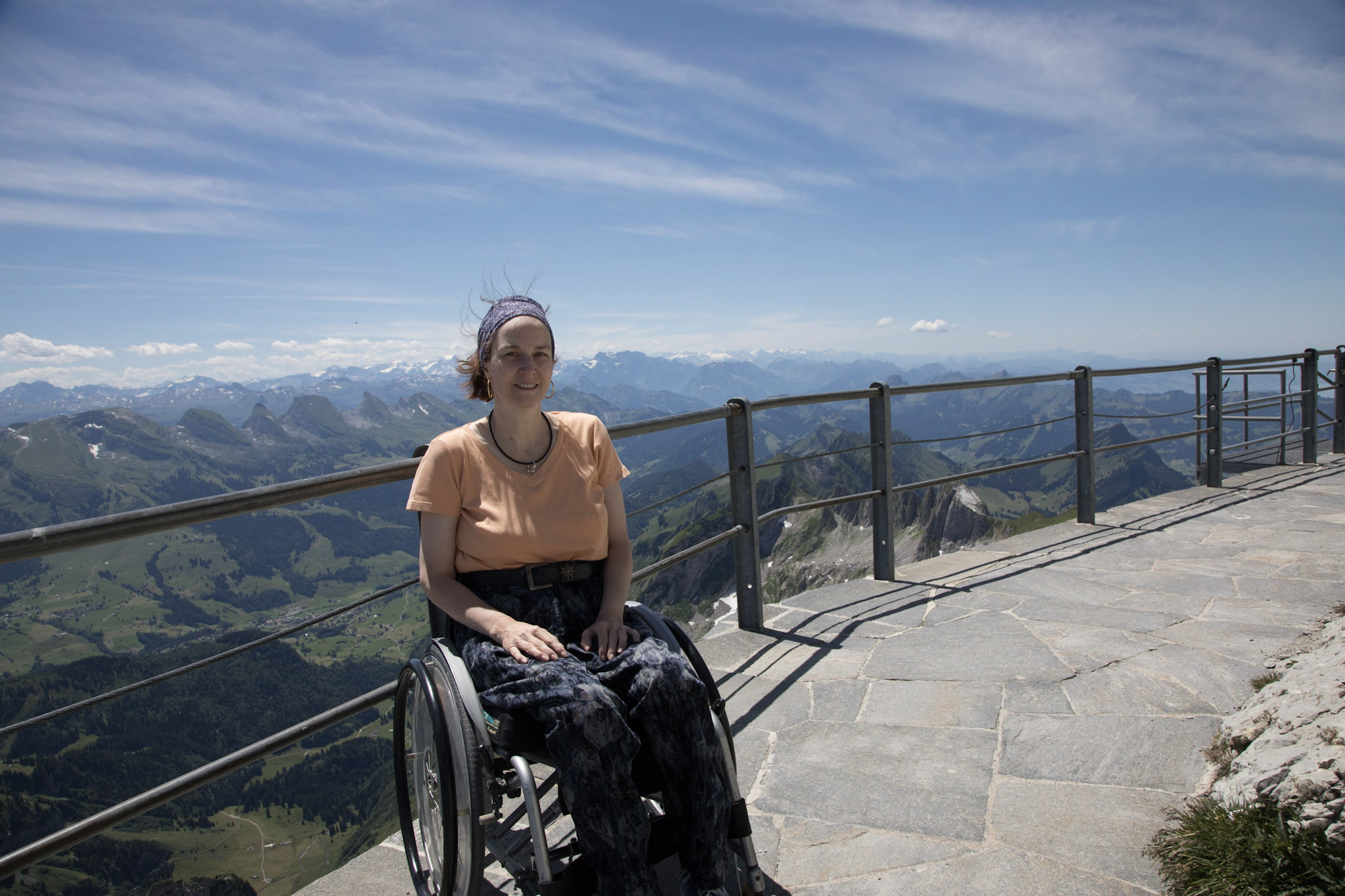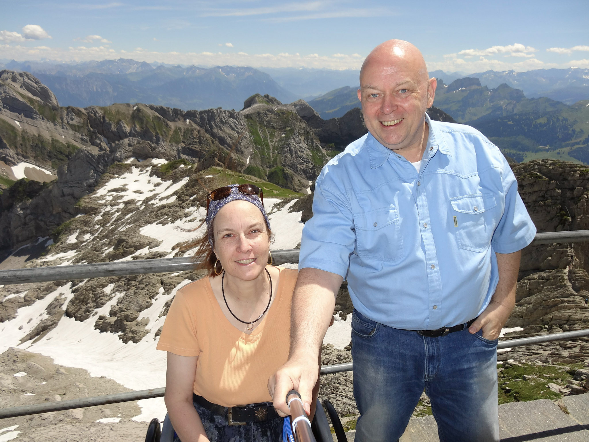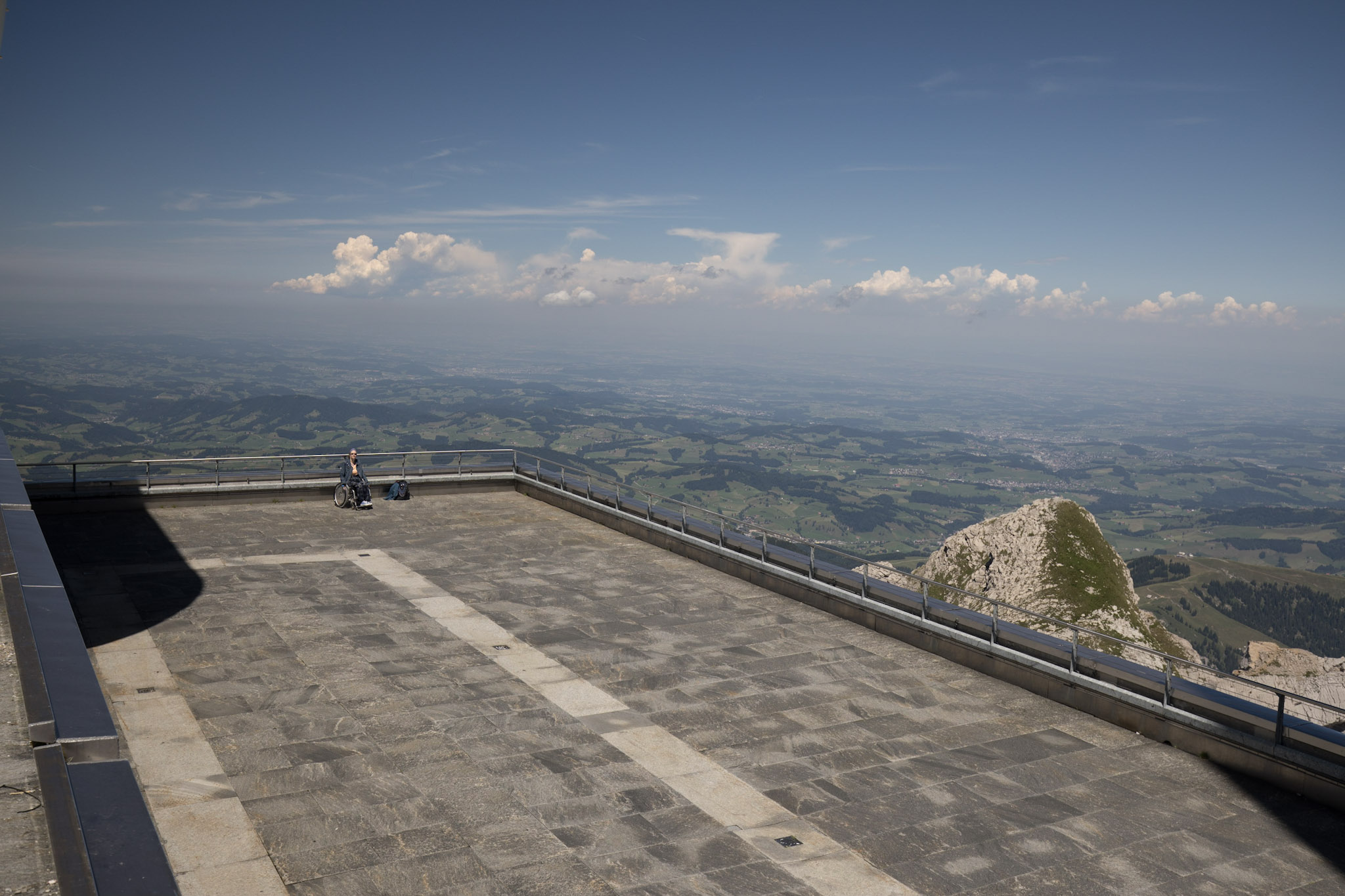 Der Neubau auf der Schwägalp: "Säntis - das Hotel" erleichtert den Zugang zur Seilbahn. Zwar wurde das alte ursprüngliche Berghotel Schwägalp nach 80 Jahren abgerissen, wirklich schade, aber jetzt ist alles übersichtlicher, Rollstuhlgängiger und beim Geniessen auf der Terrasse beim Restaurant hat man einen tollen Blick auf den Säntis. Direkt vor dem Hotel sind sogar 4 Behindertenparkplätze. An diesem Tag waren sogar 4 Rollstuhlfahrer/innen auch auf dem Berg.